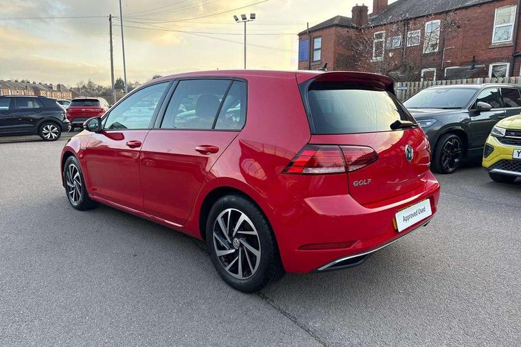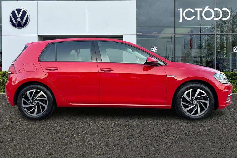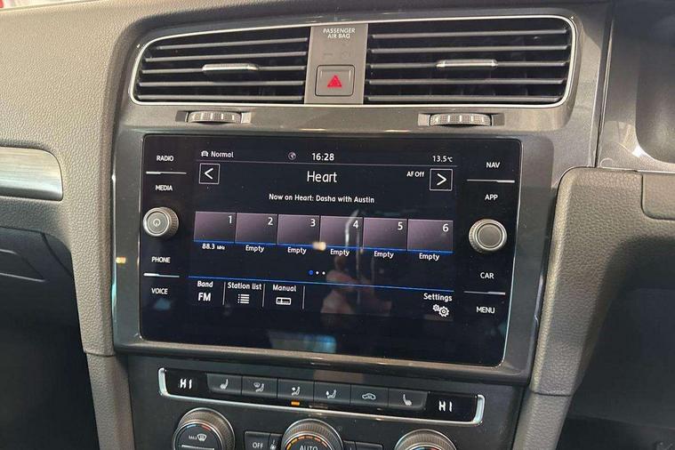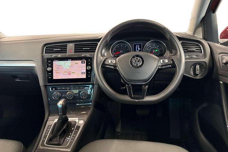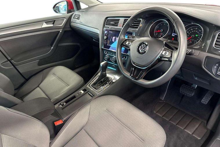 'Lights On' Reminder warning buzzer, ACC - Adaptive cruise control with front assist, forward collision warning, distance monitoring, city emergency brake and speed limiter, Bluetooth telephone and audio connection for compatible devices, Brake pad wear indicator warning light, Driver alert system, Driver profile selection, Driving Mode Selection with four preset modes - Eco, normal, sport or individual modes, Instrument cluster in white, Multifunction computer with visual gear change recommendation for fuel consumption, Power assisted speed sensitive electro-mechanical steering, Push tank flap, Speed limit display, Speedo, rev counter, electronic odometer, trip, service interval display, exterior temperature and fuel gauge, Stop/start system, Warning buzzer and light for front seatbelts unfastened, Battery regeneration during braking, XDS electronic differential lock, Composition media system, DAB Digital radio receiver, Driver Personalisation profile selection, MP3/WMA compatability, Multi device interface (MDI) with USB connection, Personalisation 1.1 profile for media, Premium USB cable in choice of either Apple or Android smartphone compatibility, SD card slot, SMS Functionality, USB and SD card connectivity, Black front air intake and radiator grille with chrome insert, Black rear diffuser, Body colour bumpers, Body colour door handles, Body colour door mirrors with integrated indicators, Dusk sensor + automatic driving lights, Electric front windows, Electric rear windows, Electrically adjustable and heated door mirrors, Fully galvanised body, Heated rear windscreen, Hidden exhaust pipe, High level 3rd brake light incorporating LED Technology, LED daytime running lights, LED front fog lights with static cornering light function, Rear fog lamp, Rear tinted glass 65% light absorbing from B pillar backwards, Rear window aerial, Rear window wash/wipe with intermittent wipe, Reflectors in all doors, Tailgate with integrated rear roof spoiler, Windscreen wipers/ intermittent wipe + 4 position delay, 12V socket in luggage compartment, 3 rear headrests, 4 load lashing points in luggage compartment, 60/40 split folding rear seat backrest, Auto fold down lever in rear seat backrest, Bag hook in luggage compartment x 2, Cooled glovebox, Cupholder cover, Dust/pollen filter, Front and rear reading lights incorporating LED technology, Front centre armrest with storage compartment and two rear air vents, Front seat back storage pockets, Grab handles front x 2, rear x 2 with integrated coat hooks, Height and reach adjustable steering wheel, Illuminated vanity mirrors, Instrument lighting white adjustable panel illumination, Interior light delay, Isofix preparation for 2 rear child seats, Load through provision with rear centre armrest and cupholders x2, Luggage compartment lighting, Overhead storage box, Passenger underseat drawer, Pearl grey headlining, Storage box in luggage compartment, Storage compartment in roof console with cover, Storage compartments in centre console, Storage compartments in front doors, Storage compartments in rear doors, Stowable luggage compartment cover, Sun visors, Variable boot floor, height adjustable and removable, Convenience Pack - Golf, Light and Sight pack - Golf, Mirror pack - Golf, 3 rear three point seatbelts, Airbags - Driver's and front passenger's, curtain airbag, Driver's knee, front side impact and passenger's airbag deactivation switch, Anti-lock Braking System (ABS) with Hydraulic Brake Assist (HBA), Automatic post collision braking system, Child locks on rear doors, Driver/Passenger optimised head restraints, Electronic parking brake with auto hold, Electronic stability control (ESC) including Electronic differential lock (EDL) and ASR (Traction control) with deactivation via infotainment system, Front ventilated disc brakes and rear disc brakes, Pre crash preventive occupant protection, Three point height adjustable front seatbelts with tensioners, Tyre pressure loss indicator, Alarm with interior protection and deactivation via infotainment system, Electronic engine immobiliser, Remote central locking with 2 remote folding keys, Brushed dark silver decorative inserts in dash and door panels, Chrome plated air vent surround, Chrome plated electric mirror adjustment light switch surround, Polar night black centre console, Steel space saver spare wheel,