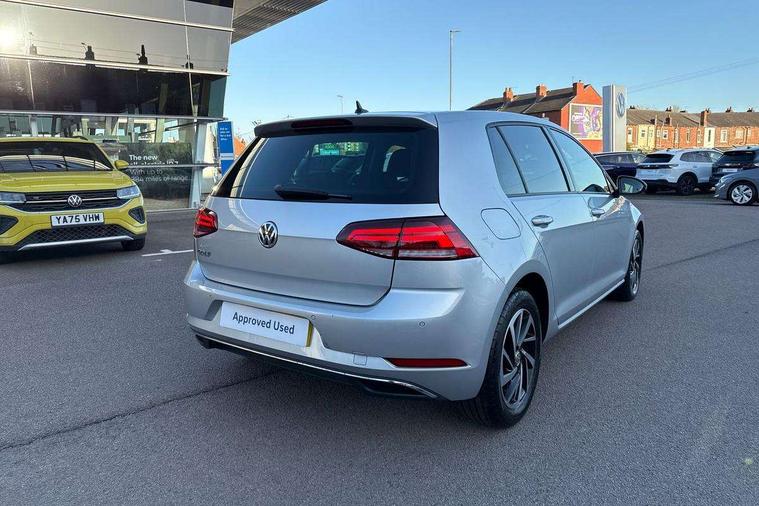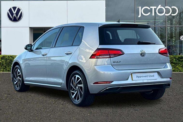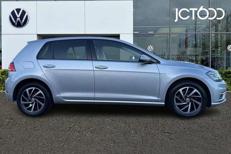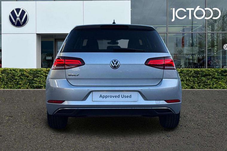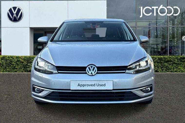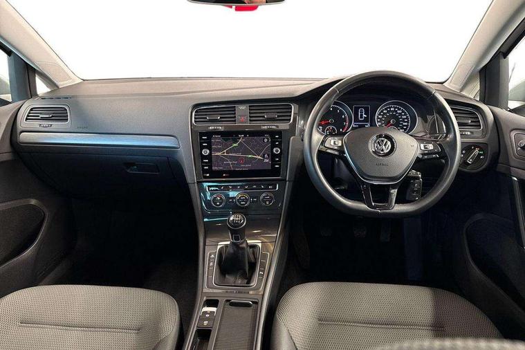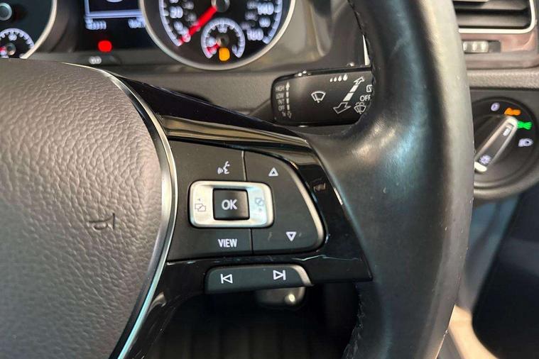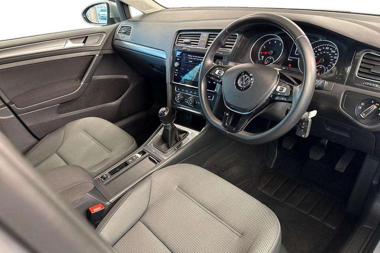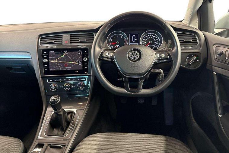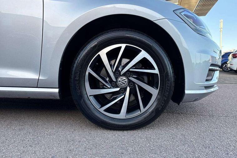 'Lights On' Reminder warning buzzer, ACC - Adaptive cruise control with front assist, forward collision warning, distance monitoring, city emergency brake and speed limiter, Bluetooth telephone and audio connection for compatible devices, Brake pad wear indicator warning light, Driver alert system, Driving Mode Selection with four preset modes - Eco, normal, sport or individual modes, Multifunction computer with visual gear change recommendation for fuel consumption, Power assisted speed sensitive electro-mechanical steering, Push tank flap, Speed limit display, Speedo, rev counter, electronic odometer, trip, service interval display, exterior temperature and fuel gauge, Stop/start system, Think blue trainer driver tips and journey analysis, Warning buzzer and light for front seatbelts unfastened, Battery regeneration during braking, XDS electronic differential lock, Composition media system, DAB Digital radio receiver, Driver Personalisation profile selection, MP3/WMA compatability, Multi device interface (MDI) via USB connection, Premium USB cable in choice of either Apple or Android smartphone compatibility, SMS Functionality, Title and cover art display, USB and SD card connectivity, Volkswagen media control, Black front air intake and radiator grille with chrome insert, Black rear diffuser, Body colour bumpers, Body colour door handles, Body colour door mirrors with integrated indicators, Dusk sensor + automatic driving lights, Electric front windows, Electric rear windows, Electrically adjustable and heated door mirrors, Fully galvanised body, Heated rear windscreen, High level 3rd brake light incorporating LED Technology, LED front fog lights with static cornering light function, Range adjustable headlights via infotainment system with LED daytime running lights, Rear fog lamp, Rear number plate lights incorporating LED technology, Rear tinted glass 65% light absorbing from B pillar backwards, Rear window aerial, Rear window wash/wipe with intermittent wipe, Reflectors in all doors, Tailgate with integrated rear roof spoiler, Windscreen wipers/ intermittent wipe + 4 position delay, 12V socket in luggage compartment, 3 rear headrests, 4 load lashing points in luggage compartment, 60/40 split folding rear seat backrest, Bag hook in luggage compartment x 2, Climate control - 2 zone electronic air conditioning with automatic air recirculation and allergy filter, Cooled glovebox, Cover for storage compartment in centre, Dust/pollen filter, Front and rear reading lights X 2, Front centre armrest with storage compartment and two rear air vents, Front seat back storage pockets, Grab handles front x 2, rear x 2 with integrated coat hooks, Height and reach adjustable steering wheel, Illuminated vanity mirrors, Instrument lighting white adjustable panel illumination, Interior light delay, Isofix preparation for 2 rear child seats, Load through provision with rear centre armrest and cupholders x2, Luggage compartment lighting, Overhead storage box, Pearl grey headlining, Storage box in luggage compartment, Storage compartment in roof console with cover, Storage compartments in centre console, Storage compartments in front doors, Storage compartments in rear doors, Stowable luggage compartment cover, Sun visors, Variable boot floor, height adjustable and removable, Convenience Pack - Golf, Mirror pack - Golf, Winter pack - Golf, 3 rear three point seatbelts, Airbags - Driver's and front passenger's, curtain airbag, Driver's knee, front side impact and passenger's airbag deactivation switch, Anti-lock Braking System (ABS) with Hydraulic Brake Assist (HBA), Automatic post collision braking system, Child locks on rear doors, Driver/Passenger optimised head restraints, Electronic parking brake with auto hold, Electronic stability control (ESC) including Electronic differential lock (EDL) and ASR (Traction control) with deactivation via infotainment system, Front ventilated disc brakes and rear disc brakes, Pre crash preventive occupant protection, Three point height adjustable front seatbelts with tensioners, Tyre pressure loss indicator, Alarm with interior protection and deactivation via infotainment system, Electronic engine immobiliser, Brushed dark silver decorative inserts in dash and door panels, Chrome plated air vent surround, Chrome-plated light switch surround, Polar night black decorative inserts in centre console, Steel space saver spare wheel,