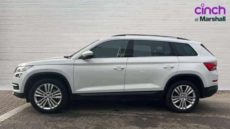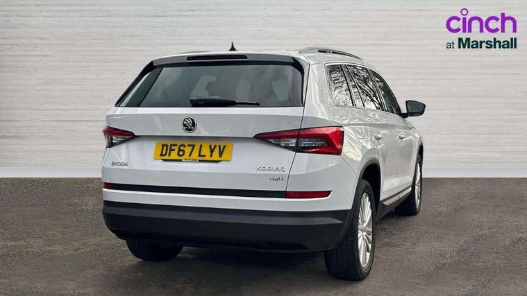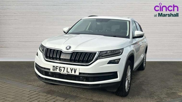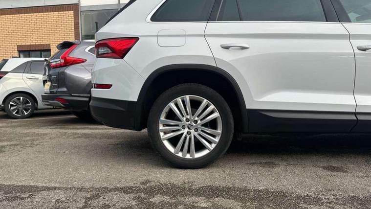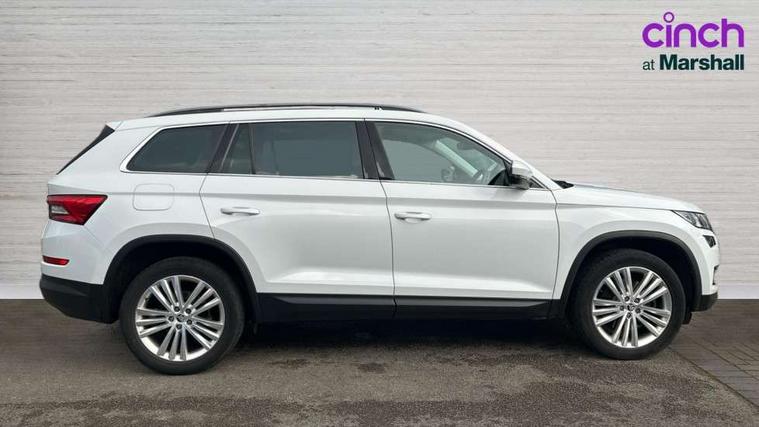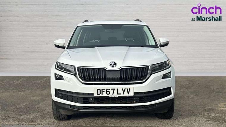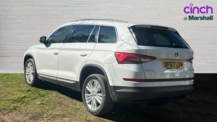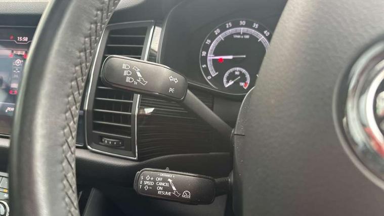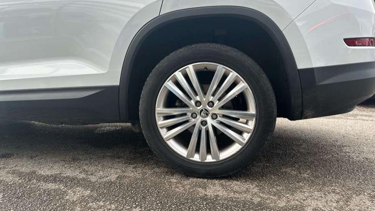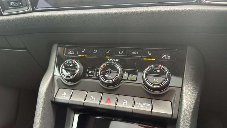 Bluetooth system, Columbus satellite navigation with 9.2" touch screen and integrated Wi-Fi, Drive mode selector, Exterior temperature gauge, Power tailgate, SmartLink, Speed limiter, Bolero Radio, DAB Digital radio, DVD System, SD card slot, USB connection, Adaptive front lighting system, Aero wiper + intermittent function, Auto dimming door mirrors, Auto dimming rear view mirror, Automatic activation of hazard warning lights, Body colour bumpers, Body colour door mirrors and handles, Electric adjustable/heated/folding door mirrors, Electric front windows, Electric rear windows, Front and Rear door steps, Headlight washers, Heated rear window, High gloss black grille with chrome inserts, LED daytime running lights, LED front fog lights with static cornering light function, LED Headlights, Light assistant (coming home/tunnel light), Rain and light sensors, Rear spoiler, Rear wiper, Sunset privacy glass, Tinted windows, 12V Accessory socket in centre console, 12V power point in luggage area, 3 rear height adjustable headrests, 4 lashing points on luggage floor, 60/40 split fold rear seat back, Boot storage compartments, Centre console with storage/cupholders, Chrome gear shift lever, Chrome inner door handles, Driver + front passenger lumbar support, Driver's glovebox with lid, Driver's storage box, Folding grab handles with rear coat hooks, Front and rear bottle holders, Front centre armrest with storage compartment, Front/rear courtesy lights, Height adjustable front seats, Height/tilt adjustable front headrests, Illuminated air conditioned glovebox, Illuminated luggage compartment, Isofix system on outer rear seats, Luggage compartment cover, Luggage nets in boot, Manually adjustable steering column, Passenger side net compartment on centre console, Pollen filter, Rear centre armrest with cupholders, Removable LED light in boot, Storage compartment under front seats, Sunglasses storage, Sunvisors with illuminated vanity mirrors, Ticket holder, Chrome pack - Kodiaq, 3 point front/outer rear seatbelts+pre-tensioners, ABS + EDL + ASR + MSR + ESC, Automatic unlocking of doors in case of impact, Driver and passenger airbags, Drivers knee airbag, Electromechanical parking brake, Front assist including city emergency braking, Front side airbags, Fuel cut off safety device, Head airbags, Hill hold control, Hydraulic Brake Assist (HBA), Passenger airbag deactivate switch, Seatbelt warning, Two tone horn, Tyre pressure monitor, Alarm with interior monitoring and tilt sensor, Anti-theft wheel bolts, Immobiliser, Keyless entry and keyless start, Remote central locking,