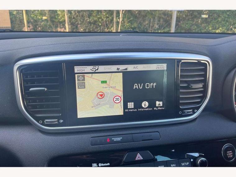 360 degree surround camera, 4.2" supervision colour cluster display, 8" touchscreen satellite navigation with European mapping and traffic messaging channel, Android auto with voice control, Apple car play with voice control, Blind spot collision warning, Bluetooth connectivity with voice control, Cruise control + speed limiter, Digital clock, Driver attention warning, Emergency stop signalling system, Forward collision avoidance assist, Front parking sensor, Kia connected services featuring TomTom live, Lane keep assist, Rear parking sensor, Speed limit information, Speed sensitive power steering, Trip computer, Windscreen washer level indicator, Intelligent Stop and Go, Bluetooth audio streaming, DAB Radio with MP3, JBL Premium sound system with 8 speakers, external amp, subwoofer and front centre speaker, Steering wheel mounted audio controls, USB/iPod/auxiliary input connections, All round electric windows with drivers auto up/down function, Auto dimming rear view mirror, Automatic defog system, Automatic headlights, Black wheel arch body mouldings and side sills with chrome insert, Body colour door handles with chrome inserts, Body colour door mirrors, Chrome front bumper insert, Chrome grille surround, Chrome window surround, Cornering light, Electrically adjustable/heated/folding door mirrors with LED indicators, Front fog lights, High beam assist, High gloss black diamond mesh radiator grille, LED Bi-Function headlights, LED daytime running lights, LED rear lights, Metallic paint, Privacy glass (rear side windows and rear screen), Rain sensing front wipers, Rear spoiler, Rear wiper, Roof rails, Shark fin antenna, Silver painted front and rear skid plates, Speed sensitive front wipers, Tinted glass, Trailer stability assist, Welcome and follow-me home light functionality, Wide view drivers door mirror, Windscreen wiper de-icer, 10 way driver/8 way passenger electrically power adjustable seats, 12V power in front and rear centre console, 3 x passenger assist grips, 60/40 split folding rear seat, Air filter, All-round height adjustable headrests, Centre cabin light, Centre console storage box, Cloth/leather upholstery, Door armrest in leather, Driver and front passenger side sunvisors with illuminated vanity mirrors, Drivers seat power lumbar support, Dual zone automatic air conditioning, Front and rear door storage, Front cabin LED map light with sunglasses case, Front door courtesy reflectors, Front seat and rear pockets, Front/rear centre armrests, Gear shift indicator, Glovebox illumination, Heated front and outer rear seats, Heated steering wheel, Illuminated glovebox, Interior door lock/unlock function, ISOFIX Child seat top tethers and anchor fixings, Leather steering wheel, Leather trimmed gearshift, Light grey headlining, Luggage area light, Luggage area load cover, Luggage net with hooks, Rear centre armrest with cupholder, Rear coat hooks, Rear headrests, Satin chrome interior door handles, Stainless Steel Scuff Plates, Tilt/telescopic adjustable steering wheel, Ventilation ducts to rear compartment, 3x3 point rear seatbelts, Active front headrests, All round 3-point seatbelts, Anti-lock braking system with electronic brakeforce distribution, Dual front side airbags, Electronic parking brake, Electronic stability control with downhill brake control, ESP + traction control, Front passenger airbag cut-off switch, Front seatbelt pretensioners + load limiters, Height adjustable front seatbelts, Hill start assist control (HAC), Impact sensing auto door unlocking, Rear door child safety locks, Twin curtain airbags with roll over sensor, Twin front airbags, Tyre pressure monitoring system, Advanced anti-theft system including immobiliser and alarm, Door deadlocks, Engine Start/Stop Button with Smart Entry System, Locking wheel nuts, Speed sensitive auto door locking, Visible vehicle identification number, High gloss black centre fascia, 17" Alloy wheels, Tyre mobility system,