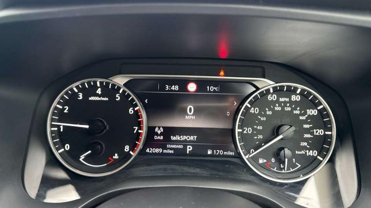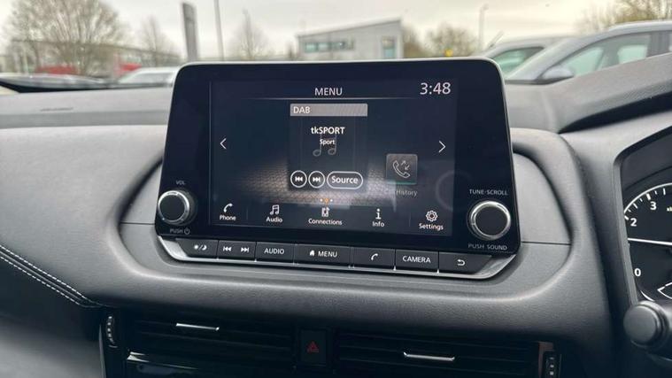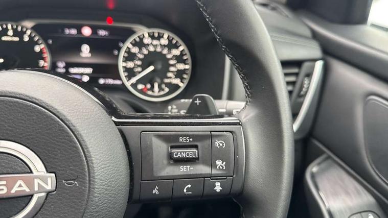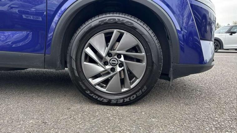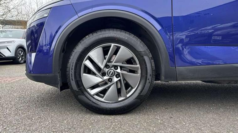 7" High definition full colour TFT screen combimeter, Android auto/Apple CarPlay (Wired), Blind spot warning, Drive modes (sport, normal, eco), Electric speed sensitive power steering, Emergency and breakdown call, Idle stop/start system, Intelligent Cruise control (ICC), Intelligent driver alert system, Intelligent forward collision warning, Intelligent lane intervention, Lane departure prevention, Lane departure warning system, Maximum speed limiter, Nissan connect 8" touchscreen infotainment system, Push button starter, Rear cross traffic alert, Rear parking sensors, Rear view camera, Traffic sign recognition with legal speed adjustment, Trip computer, 6 speakers, AM/FM audio system with DAB, Bluetooth audio streaming, Front USB connections (Type-A and Type-C), Auto dimming rear view mirror, Auto rear wiper when reversing, Automatic hazard signal with emergency stop signal, Body colour mirror caps, Body coloured door handles, Bodyside mouldings, Chrome side window finisher, Door handle with button, Electric auto folding door mirrors, Electrically adjustable and heated door mirrors with LED turn indicator, Follow me home headlights, High beam assist, Intelligent auto headlights, LED 3rd brake light, LED daytime running lights, LED Headlights, LED rear lights, One touch front and rear electric windows with remote opening and closing, Partially body coloured bumpers, Rear reversing light (bulb lighting), Rear roof spoiler, Rear side wing doors, Shark fin antenna, Splash free rain sensing wipers, Three blink turn signal, 12v power socket in dashboard and luggage, 2x Rear coat hooks, 3 bench rear seats in 2nd row, 3 rear headrests, 4 folding assist grip, 6-way manually adjustable driver's seat, 60/40 split folding rear seat bench, Centre console storage tray, Chrome interior door handles, Cloth monoform upholstery, Driver and front passenger sunvisors with illuminated vanity mirrors, Dual zone automatic climate control with pollen filter, Electrically adjustable lumbar support for driver, Front and rear door storage, Front centre console and armrest, Front cupholders x 2, Front door with bottle holders, Glovebox with light, Hard trunk cover, Height adjustable driver's seat, Height adjustable front headrests, Height adjustable passenger seat, Luggage space lighting, Manually adjustable passenger (slide recline + lifter), Multifunction steering wheel, Passenger seat back pocket, Rear armrest with 2 cupholders, Rear door bottle holders, Single front passenger seat, Steering wheel gearshift paddles, Steering wheel switches, Sunglasses holder, Tilt/telescopic adjustable steering wheel, Two rear isofix child seat anchorage points with top tether, 3x3 point rear seatbelt pretensioners + load limiters, ABS with EBD and brake assist, Active brake limited slip, Auto hold function, Child locks on rear doors, Curtain and front side, far side airbags, Driver and passenger airbags, Driver, passenger and 2nd row rear seat belt reminder, Electronic parking brake, Front seatbelt pretensioners + load limiters, Height adjustable front seatbelts, Hill start assist, Intelligent blind spot intervention, Intelligent front emergency braking with pedestrian, cyclist recognition and junction assist, Intelligent rear automatic braking, Tyre pressure monitoring system, Vehicle dynamic control, Capless fuel filler, Engine immobiliser, Intelligent Key, Remote central door locking with deadlocking, Thatcham Cat.1 alarm, Interior instrumental panel A finisher, 17" Alloy wheels, Tyre puncture repair kit,