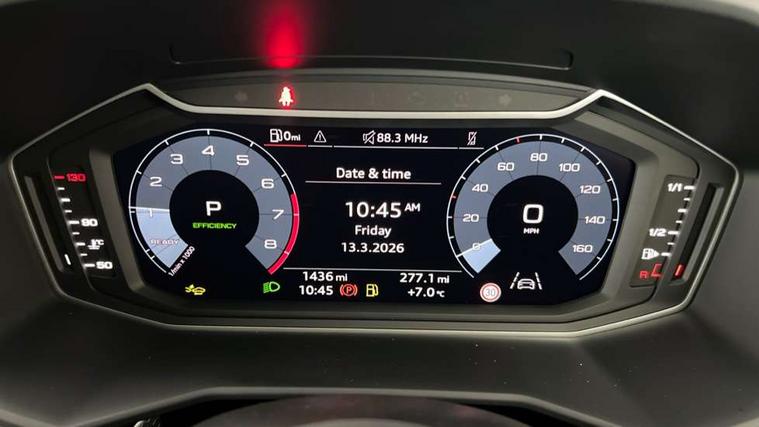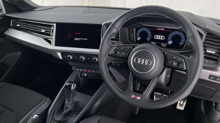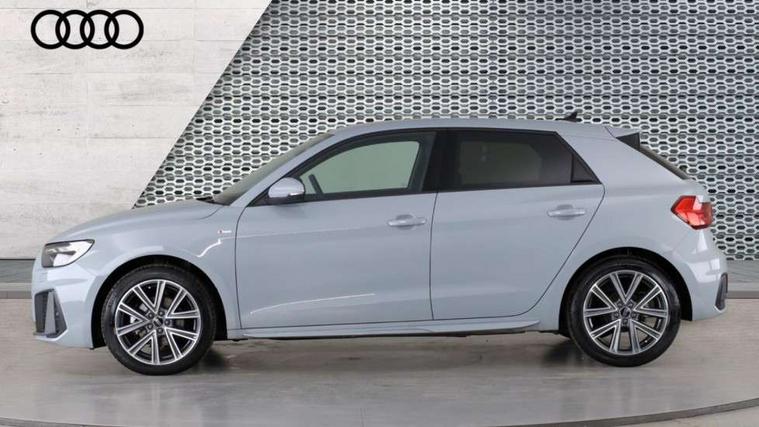 10.25" Digital instrument cluster display classis style instrument dials + speed, odometer, time, outside temperature, telephone menu + fuel level warning, Advanced driver attention and drowsiness monitor, Audi connect emergency call and service, Audi drive select, Audi remote connect and control, Audi smartphone interface, Bluetooth interface, Camera based traffic sign recognition, Cruise control, Driver's information system, Electromechanical power steering, Lane departure warning system, Rear parking sensor, Service interval indicator, Speed limiter, Start stop system with recuperation, Voice control system, Washer fluid level indicator, Sports suspension, 2 x USB type C connection points, 6 loudspeakers, DAB Digital radio, MMI radio plus with 10.1" colour MMI display screen and MMI touch, Auto dimming rear view mirror, Body coloured door mirrors, Door sill trims with aluminium inlays and S line logo in front, Electric front and rear windows, Electrically adjustable, heated, folding door mirrors with integrated LED side indicator, Front side air inlets in grained matt black and C frame in anthracite black, Headlight cleaning system, Heat insulating glass windscreen and side windows, Heated rear windscreen, High level LED brake light, LED daytime running lights, LED headlights with range control LED rear lights + dynamic rear indicators, Light and rain sensors, Privacy glass, Radiator grille and rear diffuser in matt anthracite black, Radiator protective grille frame in matt aluminium silver, Rear fog lights, Rear side wing doors, Rear wiper, S line badges on front wings, Side front spoiler lips in grained matt black, 12V socket in centre console with two cup holders, 3 rear seats with headrests, 3 seat bench in 2nd row, 3 spoke leather multi-function plus steering wheel features S badging and grips in perforated leather with contrast stitching, 40:60 Split folding rear seat or fully collapsed, Black cloth headlining, Front and rear velour black floor mats with contrast stitching in fine silver, Front head restraints, Front passenger seat, Height and reach adjustable steering wheel, Interior lighting includes roof module, front and rear reading lights and right luggage compartment lighting, ISOFIX child seat mounting for front passenger and outer rear seats including top tether attachment point of outer rear seats, Leather gear knob with aluminium trim, Leather handbrake grip, Manual air conditioning, Manual height adjustable for driver and front passenger seat, Manually adjustable lumbar support in front seats, Stainless steel pedals, Ambient lighting package - A1, Luggage compartment pack - A1, S line exterior styling pack - A1 Sportback, 3x3 point rear seatbelts, Audi pre-sense front with pedestrain and cyclist recognition, Brake assist function, Driver and front passenger airbag with front side and head airbags, Electronic Stability Control including ABS, EBD, ASR and EDL, Front passenger airbag deactivation switch, Hill hold assist, Manual rear child locks, Seatbelt height adjustment for front seats, Seatbelt monitoring, Tyre pressure loss indicator, Warning triangle and first aid kit, Anti theft alarm, Anti theft wheel bolts, Immobiliser, Remote control key with safelock, Aluminium trim for control switches, air vents and digital instrument cluster, Black dashboard, Silver grey inlays polygon structure in diamond paint finish, Structured grey accent surfaces insert of air vents, interior door handle recesses and centre console in quartz paint finish,