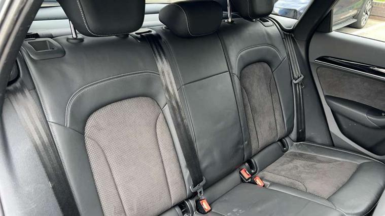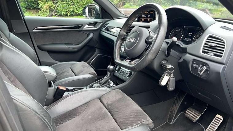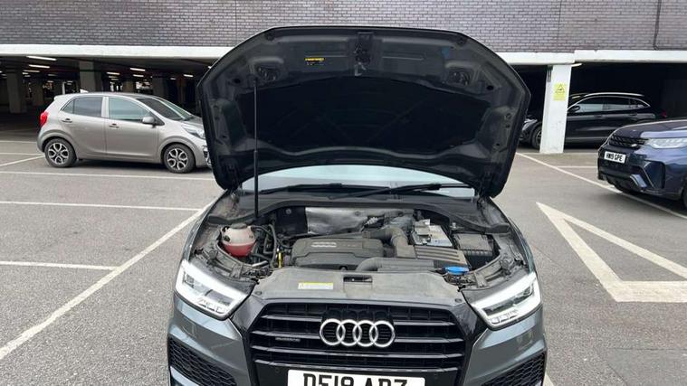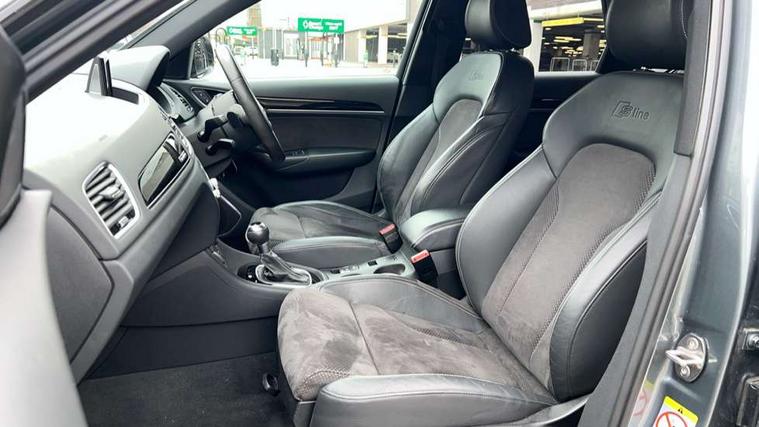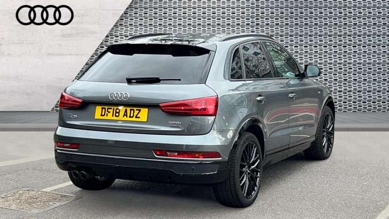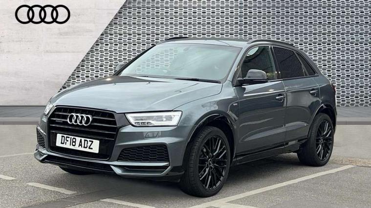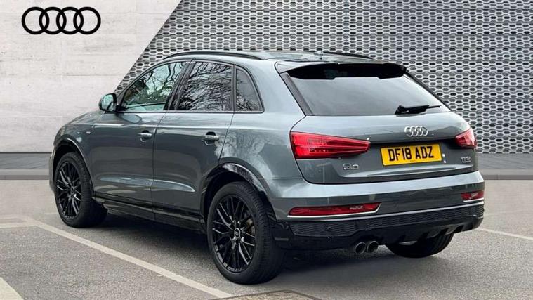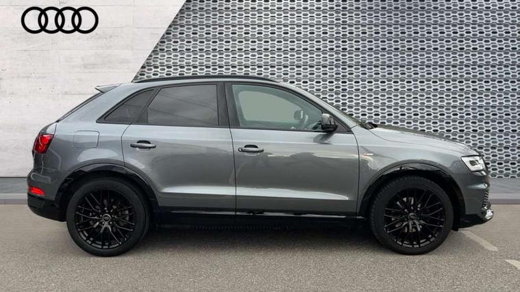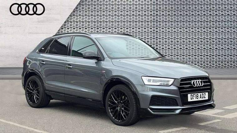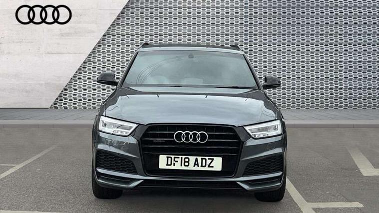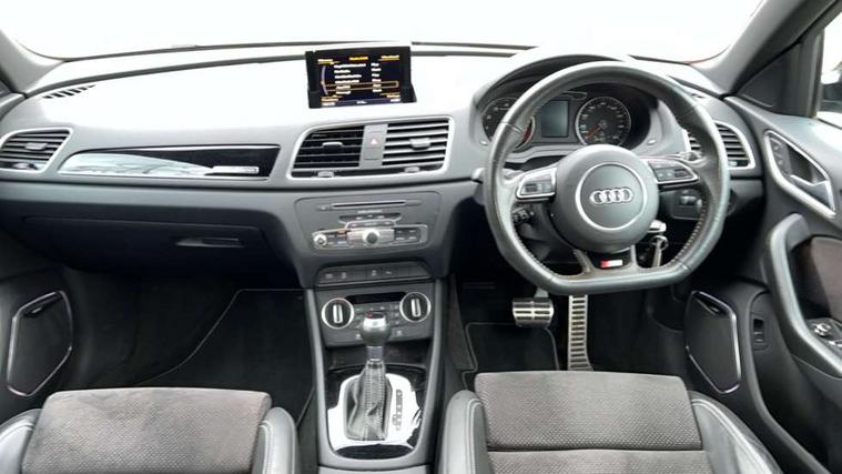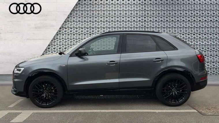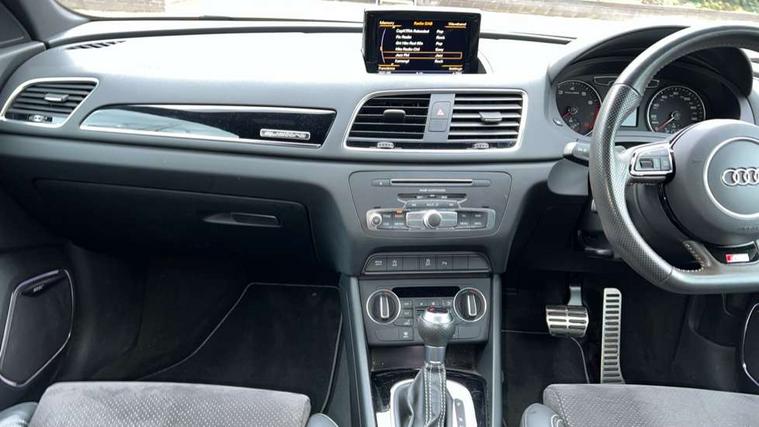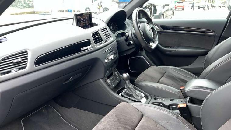 6.5" colour display screen, Audi drive select, Cruise control, Electro-mechanical PAS, Low washer fluid indicator, MMI - Multi Media Interface control system, On board computer, Remote electric boot opening/closing, Service interval indicator, Voice control system, Sports suspension, Audi music interface, BOSE sound system, DAB digital radio module, Acoustic windscreen, Aluminium window surround, Auto dimming rear view mirror, Black exhaust tailpipes, Black high gloss door mirrors, Black roof rails, Coming home function, Door mirror integrated indicators, Front and rear electric windows, Front fog lights, Front lip spoiler, Heated windscreen washer jets, High Gloss Black Contrast Bumpers, High Gloss Black rear spoiler, LED daytime running lights, LED headlights with headlight washers, LED rear lights, Light and rain sensor for auto activation of lights and windscreen wipers, Loading sill protector in stainless steel, Privacy glass, Rear diffuser with platinum insert, Rear wiper, S Line body styling, Sunband for windscreen, 12V socket in rear centre console, 3 spoke flat bottom multi-function perforated leather steering wheel with contrast stitching and aluminium gearshift paddles, Aluminium door sill trims, Aluminium gear knob, Black cloth headlining, Door sill trim strips, Dual zone climate control, Electric front lumbar adjustment, Front and rear headrests, Front and rear velour floor mats, Front centre armrest with storage compartment and angle adjustment, Front sports seats, Height/reach adjust steering wheel, ISOFIX on front passenger and rear outer seats, Jack and tool kit, Retractable luggage cover, Reversible boot floor, Split fold rear seat, Stainless steel pedals, Storage compartment and 12V socket, Under floor storage in luggage area, Audi Exclusive black styling pack - Q3, LED interior light pack - Q3, 3x3 point rear seatbelts, ABS+Electronic Brake force Distribution, Curtain airbags, Driver and passenger airbags, Driver and passenger side airbags, EDL + ASR, Electrically operated child locks on rear doors, Electromechanical parking brake, ESP, First aid kit, Front passenger airbag deactivation, Head airbags, Seatbelt warning light, Tyre pressure monitoring system, Warning triangle, Locking wheel bolts, Remote central locking, Thatcham category 1 alarm + immobiliser, Piano black finish inlay,