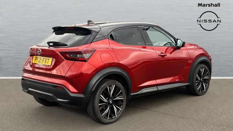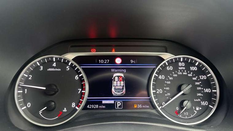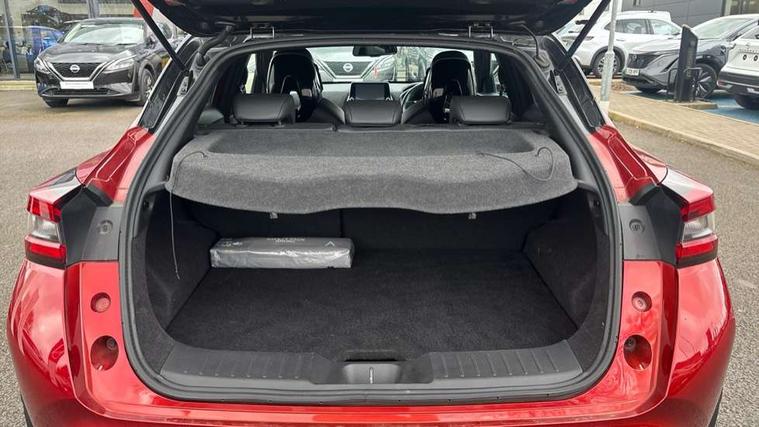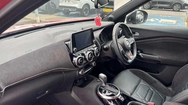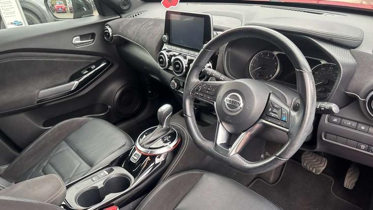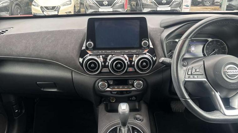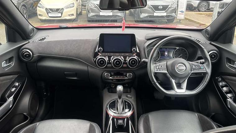 7" full colour TFT screen combimeter, 8" infotainment colour display with touch screen, Apple CarPlay and Google Android auto, Drive modes select (Eco, normal and sport), Emergency and breakdown call, Front parking sensor, Idle start/stop system, Intelligent lane intervention, Lane departure warning system, Nissan connect nav with TomTom traffic, Nissan connect services and Wifi connection, Outside temperature sensor, Power Steering, Rear parking sensor, Traffic sign recognition, Trip computer, Gasoline particulate filter, Bluetooth system, USB, Aux-in and 12V socket, Bose personal plus audio system with 8 speakers(4 speakers and 2 headrest speaker for driver and passenger seats), Bose personal sound stage control, DAB Digital radio, Front lower bumper painted in silver finisher, Rear console USB port, Auto dimming interior rear view mirror, Automatic hazard signal with emergency stop signal, Body colour bumpers, Body colour door handles, Electrically adjustable door mirrors with integrated indicators, Follow me home headlights, Front and rear electric window with one touch driver window, Heated and auto folding door mirrors, High beam assist, LED daytime running lights, LED front fog lights, LED headlamps, LED rear fog lamp, LED rear lamps, Rain sensor windscreen wipers, Rear privacy glass, Rear spoiler, Rear wiper, Thermaclear heated windscreen, Three blink turn signal, 3 height adjustable rear headrests, 60/40 split folding rear seat, Automatic climate control, Card holder on driver sunvisor, Door ambient lighting, Driver and passenger sliding and reclining seats, Driver seat back pocket, Driver side rear coat hanger, Driver/passenger sunvisors and vanity mirrors, Front and rear cabin lighting, Front armrest, Front door pockets with bottle holders, Front head restraints, Front passenger isofix child seat anchorage point, Front/rear passenger grab handles, Gear console ambient circle lighting, Grey synthetic leather kneepad, Heated front seats, Height adjustable driver's seat, Height adjustable passenger seat, Internal chrome door handles, Leather gearshift knob, Leather steering wheel, Luggage board, Luggage space lighting, Monoform sporty seats, Multifunction steering wheel, Passenger seat back pocket, Rear door bottle holders, Steering wheel mounted gearshift paddles, Telescopic steering wheel adjustment, Two cupholders in front centre console, Two rear isofix child seat anchorage points with top tether, Voice recognition switch on steering wheel, Welcome light and console tray ambient lighting, ProPilot pack - Juke, ABS with EBD and brake assist, Active ride control, Active Trace Control, Driver and passenger airbags, Driver and passenger side airbags, Electric handbrake with auto hold function, Electronic Stability Programme (ESP), Front and rear curtain airbags, Height adjustable seatbelts, Hill start assist, Intelligent emergency braking with pedestrian and cyclist recognition, Seatbelt reminder for driver/front passenger and rear seats, Single tone horn, Three 3 point rear seatbelts, Traction control, Tyre pressure monitoring system, VDC Dynamic Vehicle Control, Ventilated rear brake discs, Alarm, Immobiliser, Intelligent Key with push button starter, Remote central locking, 19" Akari alloy wheels,