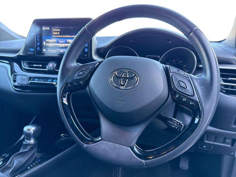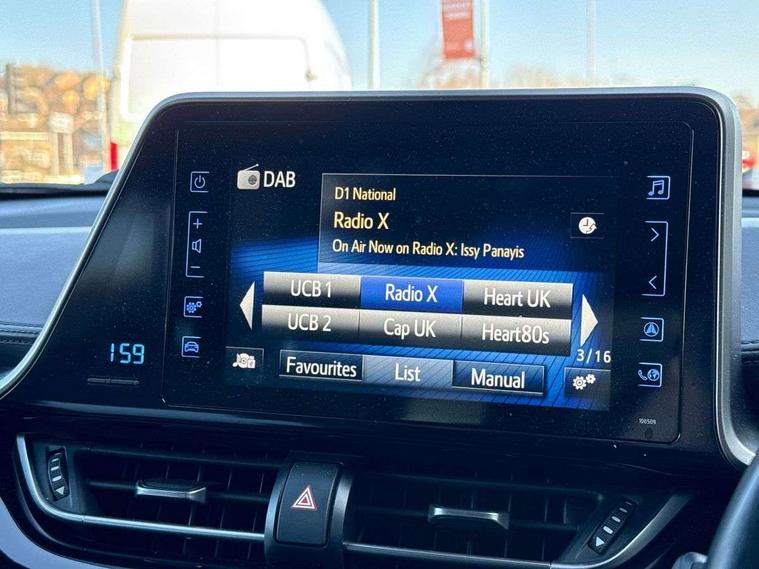 7" Coloured TFT multi informational display, 8" touch screen, Adaptive cruise control, Adjustable speed limiter, Bluetooth connectivity, Electric power steering, Intelligent parking assist with front & rear parking sensors, Lane change assist and blind spot monitor, Lane departure alert with steering control, Lights on warning, Push button starter, Rear cross traffic alert, Reversing camera, Reversing camera display in audio screen, Road sign assist - RSA, Touch 2 Go navigation system, Trip computer, Voice recognition, Vehicle Stability Control (VSC), 6 speakers, DAB Radio (Digital Audio Broadcasting), Steering wheel mounted controls, USB and Aux in connectors + 12V front outlet, Wi-fi connectivity, Auto high beam, Automatic headlight levelling, Automatic headlights, Automatic retractable door mirrors, Bi-tone black roof, Body colour door handles, Body colour door mirrors, Body coloured bumpers, Boot door release with push button, Door mirror puddle lights, Electric folding/heated door mirrors with integrated indicators, Electrochromatic rear view mirror, Follow me home headlights, Front and rear electric windows, Heated rear windscreen, Intermittent wipe, LED daytime running lights, LED front fog lights, LED headlights with sequential LED indicators, LED High mounted stop lamp, LED rear brake lights, LED rear lights, Rain sensitive windscreen wipers, Rear privacy glass, Rear spoiler, Rear wiper, Shark fin antenna, Trailer sway control, 12V Accessory socket, 3 spoke leather steering wheel with multimedia switches, Ambient lighting, Chrome interior door handles, Clean air filter, Cloth upholstery, Driver + front passenger electric lumbar support, Driver and front passenger personal light, Driver and front passenger Whiplash Injury Lessening seats, Driver/passenger sunvisors and illuminated vanity mirrors, Dual zone automatic air conditioning, Folding rear seats, Front and rear door pockets, Front console box and front cupholders, Front cupholders x 2, Front head restraints, Gear shift indicator, Glovebox with internal light, Hard tonneau cover, Heated driver and front passenger seats, Illuminated door sills, Illuminated entry system, Isofix seat fixing, Leather effect padded armrest on front console box, Leather gearshift, Light blue ambient lighting on front doors, Pollen filter, Rear headrests, Tilt/telescopic steering column, 3x3 point rear seatbelts, ABS+EBD+Brake assist, Electronic parking brake, ESP + traction control, Front and rear seatbelt reminder, Front passenger airbag on/off switch, Hill start assist control (HAC), Pre collision system with pedestrian detection, Rear child proof door locks, Road sign information display, Supplemental restraint system (SRS) airbags - 7 airbags including driver, front passenger, curtain, side and knee airbags, Toyota safety sense, Tyre pressure monitoring system, Immobiliser, Intrusion alarm, Motion sensor alarm, Remote central locking, Smart entry + Smart start, Silver dash inserts, 18" 5 double spoke matt black alloy wheels, Tyre repair kit,