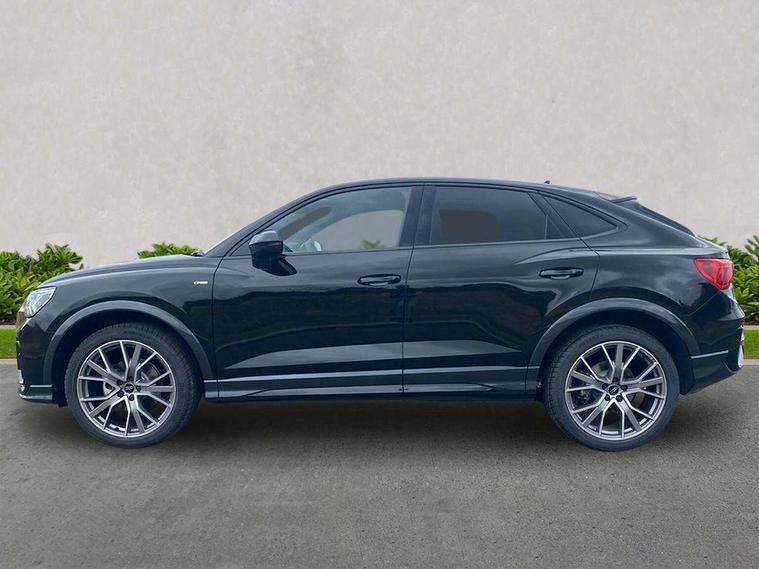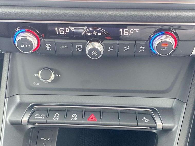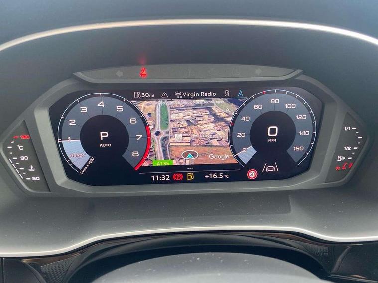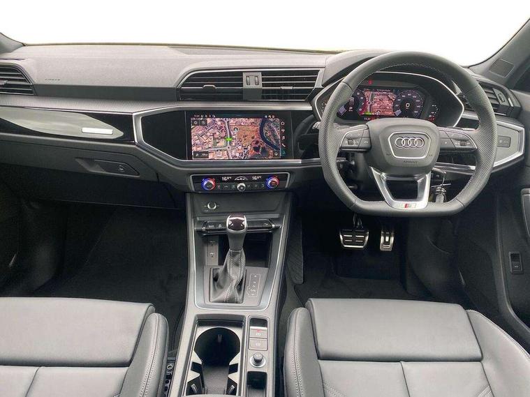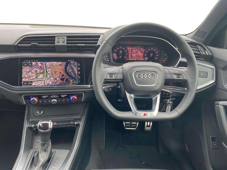 Audi connect safety and service, Audi drive select, Audi lane departure warning, Audi Virtual Cockpit - 10.25" display, Bluetooth interface, Camera based traffic sign recognition, Distraction and Fatigue warning, Legal emergency call, MMI Navigation Plus with high resolution 10.1 inch touchscreen colour display, Power operated tailgate, Progressive steering, Service interval indicator, Smartphone interface includes wireless Apple carplay/Android Auto, Start stop system with recuperation, Voice control system with natural language interaction, Sports suspension, 2 USB-C ports with charge and data functions, 6 passive loudspeakers, DAB digital radio module, Acoustic windscreen, Audi Beam uses LEDs to project the Audi logo onto the ground as you exit your Q3, Auto dimming door mirrors, Auto dimming frameless rear view mirror, Electrically folding, adjustable and heated door mirrors with integrated LED side indicators and kerb view function for passenger side, Front and rear electric windows, Front fog lights, Front underbody protection in manhattan grey paint finish, High gloss black finish B and C pillars, Honeycomb design radiator grille in matt anthracite black, LED Dynamic rear indicators, LED headlights with LED daytime running lights, LED rear lights, LED third brake light, Privacy glass dark tinted rear and rear-side windows (from B-pillar backwards), Rain and light sensors, Rear diffuser grille in grained matt black, Rear diffuser strip in matt anthracite black, Rear side wing doors, Rear underbody protection in matt black, Rear wiper, S line front and rear bumpers and side skirts in contrasting Manhattan grey paint finish, Variable front intermittent wipers, 12V socket in rear centre console, 3 seat bench in 2nd row, 40:20:40 folding with manual adjustment for 60:40 forwards/backwards position and backrest angle, Adjustable rear seat bench/backrest with centre armrest and cupholder, Black carpet mats, Black cloth headlining, Dual zone electronic climate control, Electric lumbar support, Front and rear black floor mats with contrast stitching in rock grey, Front and rear headrests, Front centre armrest, Height and reach adjustable steering wheel, Illuminated door sill trims with S logo, ISOFIX child seat mounting for front passenger with airbag deactivation and outer rear seat including top tether attachment point for outer rear seats, Luggage compartment sill protection in stainless steel, Manual front seats with height adjustment, Perforated leather gearknob, Single front passenger seat, Stainless steel pedals, Twin leather upholstery with front sport seats + S embossing, Black styling pack - Q3, Non smoking pack - Q3, 3x3 point rear seatbelts, 6 airbags - Driver, front passenger, curtain and side windows, Audi pre-sense front with pedestrain and cyclist recognition, Electrically operated child locks on rear doors, Electromechanical parking brake, Electronic stabilisation control including ABS, ASR and EDL, Front seatbelt reminder, Hill descent control, Hill hold assist, Pre sense basic, Seatbelt monitoring, Tyre pressure warning, Warning triangle and first aid kit, Anti theft wheel bolts, Immobiliser, Remote central locking, Thatcham approved category 1 anti theft alarm, Aluminium look interior elements, Detail dashboard around MMI touch colour display in glass look, black with surround in aluminium look, Leatherette door armrest, Piano black inlay,