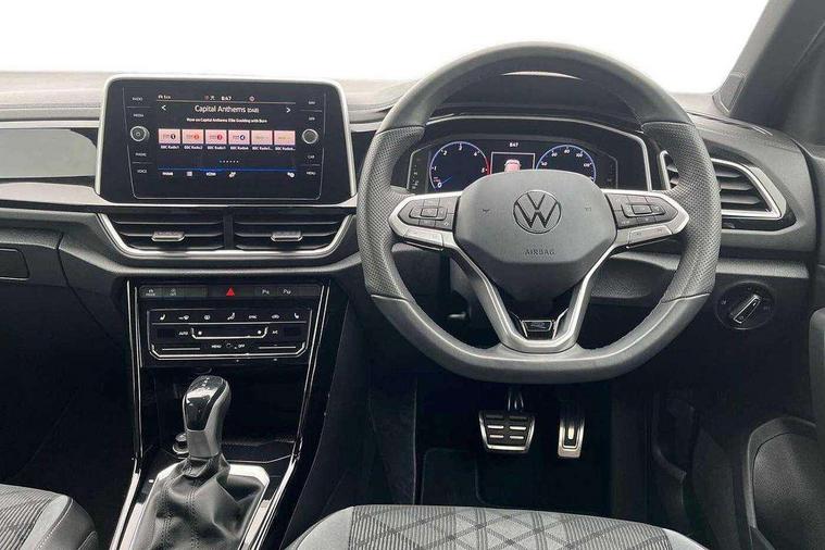 10.25" Digital cockpit pro, Advanced driver attention and drowsiness monitor, Dynamic road sign display, Emergency call service, Lane keeping system Lane Assist, Mobile phone interface, Modified key software - reduce switch off time for key status change to Long no motion, Online services, Park assist including front and rear parking sensors, Service interval indicator, Tailgate/trunk lid release from outside, Think blue trainer driver tips and journey analysis, Warning sound and light for front seatbelts unfastened, Wireless app connect, Battery regeneration during braking, Start/stop function with battery regeneration, DAB Digital radio, Diversity antenna for FM reception, Front and rear 6 speakers, Music playback - MP3, WMA and AAC files, Premium USB cable in choice of either Apple or Android smartphone compatibility, SD card slot, Simultaneous pairing of 2 compatible mobile devices, Title and cover art display, We Connect and We Connect Plus functionality, Auto dimming interior rear view mirror, Automatic hazard lights activation under emergency braking, Automatic headlight control with LED separate daytime running lights with coming/leaving home function, Body coloured exterior mirror housings and door handles, Electrically adjustable and heated door mirrors, Extended roof spoiler, Exterior mirrors aspherical on driver side, convex on front passenger side, External USB type C socket and charging sockets, Front windscreen wiper with intermittent wipe and 4 position delay, Heated rear window, LED 3rd brake light, LED rear combination lamps, LED rear number plate lights, Power windows with comfort operation and circuit breaker, Privacy glass for rear side windows and rear window, R-Line design body coloured bumpers, Rain sensor, Rear exhaust tailpipe, Rear fog light on one side and reversing lights on both sides, Rear side wing doors, Rear wash/wipe with intermittent wipe setting, Remote electrically foldable door mirrors, puddle lights and reverse activated passenger's door mirror, 12V power socket in centre console, 3 rear head restraints, 3 seat bench in 2nd row, 4 load lashing points in luggage compartment, Air care climatronic air conditoning system with active combination filter and 2-zone temperature control, Black roof lining, Chrome plated decorative trims, Chrome plated radiator grille inserts, air vent surrounds and light switch surrounds, Door and side trim panel with leatherette insert, Front + rear carpet mats, Front centre armrest, Front cupholders x 2, Front footwell illumination, Front reading light, Front scuff plates with R Line logo, Front seat back storage pockets, Glove compartment door with light, Instrument lighting, white adjustable panel illumination, Interior ambient lighting and surround lighting, Interior light delay, Isofix child seat preparation, Leather gearshift handle, Load-through provision with cup holder when folded down ('Unsplit rear seat bench, split folding backrest, with centre armrest), Luggage compartment lighting, Single front passenger seat, Stainless steel pedals, Storage compartment in left and right luggage area, Storage compartment in rear doors, Storage compartments in driver and front passenger doors, Sunvisors with illuminated vanity mirrors, Variable boot floor, height adjustable and removable, Driver assistance pack without proactive passenger protection - T-Roc, 3 point height adj front seatbelts + pretensioners, 3 point seatbelts in outer rear with ECE label, ABS, Child locks on rear doors, City emergency braking and pedestrian monitoring, Driver and front passenger airbag with front passenger airbag deactivation, Driver and front passenger safety-optimised head restraints, Drivers seatbelt reminder, Electronic parking brake, Electronic Stability Control (ESC) inc EDL (Electronic Differential Lock) and ASR (Traction Control), Front and rear passengers curtain airbag system including front side airbags, Hill start assist, Predictive pedestrian protection, Rear disc brakes, Two tone horn, Tyre pressure loss indicator, Volkswagen roadside assistance, Piano black decorative inserts in dashboard and front door trim panels, Trims for alloy wheels,