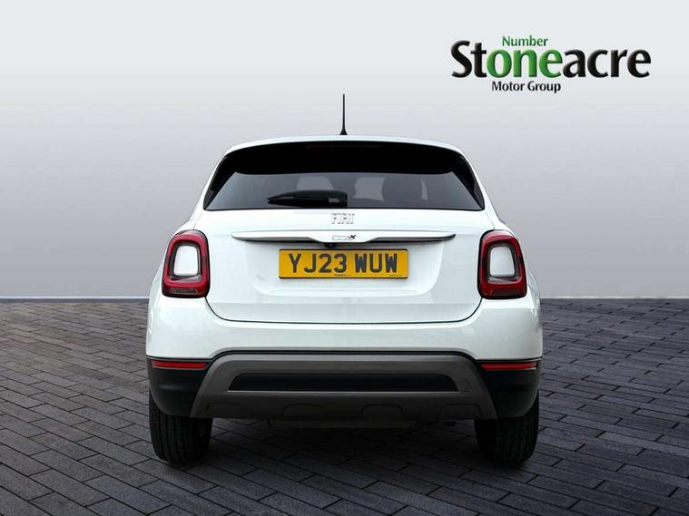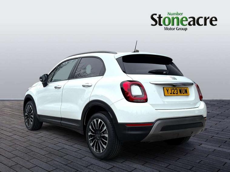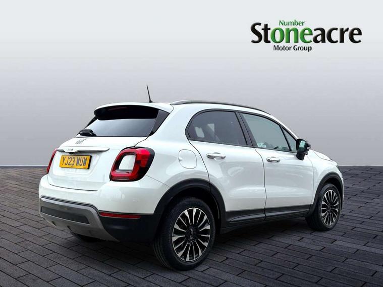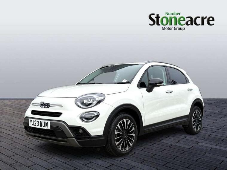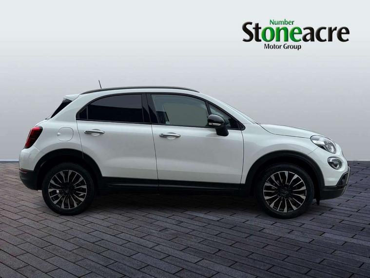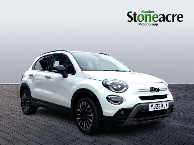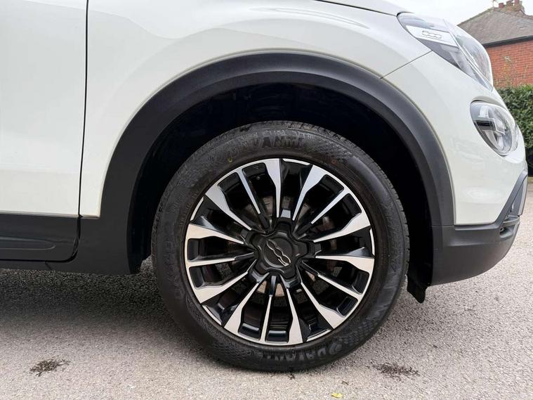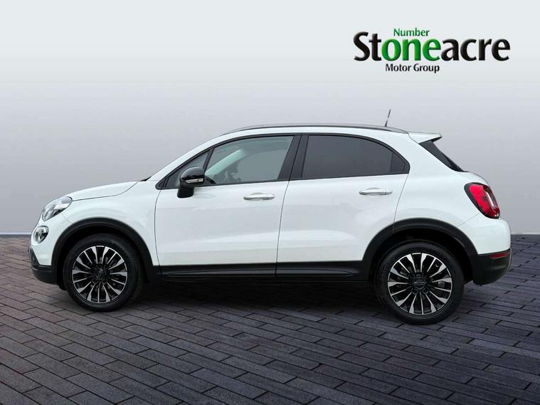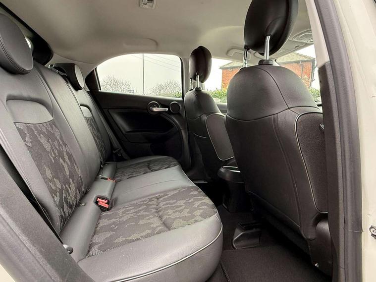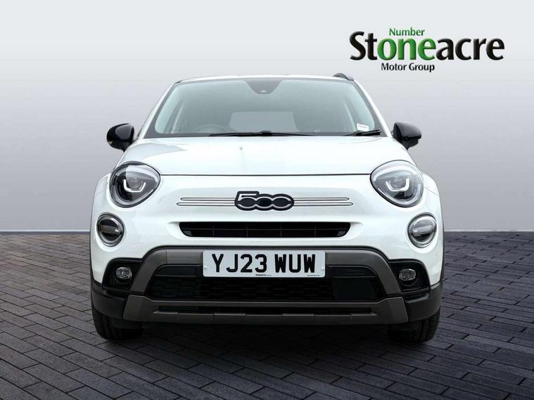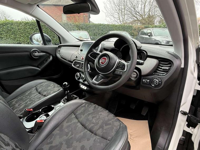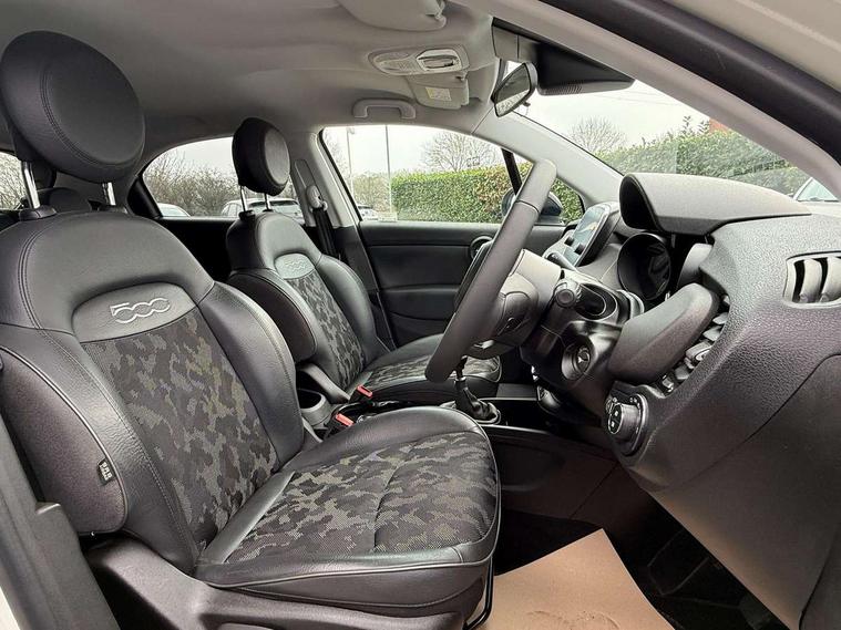 3.5" monochrome TFT display, 7" HD touchscreen DAB radio with bluetooth, 3D navigation, Aux-in and USB in central tunnel, Apple car play/Android Auto, E-call, Lane assist with intelligent speed assist and traffic sign recognition, Lane departure warning, Power assist steering, Rear parking sensor, Speed limiter, Stop/start system, Active roll mitigation, 6 speakers, USB port, 3rd brake light, All-road bumpers with protective inserts, Black electrically adjustable door mirrors, Black grained fog lights bezels, Dark tinted rear windows, Dusk sensor, Electric front and rear windows, Heated rear windows with wash wipe, LED tail lights, Privacy glass, Rain sensor, Rear side wing doors, Rear spoiler, Rear wiper, Satin chrome 500 logo, Satin chrome Fiat logo, Satin chrome front moustache, Satin chrome inserts tailgate, door handles, front moulding, Satin chrome skid plates, 3 seat bench in 2nd row, 60/40 split folding rear seat, Automatic dual zone climate control, Auxilliary 12V power socket, Cooled glovebox, Front head restraints, Height adjustable drivers seat, Height adjustable steering wheel, Parcel shelf, Satin Chrome door handles, Single front passenger seat, Soft touch steering wheel with controls, Sunvisors, Techno leather steering wheel with audio controls, Two rear head restraints, LED lights pack - 500X, 3x3 point rear seatbelts, 6 airbags - Front, side and window, Child locks on rear doors, Electronic parking brake, ESC including ASR, MSR, Hill Holder, ABS, EBD, ERM, DST, BAS, Front and rear seatbelt reminder, Height adjustable seatbelts, Manual passenger airbag deactivation function, Tyre pressure monitoring system, Deadlocks, Immobiliser, Remote central locking, Cold grey dashboard,