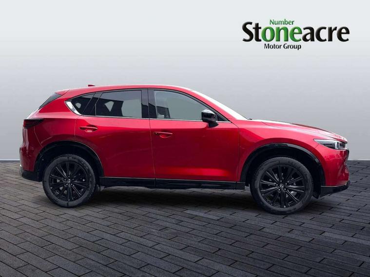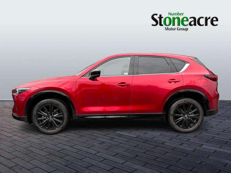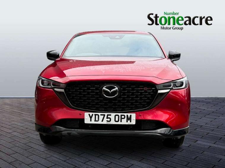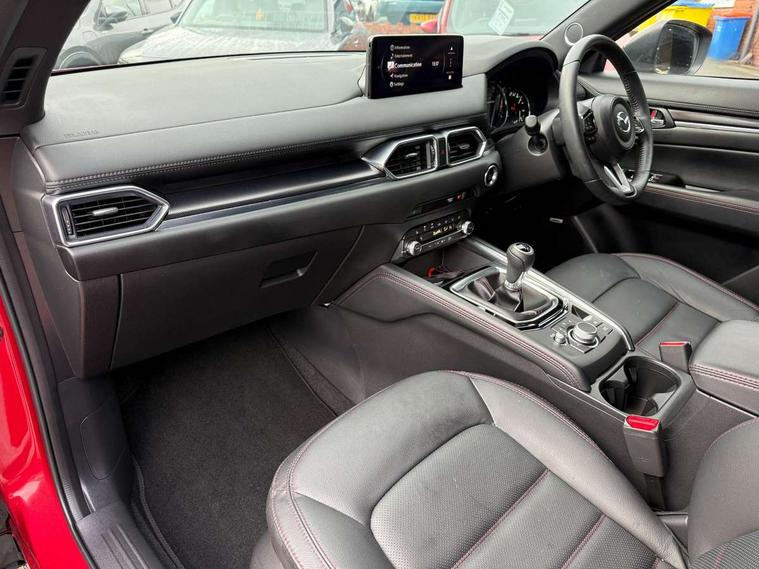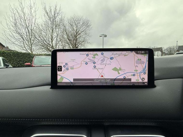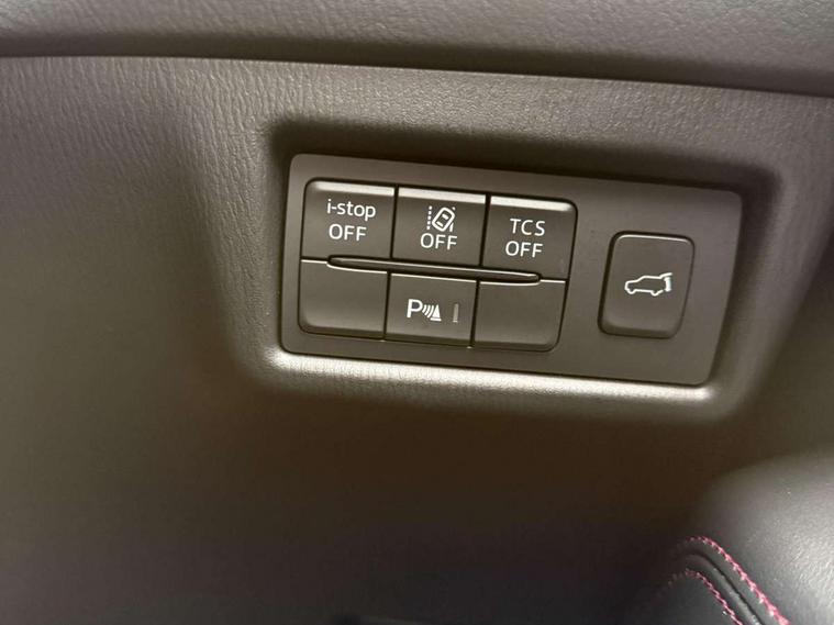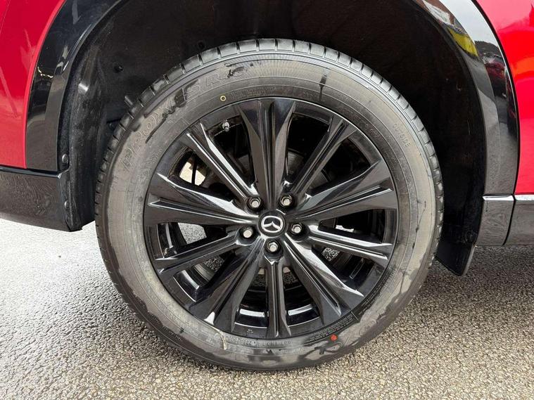 10.25" display with Mazda Connect infotainment, 7" colour TFT display, Advanced blind spot monitoring, Bluetooth connectivity with voice control, Collision prevention assist, Connected services, Cruising Traffic Support, Electric power steering, Emergency stop signalling system, Engine start/stop button, Forward collision warning, Front and rear parking sensors, Integrated navigation system, Intelligent speed assist, Lane departure warning system, Lane keep assist, Power liftgate, Qi wireless phone charging, Radar cruise control, Rear cross traffic alert, Reversing camera, Service indicator, Traffic sign recognition (TSR), Trip computer, Windscreen projected colour active driving display (HUD) with memory, Wireless apple car play/android Auto, Cylinder Deactivation, i-stop, AM/FM radio, Bluetooth audio streaming, Bose premium sound system with 10 speakers, DAB Digital radio, Multimedia Commander including separate volume dial, Steering wheel mounted audio controls, Adaptive front lighting system, Auto dimming rear view mirror, Automatic headlights, Black honeycomb door trim decoration panel, Black honeycomb interior decoration panel, Body colour roof spoiler, Coming/leaving home lighting function, Door mirror integrated indicators, Dual large chrome tailpipes, Dusk sensitive headlamps, Electric front/rear windows with one touch auto up/down, Front grille in gloss black finish, Front grille in gloss black with red accent + gloss black signature wing, Gloss black B and C pillars garnish, Gloss black door mirrors, Gloss black front and rear lower bumper mouldings, Gloss black tire arch and side mouldings, High beam assist, Intermittent rear wash/wipe, LED auto levelling, LED daytime running lights, LED front fog lights, LED Headlights, LED third brake light, Power folding and heated door mirrors, Power tilt/slide sunroof, Privacy glass (rear side windows only), Rain sensing front wipers, Rear side wing doors, Red front grille accent, Red stitching and accents on door trim, knee pad, console lid, steering wheel, shift boots, Scuff plates, Shark fin antenna, Signature LED rear combination lights, Variable intermittent front wash/wipe, Windscreen wiper de-icer, 12v electrical power outlet, 3 seat bench in 2nd row, 3 stage heated front seats, 40:20:40 Karakuri fold-flat seat system, 6 way electric adjustable passenger seat, 8 way electric driver seat with lumbar support + memory, Black roof lining, Cargo room flat floor board with waterproof undertray, Driver seat power slide, recline and height adjustment, Driver, Front passenger and two rear grab handles with coat hooks, Driver/passenger front seatback pockets, Driver/passenger sunvisors + illuminated vanity mirrors (drivers with ticket holder), Dual zone climate control, Folding centre armrest with 2 cup holders, Front and rear door pockets, Front centre storage with two cupholders, Front passenger seat power slide, recline and height adjustment, Gear shift indicator, Heated steering wheel, Humidity sensor, Illuminated glovebox, Interior dome light with integral spotlight, ISOFIX child seat anchorage points attached on outer rear seats, Karakuri tonneau cover, Leather upholstery, Leather wrapped steering wheel and gear knob, Luggage compartment LED lighting, Luggage compartment power outlet, Rear air vents, Rear headrests, Rear seat recline, Roof mounted sunglasses holder, Single front passenger seat, Three height adjustable head restraints, Tilt/height adjustable steering wheel, USB Connectivity (2x front Type-C, 2x rear Type-B), White interior LED illumination lighting, 3 point front seatbelts with pre-tensioners, 3 rear 3 point seatbelts, ABS, Advanced Smart City Brake Support - SCBS, Child locks on rear doors, Driver and front passenger side airbags, DSTC-Dynamic Stability and Traction Control, Dual front airbags, Electronic brake force distribution, Electronic parking brake with auto hold, ESP, Front and rear curtain airbags, Front passenger airbag deactivation, G-Vectoring control, Hill hold assist, Seatbelt reminder front and rear, Single stage passenger airbags, Smart brake support with forward obstruction warning, Tyre pressure monitoring system, Automatic door locking when moving off, Deadlock, Immobiliser, Power door locks, Remote central locking, Smart keyless entry, Thatcham Cat.1 alarm, 19" Black alloy wheels, Tyre repair kit,