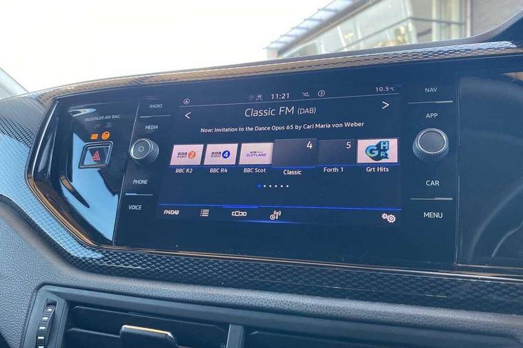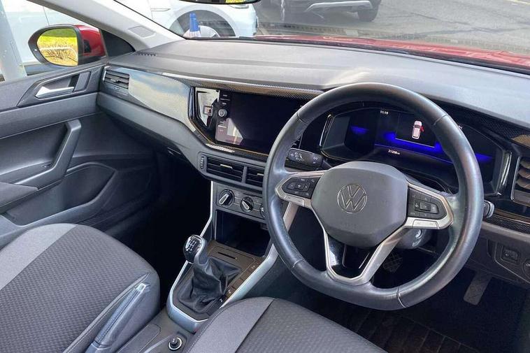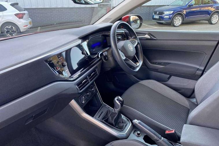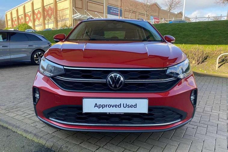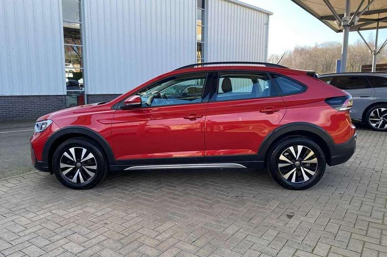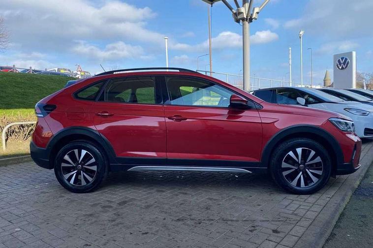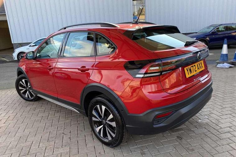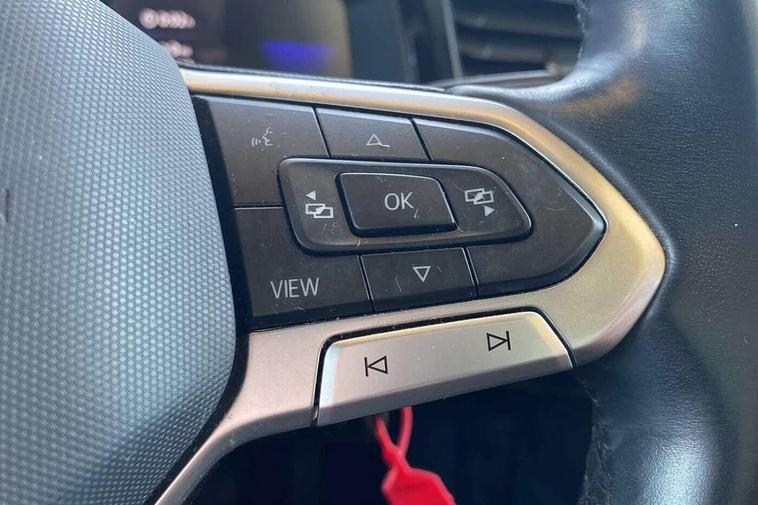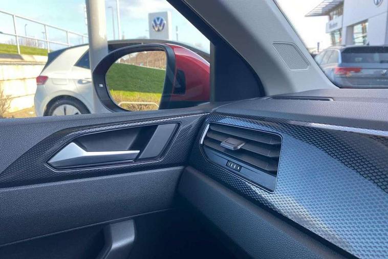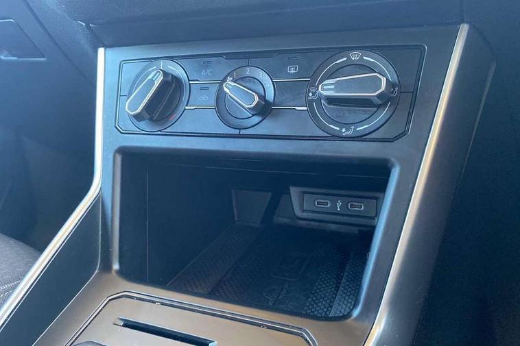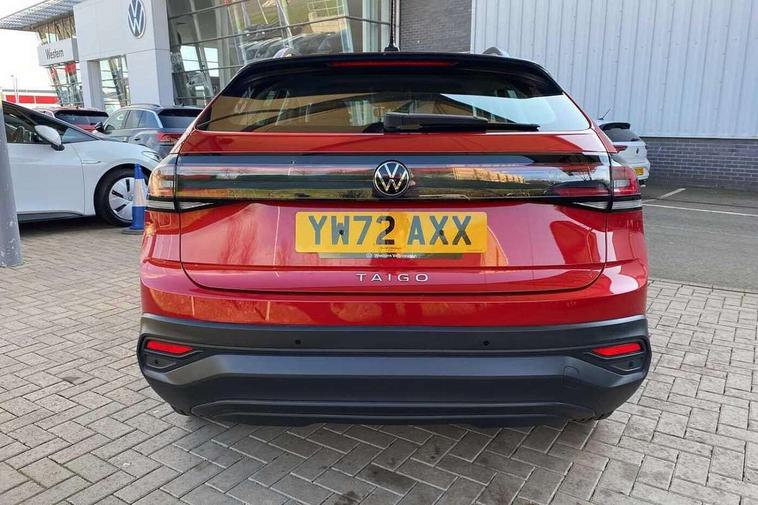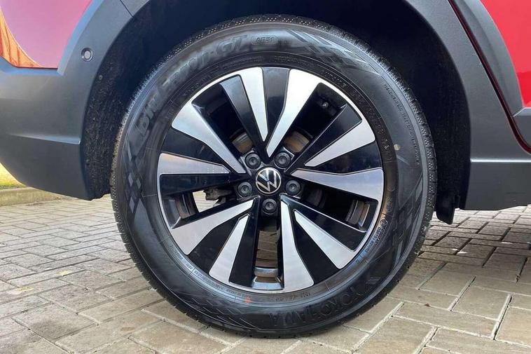 Driver alert system, e-Call (emergency call), Power Steering, Travel assist including emergency assist, Washer fluid level indicator, Wireless Charging including Bluetooth, Start-stop system with battery regeneration (recuperation - energy recovery during braking), WeConnect plus, Ambient lighting with logo projection, Aspherical driver's exterior mirror, Auto headlights, Body coloured bumpers, Body coloured exterior mirror housings and door handles, Electric windows, External USB type C socket and charging sockets, Front fog lamps with cornering function, Headlight range control, Heat insulating glass windscreen, LED headlamps, LED rear combination lamp, LED third brake light, Left convex exterior mirror, Power folding adjustable/heated exterior mirrors and front passenger exterior mirror lowering function, Rear fog light on one side, reversing light on both sides, Rear side wing doors, Rear wash/wipe with intermittent wipe setting, 'Slash/ Austin' Cloth upholstery, 12V socket in centre console, 2 front reading lights, 3 rear head restraints, 3 seat bench in 2nd row, Black carpets, Child seat anchor for child seat system i-Size, 2x top tether and child seat anchor in front on front passenger side, Door and side trim panels in titan black, Driver and front passenger seat height adjustment, Front centre armrest, Handbrake lever handle in leather, Height and reach adjustable steering wheel, Leather trimmed gear knob, Leather wrapped multifunction steering wheel, Luggage compartment floor, Luggage compartment light, Lumbar support for driver's and front passengers seat, Seat covers in titanium black, Single front passenger seat, Split folding backrest with centre armrest and unsplit rear seat bench, Storage compartment under front seats, Sun visors with illuminated vanity mirrors, Chrome Package - Taigo, Drivers assistance pack - Taigo, Light and Sight pack including High beam assist - Taigo, 2 x 3-point seatbelts/outer rear seats with ECE label, 3-point seat belts in front with pretensioner and height adjustment, 3-point seatbelt for centre rear seat, Driver and front passenger airbags with front passenger airbag de-activation, front side and curtain airbags, Driver and front passenger safety-optimised head restraints, Electronic stability control, Extended and predictive pedestrian/ cyclist protection, Front and rear disc brakes, Front curtain and side airbags with center airbag, Hill start assist, Manual rear child locks, Single tone horn, Tyre pressure loss indicator, Anti-theft alarm system with interior monitoring, backup horn, and towing protection, Anti-theft wheel bolts, Lava stone black gloss/matt decorative inserts in dash and front door panels, Low rolling resistance tyres,