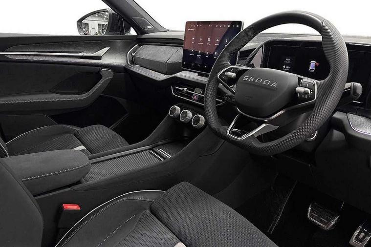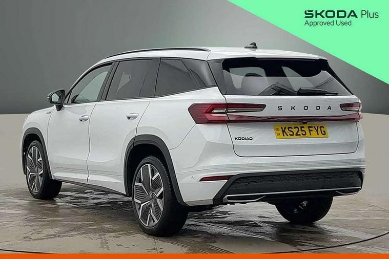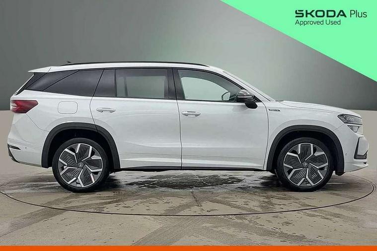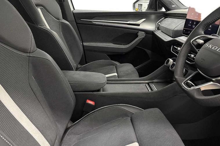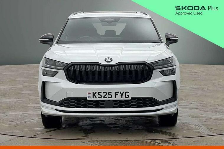 13" satellite navigation touchscreen display, Blind spot detection with door exit warning, Bluetooth system, ChatGPT functionality, Driver alert - Fatigue and drowsiness monitor, Dry display cleaner, Emergency call, Front and rear parking sensors, Front cross traffic assist, Lane assist, PAS, Rear traffic assist, Tailgate unlocking from outside, Traffic sign recognition, USB C Port x 2 in front centre console, Virtual Cockpit - 10.25" digital display, Voice control system, Wireless charging for two smartphones (15W) with cooling function, Wireless SmartLink for Apple CarPlay and Android Auto, Stop/start function, 2x USB-C in the rear, DAB Digital radio, Aero front windscreen wipers with intermittent function, Auto dimming rear view mirror, AWL (all weather lighting) and all weather light with cornering function, Black diffuser and decorative tailpipe with a unique dark chrome finish, Black roof rails, Black sports styling including front grille and window surrounds, Black wheel arch surrounds, Body colour door handles, Cornering light and poor weather light, Electric folding /adjustable/separted heated/folding door mirrors, auto dimming with boarding sports and memory function, Electric front and rear windows, Exterior black decorative trims, Front and rear sports bumpers including lower rear chrome strip, Gloss black door mirrors, Gloss black window frame and D pillar, Heat insulating glass in windshield, Heated rear window, Ice scraper in fuel tank cap, LED daytime running lights, LED third brake light in rear spoiler, Light assistant with automatic headlight control and coming home feature, Logo projection in door mirrors, Privacy glass, Rear roof spoiler, Rear side wing doors, Rear window wiper, Red decorative strip between rear LED lights, Safety reflectors on front and rear doors, Sportline badge on front fenders, Tailgate lettering in Black, Unique dark chrome design logo on alloy wheels, Window control switches with black trim, Windscreen wipers with rain sensor, Without engine designation, 1.5l bottle holder points in all door, 1x centre rear reading light, 2 seat bench in 3rd row, 3 configurable smart dials with 32mm coloured display, 3 seat bench in 2nd row, 4 foldable roof handles with rear coat hooks, Aluminium pedals, Ambient interior lighting - Dashboard, front-door stowage compartments, front and rear door panels and footwell lighting, Automatic gear selector on steering column, Chrome interior door handles, Driver/front passenger reading lights, Fabric headlining, Fixed bench 40:60:40 split folding backrests, Front and rear floor mats, Front centre armrest with jumbo box storage compartment, cup holder and 12V socket, Front sport seats, Height adjustable front headrests, Interior black decorative trims, Isofix child seat fittings in outer middle row rear seats and front passenger with top tether, Manually adjustable steering column, Pollen filter, Rear centre armrest with cupholders, Rear seat boot backrest release, Single front passenger seat, Skoda lettering on steering wheel, Storage pocket including mobile phone pockets on the backs of the front seats, Sunvisors with illuminated vanity mirrors, Three rear height adjustable headrests, Ticket holder on A Pillar, Tri zone climate control, Umbrella in door panel x1 made from sustainable materials, Upper and lower glovebox with card holder and coin compartment, USB C port by rear view mirror for charging only (15W), Acoustic package - Kodiaq, Performance package - Kodiaq, Sportline design selection pack - Kodiaq, Auto door release and activation of warning lights in the event of an accident, Driver and front passenger airbag with knee airbag and front passenger airbag deactivation, Electric child locks, Electronic parking brake, ESC (incl. ABS+EMD+MSR+ASR+EDL+HBA+DSR+RBS+ESBS+MCB+TSA+XDS), Front assist with braking reaction to vehicles, pedestrians and cyclists, Front disc brakes, Fuel cut off safety device, Height adjustable front 3 point seatbelts + pretensioners, Hill hold assist, Junction assist with automatic emergency braking, Rear disc brakes, Safety vest holder in door, Seat belt reminder for all seats, Three point rear seat belts, Two tone horn, Tyre pressure monitor, Alarm with interior monitoring and tilt sensor with safe function, Anti-theft wheel bolts, Immobiliser, Remote central locking with 2 keys, 20" Rila anthacite polished alloy wheel with black matte aero covers,