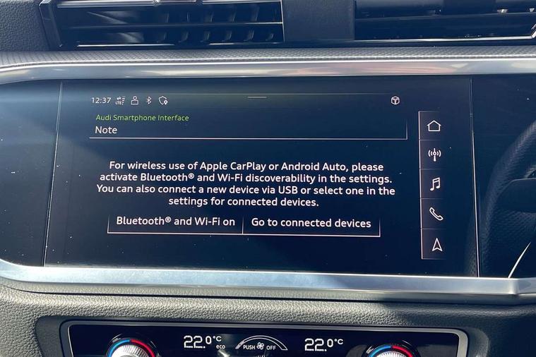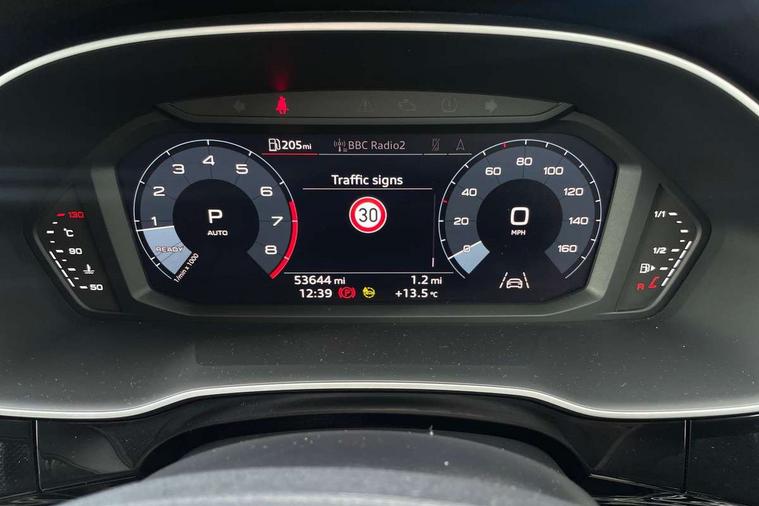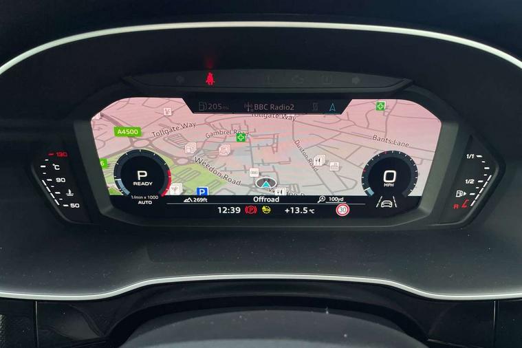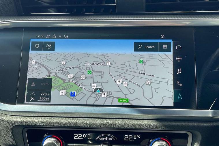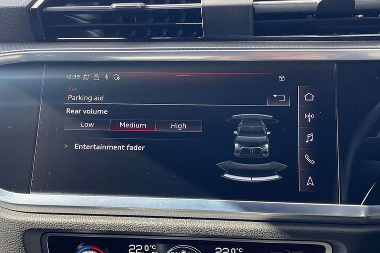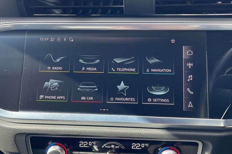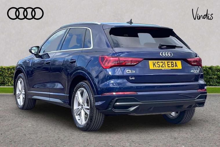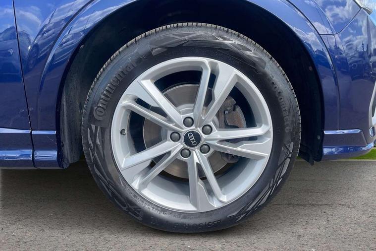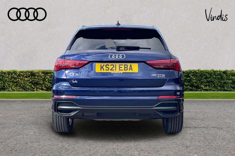 Amazon alexa Integration, Audi connect safety and service (e-call), Audi drive select, Audi lane departure warning, Audi Virtual Cockpit - 10.25" display, Bluetooth interface, Camera based traffic sign recognition, MMI Navigation Plus with high resolution 10.1 inch touchscreen colour display, Power operated tailgate, Progressive steering, Service interval indicator, Smartphone interface includes wireless Apple carplay/Android Auto, Start stop system with recuperation, Voice control system with natural language interaction, Sports suspension, 2 USB-C ports with charge and data functions, 6 passive loudspeakers, DAB digital radio module, Acoustic windscreen, Aluminium roof rails, Aluminium window trim, Auto dimming frameless rear view mirror, Body coloured bumpers, Electrically folding, adjustable and heated door mirrors with integrated LED side indicators and kerb view function for passenger side, Front and rear electric windows, Front fog lights, Front side air inlets in matt platinum grey, Front spoiler blade in matt platinum grey, Grille vertical bars in aluminium silver/Matt, High gloss black finish B and C pillars, LED headlights with LED daytime running lights and dynamic rear indicator, LED rear lights, Privacy glass dark tinted rear and rear-side windows (from B-pillar backwards), Rain and light sensors, Rear diffuser strip in matt titanium black, S line badges on front wings, S Line front and rear bumpers, Side skirt insert in matt Platinium grey, Silver chrome grille surround, Titanium black radiator grille, 12V socket in rear centre console, 40:20:40 folding with manual adjustment for 60:40 forwards/backwards position and backrest angle, Adjustable rear seat bench/backrest with centre armrest and cupholder, Black cloth headlining, Dual zone electronic climate control, Front and rear black floor mats with contrast stitching in rock grey, Front and rear headrests, Front and rear roof module including reading lights, Front centre armrest, Glove compartment lighting, Height and reach adjustable steering wheel, Illuminated door sill trims with S logo, ISOFIX child seat mounting for front passenger with airbag deactivation and outer rear seat including top tether attachment point for outer rear seats, Luggage compartment light, Manual front seats with height adjustment, Perforated leather gearknob, Stainless steel luggage compartment sill finisher, Stainless steel pedals, Non smoking pack - Q3, 3x3 point rear seatbelts, 6 airbags - Driver, front passenger, curtain and side windows, Audi pre-sense front with pedestrain and cyclist recognition, Electrically operated child locks on rear doors, Electromechanical parking brake, Electronic stabilisation control including ABS, ASR and EDL, Hill descent control, Hill hold assist, Pre sense basic, Seatbelt monitoring, Tyre pressure warning, Warning triangle and first aid kit, Anti theft alarm, Anti theft wheel bolts, Remote central locking, Dark matt brushed aluminium inlay, Detail dashboard around MMI touch colour display in glass look, black with surround in aluminium look, Leatherette door armrest,