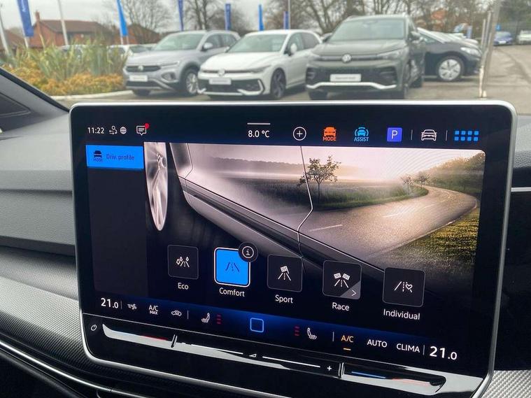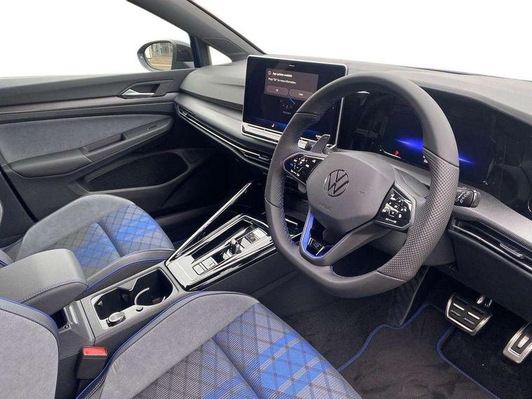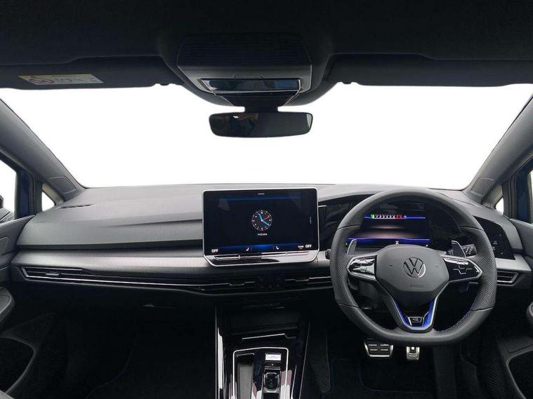 Activated carbon canister, Adaptive cruise control (ACC), Advanced driver attention and drowsiness monitor, Dynamic road sign display, E-Sim card for online connectivity, eCall emergency call system, Electronic maximum speed limit increased to 270 km/h, includes driving Modes 'drift' and 'special', larger roof spolier and GPS laptimer + G-Meter, Multi-color Digital cockpit pro, selection of different info profile possible, Multifunction front facing camera for distance control, Navigation system, Oncoming vehicle braking when turning including swerve support, Progressive steering, Side assist blind spot lane change system, rear traffic alert and exit warning system, Speed limiter, Speedo, rev counter, electronic odometer, trip, service interval display, exterior temperature and fuel gauge, Traffic jam assist, Voice enhancer and voice control, Warning signal and warning light for front and rear seatbelts not fastened, We connect plus preparation, We connect preparation, Wireless app connect, All wheel drive - 4Motion, Petrol Particulate Filter, Start-stop system with battery regeneration (recuperation - energy recovery during braking), XDS electronic differential lock for improved traction and handling, 2 USB C ports in front, 2 USB charging sockets on the centre console in the rear charging capacity upto 45W, Digital radio reception (DAB), Diversity antenna for FM reception, Gaming platform via car app, Infotainment system with 12.9" display, Mobile phone interface with inductive charging feature, 3rd brake light, Auto dimming rear view mirror, Automatic headlamp activation with Coming home and Leaving home feature, Black badge on B-pillar, Black mirror caps, Black strips on radiator grille and headlights, Body colour door handles, Darkened headlights, Darkened R Logos and VW logos in front, rear and on fender, Exterior mirrors convex on the left and aspherical on the right, Front and rear electric windows, Front fog lamps and cornering light, Heat insulating windshield made of laminated glass, Illuminated lighting animation with wake up/goodbye scenario, LED matrix headlights with ambient light V2, advanced high beam, dynamic range contol with cornering, LED rear lamp with indicator, poor weather, LED separate daytime running light, Light assist with High beam control, R name plate, Rain sensor, Rear fog light on one side and reversing lights on both sides, Rear side wing doors, Rear tinted glass 65% light absorbing from B pillar backwards, Rear windscreen washer and wiper with interval delay, Remote electrically foldable door mirrors, puddle lights and reverse activated passenger's door mirror, Welcome light with surround lighting, 12V socket in front centre console, 12V socket in luggage compartment, 3 rear head restraints, 3 seat bench in 2nd row, 30 colour ambient lighting, illuminated center console storage compartment in front, Air care climatronic 3 Zone automatic climate control with rear air conditioning control panel, Aluminium gearshift handle, Brushed stainless steel pedals, Chrome plated radiator grille inserts, air vent surrounds and light switch surrounds, Entry lights, Front + rear black carpet mats, Front centre armrest, Integrated front head restraints, ISOFIX anchors for child seats on outer rear bench seats and on front passanger seat compatible for i-Size, Luggage compartment lighting, Rear cupholder and loadthough, Single front passenger seat, Soul black instrument panel, Soul black roof lining, Split folding backrest with centre armrest and unsplit rear seat bench, Sun visors with illuminated vanity mirrors, Driver assistance pack - Golf Estate/Hatchback Auto, R styling pack - Golf, Technology park and comfort pro package - Golf Hatchback, 3 point height adj front seatbelts + pretensioners, 3 rear three point seatbelts, ABS, Autonomous emergency braking front assist with pedestrian and cyclist monitoring, Child locks on rear doors, Driver and front passenger airbag with front passenger airbag deactivation, Electronic parking brake with auto hold, ESC (Electronic Stability Control), Extended pedestrian protection measures, Front and rear black brake calipers with darkened R-logo, Hill start assist, Rear disc brakes, Two tone horn, Tyre pressure loss indicator, Volkswagen roadside assistance, Anti theft wheel bolts, Preparation for alcohol interlock, Sporty vehicle dynamics, Tool kit for tyre mobility set, Tyre mobility kit Includes 12V compressor and tyre sealant, Wheel hub cover with darkened R-logo,