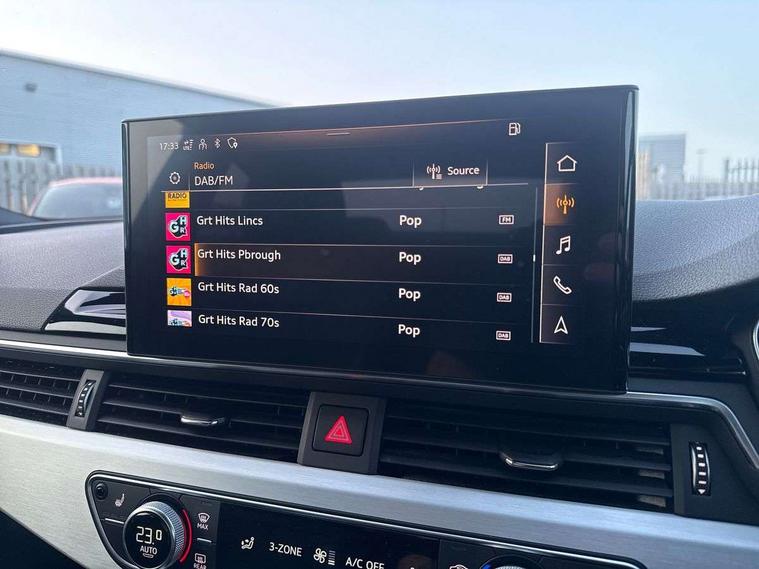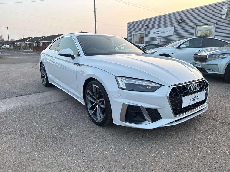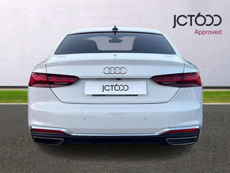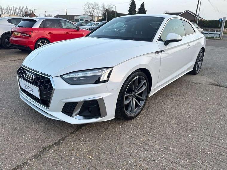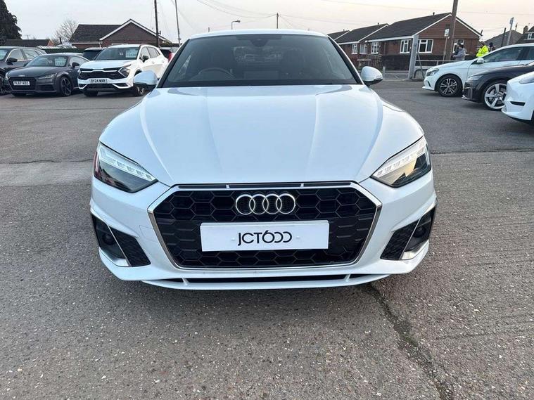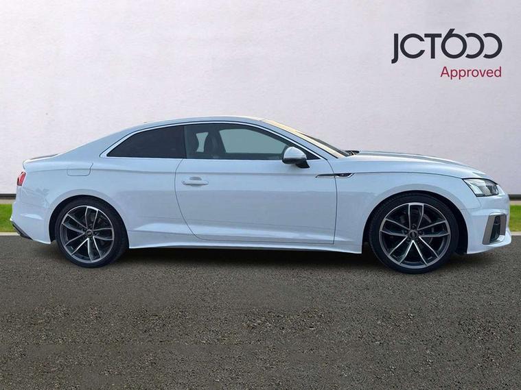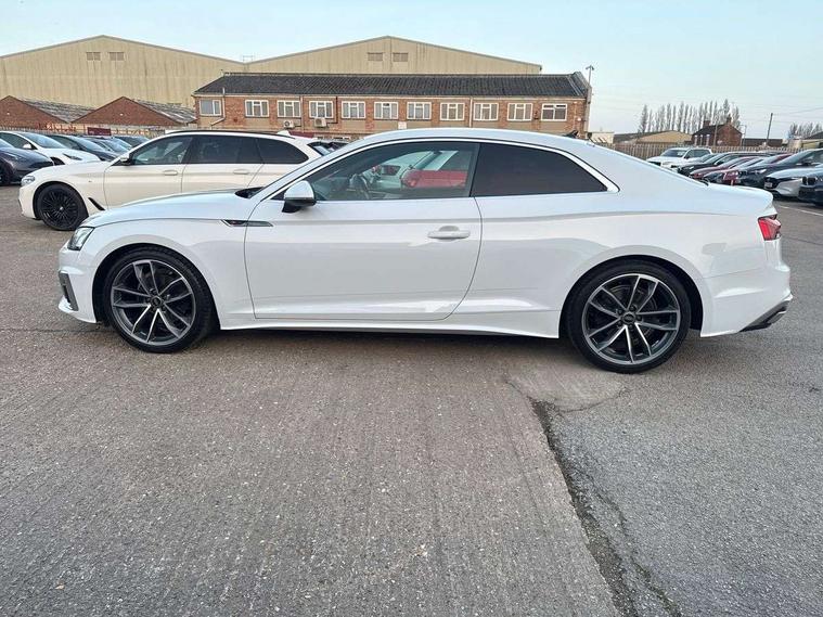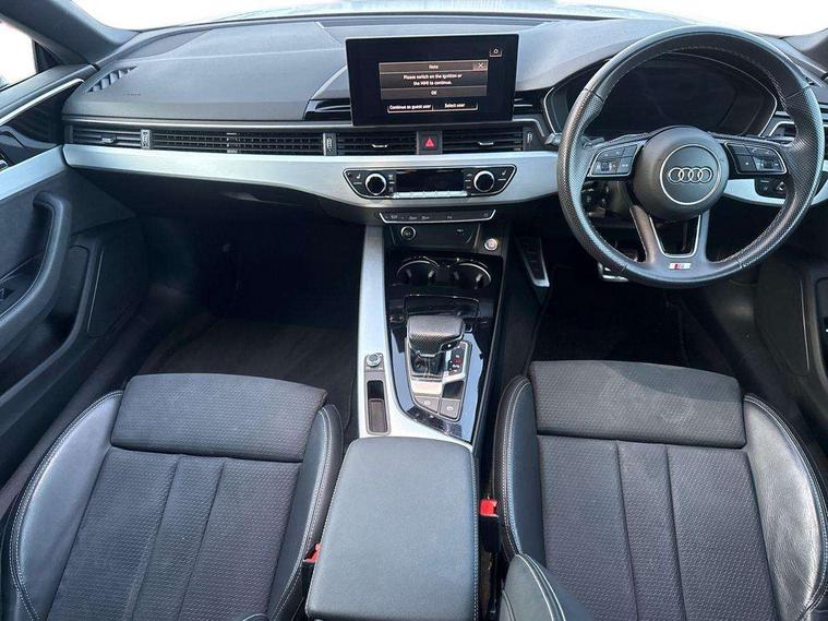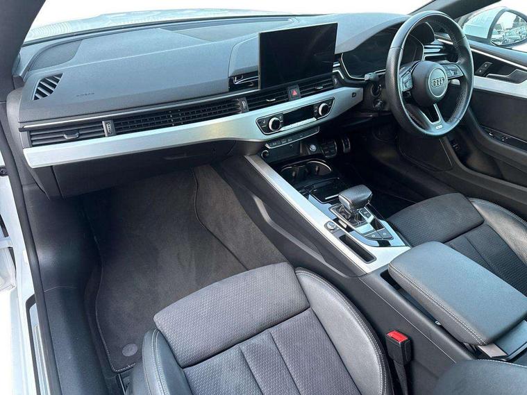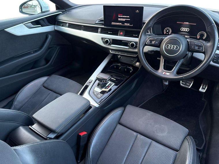 Audi connect safety and service (e-call), Audi connect with Amazon Alexa Integration, Audi drive select (Auto, Comfort, Dynamic, Efficiency and Individual), Audi parking system plus with front and rear sensors, Audi smartphone interface, Audi virtual cockpit - 12.3" full colour digital instrument cluster, vehicle/engine speed, 3D navi map, Radio/media information+Driver assistance systems, Automatic start-stop system with coasting functionality and efficiency programme, Bluetooth interface, Electric boot lid release, Electro-mechanical power steering, Email, calendar and text messages displayed via MMI, MMI nav+ with MMI touch - 10.1" high resolution MMI display, touch sensitive, 3D map, route/country info, dynamic route guide, personal route assist, Rear view camera, Service interval indicator, Voice control system, Diesel particulate filter, Sports suspension lowered by 23mm, 8 passive loudspeakers, CD player, DAB digital radio reception, Two additional USB ports for rear passenger in rear centre console, Two SDXC card slots, Audi matrix LED headlights with LED rear lights + dynamic front and rear indicators, Auto dimming rear view mirror, Body colour bumpers, Body colour door handles, Body colour front spoiler lip, Body colour side sill trim, Body coloured door mirrors, Electric adjustable heated door mirrors, Electric folding door mirrors, Electric front windows, Front fog lights, Honeycomb structure radiator grille in grained matt black, LED daytime running lights, LED third brake light, Matt aluminium silver tailpipe trim, Privacy glass, Rain and light sensors, Rear side wing doors, S line badges on front wings, S line front and rear bumpers with side skirts, S Line rear diffuser in matt titanium black with trim strip in matt aluminium silver, Side air inlets in grained matt black with matt aluminium silver inlay, Variable front intermittent wipers, Windscreen with acoustic glazing, 4 way electric lumbar support for driver and front passenger, 40/20/40 split folding 2 seater rear seat bench with rear centre armrest, Adjustable steering column, Black cloth headlining, Black perforated leather gearknob, Contrast stitching on seats, steering wheel and gear lever gaiter, Deluxe 3 zone electronic climate control, Front centre armrest, Front head restraints, Front/rear floor mats, Heated front seats, Illuminated door sill trim with S logo, ISOFIX child seat mounting and top tether, Luggage compartment mat, Manual seat adjustment, Rear headrests, Single front passenger seat, Stainless steel pedals, Sunvisors with vanity mirrors, Tool kit, LED interior light pack - A5/RS5, 2 x 3-point rear seat belts, 6 airbags - Driver, front passenger, curtain and side airbags, Electromechanical parking brake, Electronic Stabilisation Control (ESC) including ABS, ASR and EDL, Front passenger airbag deactivation, Height adjustable front seatbelts, Hill hold assist, Multi collision brake assist, Pop-up bonnet for pedestrian protection, Pre sense city, Seatbelt monitoring, Tyre pressure warning, Variable restraint system, Warning triangle and first aid kit, Anti theft alarm system, Anti theft wheel bolts, Immobiliser, Keyless Go, Remote central locking, Matt brushed aluminium inlays, Tyre repair kit,