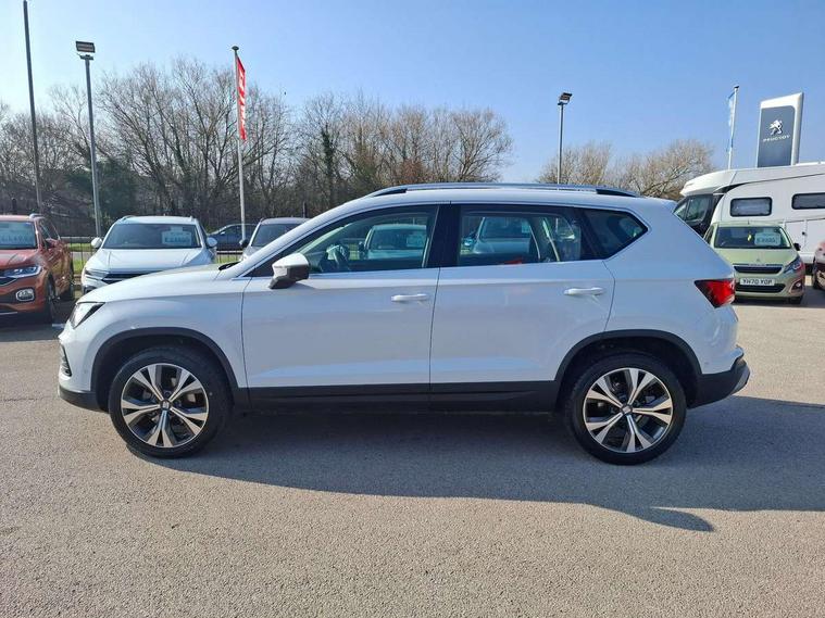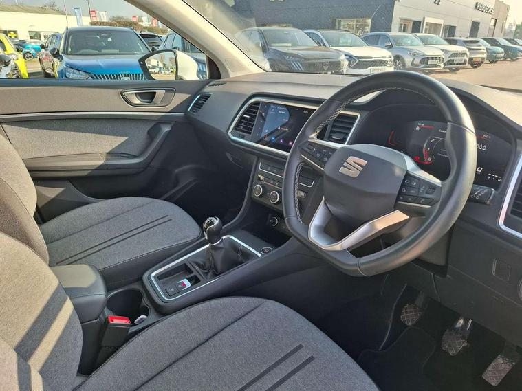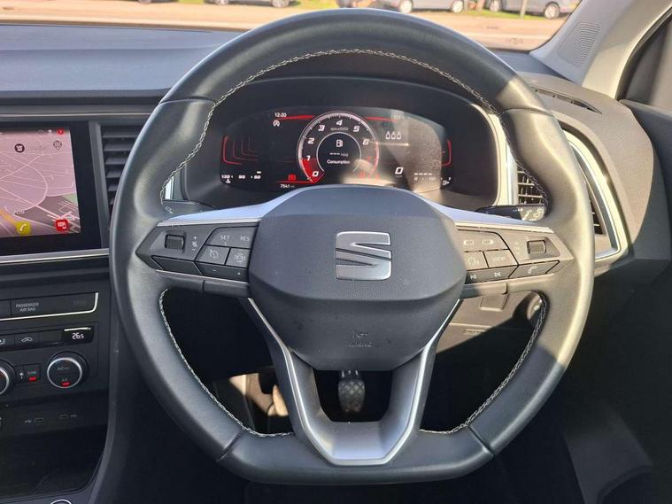 8" Digital cockpit, Colour multi-function on board computer display, Cruise control system with speed limiter, E-call, Outside temperature gauge, PAS, Self parking functionality (includes front and rear parking sensors), Start/stop system, Tailgate, Trip computer, Wireless full link smartphone integration, Wireless phone charger, Steering wheel mounted audio/phone controls, Black wheel arch surrounds, Body colour bumpers, Chrome front grille frame, Chrome roof rails, Chrome side window trim, Daytime running lights, Door mirrors with welcome light silhouette, Dynamic headlight range control with self adjusting whilst driving, Electric adjustable/heated/folding door mirrors, Front and rear electric windows, Full LED headlamps with lens and LED front fog lamps with cornering function, LED rear tail lights with dynamic indicators, Rear fog lights, Rear side wing doors, Rear wash/wipe, Simulated exhaust pipes, Third brake light, Variable front intermittent wipers, 12V socket in front, 3 seat bench in 2nd row, 60/40 split folding rear seat, Cloth upholstery with front comfort seats, Drawer under right front seat, Dual zone climate control, Front and rear head restraints, Front centre armrest, Front seat back storage pockets, Height adjustable driver and passenger seat with lumbar adjustment, ISOFIX points in outer rear seats with top tether anchorage points, Leather steering wheel and gear knob, Rear armrest and easy back seat release mechanism from boot, Single front passenger seat, Interior lighting pack - Ateca, Navigation system pack with DAB - Ateca, 3x3 point rear seatbelts, ABS, Traction control system (TCS), Electronic stability control (ESC) and Electronic differential lock system (XDS), Airbags - Driver and front passenger airbag with deactivation, front side, two curtain and driver's knee airbags, Electric parking brake with auto hold function, Front and rear seatbelt reminder, Front assist with autonomous emergency braking, Hill hold control, Manual rear child locks, Single tone horn, Tiredness recognition system, Traction control, Tyre pressure monitoring system, Alarm, Keyless entry, Locking wheel bolts, Remote central locking, Chrome interior detailing, 18" Performance machined alloy wheels 36/2 in nuclear grey,