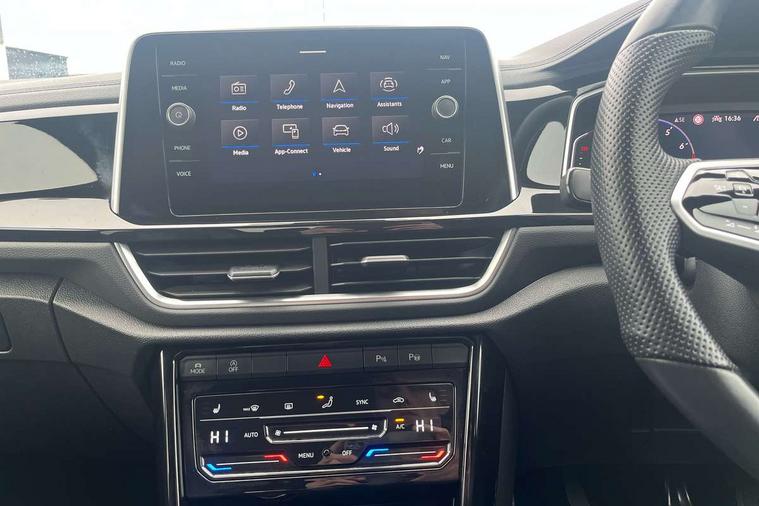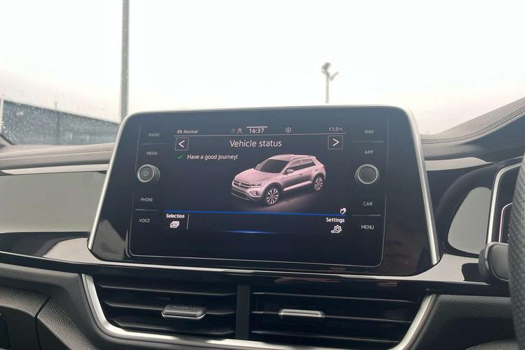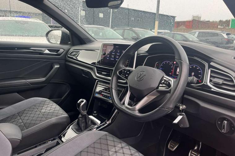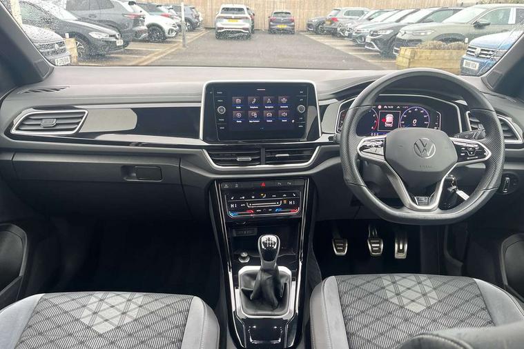 10.25" Digital cockpit pro, Bluetooth mobile phone interface, Driver alert system with fatigue detection, Driver tips and journey analysis, Emergency call service, Lane keeping system Lane Assist, Modified key software - reduce switch off time for key status change to Long no motion, Online services, Park assist including front and rear parking sensors, Service interval indicator, Tailgate/trunk lid release from outside, Think blue trainer driver tips and journey analysis, Warning sound and light for front seatbelts unfastened, Wireless app connect, Battery regeneration during braking, Start/stop function with battery regeneration, Diversity antenna for FM reception, Front and rear 6 speakers, Music playback - MP3, WMA and AAC files, Premium USB cable in choice of either Apple or Android smartphone compatibility, SD card slot, Simultaneous pairing of 2 compatible mobile devices, Title and cover art display, We Connect and We Connect Plus functionality, 3rd brake light, Auto dimming interior rear view mirror, Automatic hazard lights activation under emergency braking, Automatic headlight control with LED separate daytime running lights with coming/leaving home function, Extended roof spoiler, Exterior mirrors aspherical on driver side, convex on front passenger side, External USB type C socket and charging sockets, Front windscreen wiper with intermittent wipe and 4 position delay, Heated rear window, LED Plus headlamps, LED rear combination lamps, LED rear number plate lights, LED tail lamp rear comination lamps, Power windows with comfort operation and circuit breaker, R-Line design body coloured bumpers, Rain sensor, Rear exhaust tailpipe, Rear fog light on one side and reversing lights on both sides, Rear side wing doors, Rear wash/wipe with intermittent wipe setting, Remote electrically foldable door mirrors, puddle lights and reverse activated passenger's door mirror, 12V power socket in centre console, 3 rear head restraints, 3 seat bench in 2nd row, 4 load lashing points in luggage compartment, Air care climatronic air conditoning system with active combination filter and 2-zone temperature control, Black roof lining, Chrome plated radiator grille inserts, air vent surrounds and light switch surrounds, Door and side trim panel with leatherette insert, Drawer under drivers seat, Front + rear carpet mats, Front centre armrest, Front cupholders x 2, Front footwell illumination, Front reading light, Front scuff plates with R logo, Instrument lighting, white adjustable panel illumination, Interior ambient lighting and surround lighting, Interior light delay, Isofix child seat preparation, Leather gearshift handle, Load-through provision with cup holder when folded down ('Unsplit rear seat bench, split folding backrest, with centre armrest), Luggage compartment lighting, Single front passenger seat, Stainless steel pedals, Storage compartment in left and right luggage area, Storage compartment in rear doors, Storage compartments in driver and front passenger doors, Sunvisors with illuminated vanity mirrors, Variable boot floor, height adjustable and removable, Driver assistance pack without proactive passenger protection - T-Roc, 3 point height adj front seatbelts + pretensioners, 3 point seatbelts in outer rear with ECE label, ABS, Child locks on rear doors, Driver and front passenger airbag with front passenger airbag deactivation, Driver and front passenger safety-optimised head restraints, Drivers seatbelt reminder, Electronic parking brake, Electronic Stability Control (ESC) inc EDL (Electronic Differential Lock) and ASR (Traction Control), Front and rear passengers curtain airbag system including front side airbags, Front assist with city emergency braking and pedestrian monitoring, Front seat side impact airbags, Hill start assist, Predictive pedestrian protection, Rear disc brakes, Single tone horn, Tyre pressure loss indicator, Volkswagen roadside assistance, Alarm with interior protection, Anti-theft alarm system with interior monitoring, backup horn, and towing protection, Remote central locking with SAFELOCK, radio remote control with 2 remote control folding keys, Trims for alloy wheels,