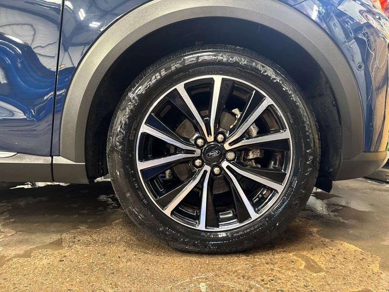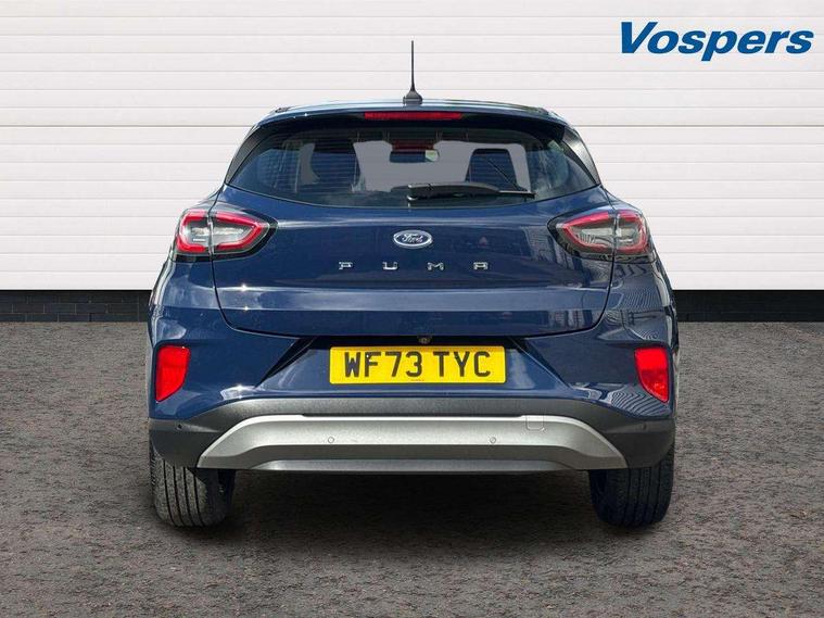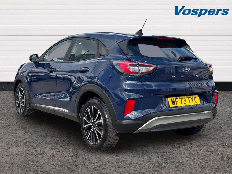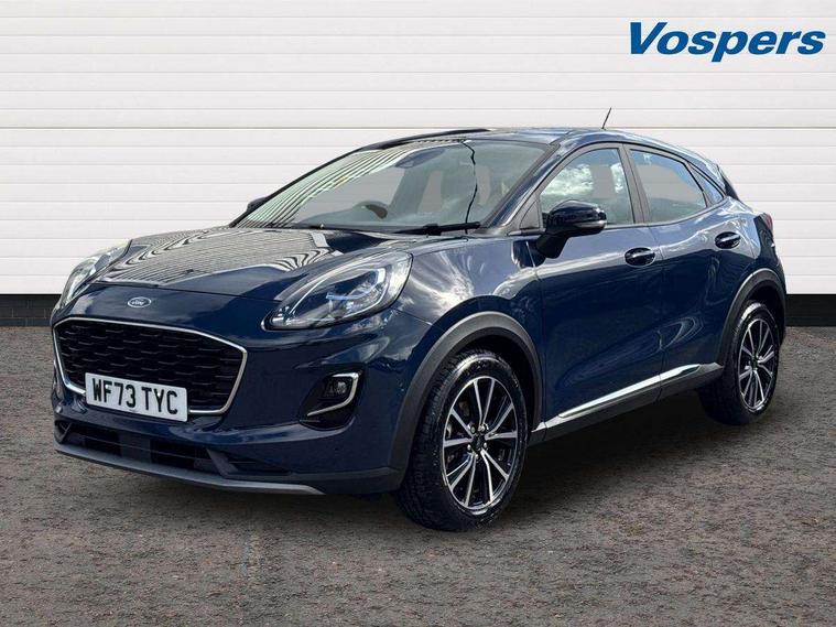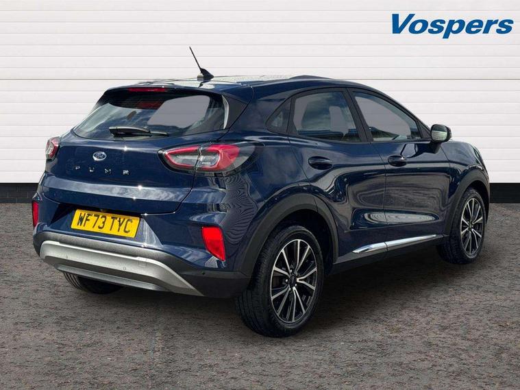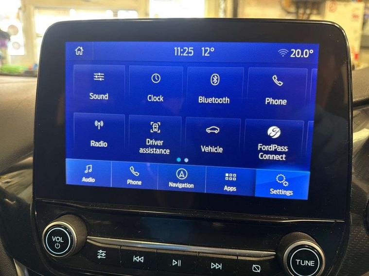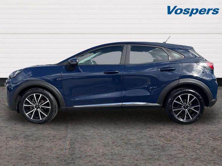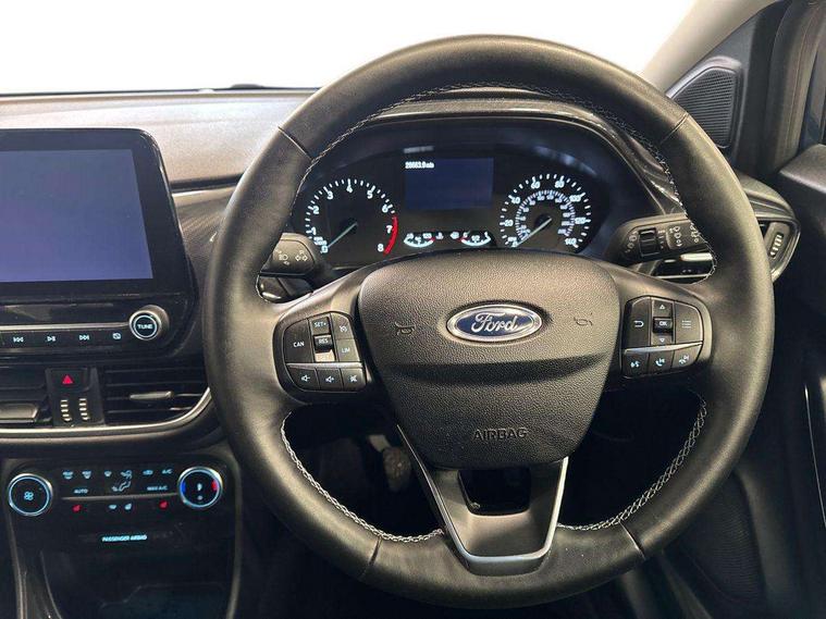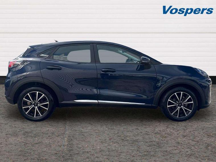 Driver impairment monitor, Emergency call service, Ford easy fuel, Lane keeping aid with lane departure warning, Power assist steering, Power start button, Rear parking sensor, Selectable drive modes(Normal, Eco, Sport, Slippery and Trail), Speed sign recognition, Standard suspension, Automatic headlights with auto high beam, Automatic rain sensing wipers, Body colour rear spoiler, LED rear lamps, Power foldable heated door mirrors with puddle lamps, Projector headlamps with LED day time running lights and front fog lamps, Quickclear heated windscreen, Rear side wing doors, Rear wiper, Third brake light, 3 seat bench in 2nd row, Centre console with armrest and stowage, Electronic automatic temperature control (EATC), Ford megabox extended bootspace, Front and rear head restraints, Front floor mats, Manual 2 way passenger seat adjustment, Manual 4 way driver seat adjust with lumbar adjustment, Sensico leather steering wheel/gear knob/handbrake, Single front passenger seat, Titanium cloth upholstery, Ford SYNC 3 navigation pack - Puma, 3 rear seatbelts, Child safety lock, Electronic stability control (ESC) and hill start assist, Pedestrian/cyclist detection & post-collision braking, Pre collision assist system, Tyre pressure monitoring system (TPMS), Thatcham alarm, 17" 10 spoke absolute black machined finish alloy wheel,