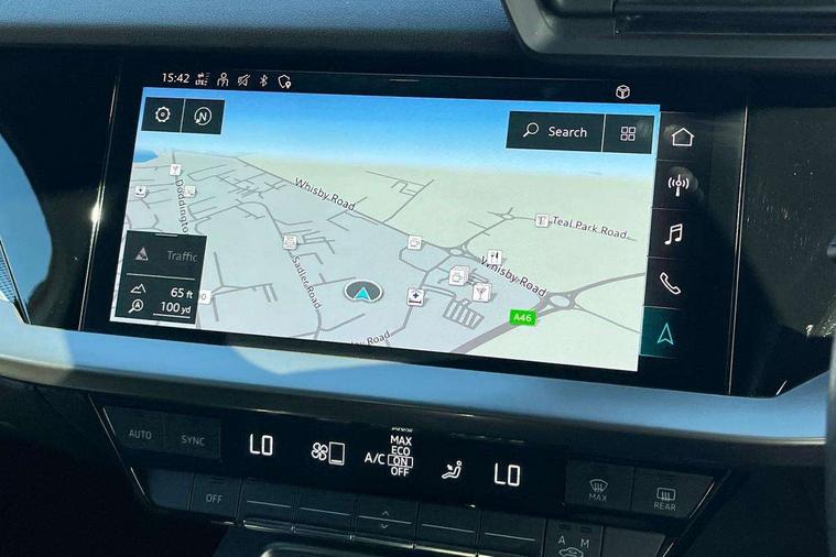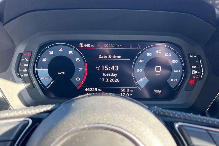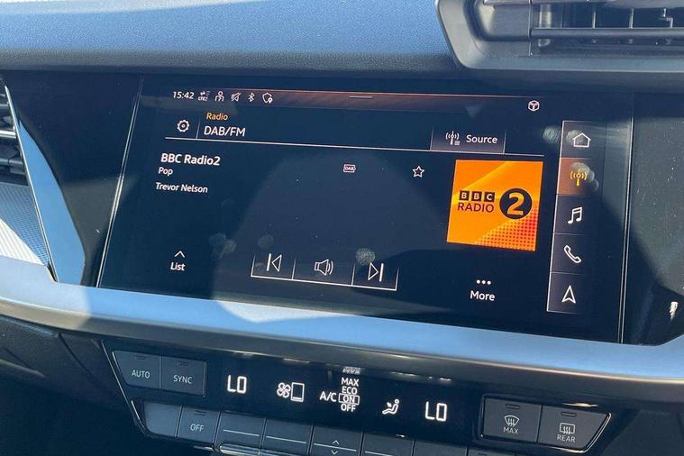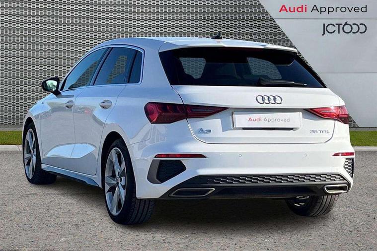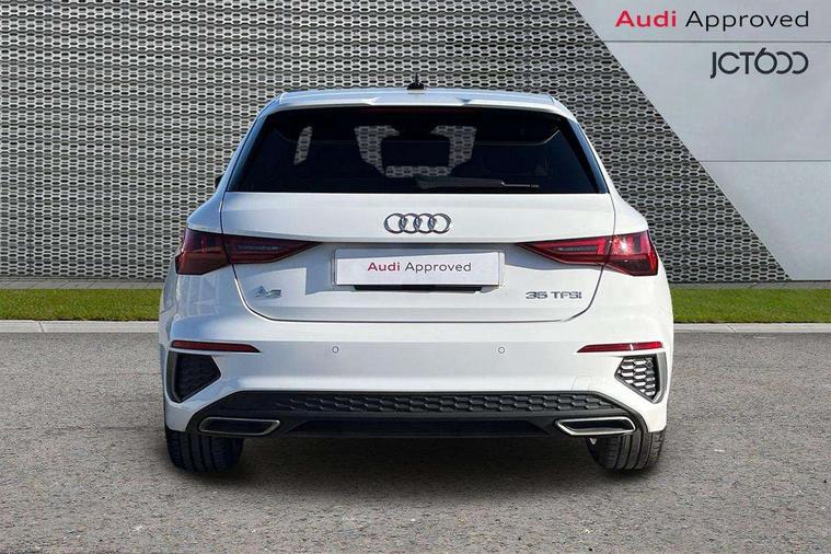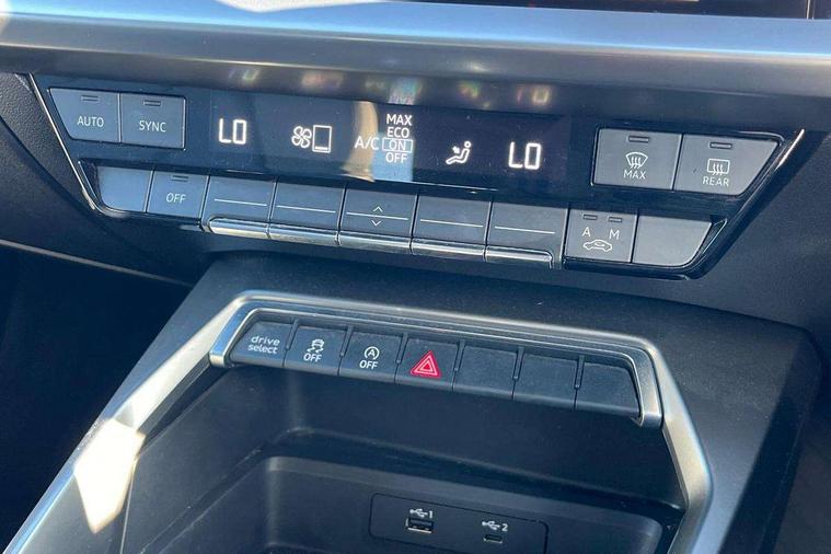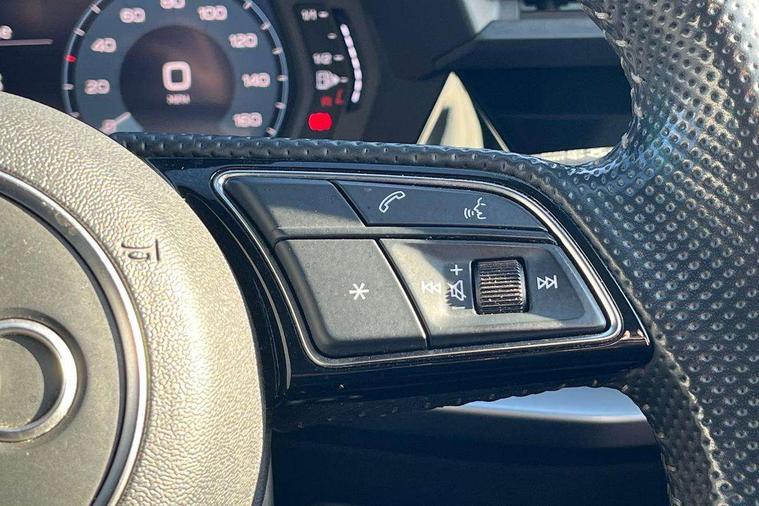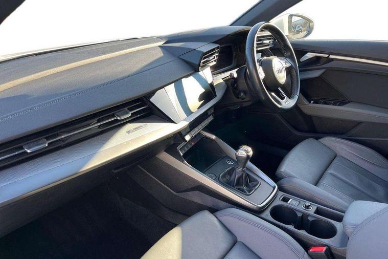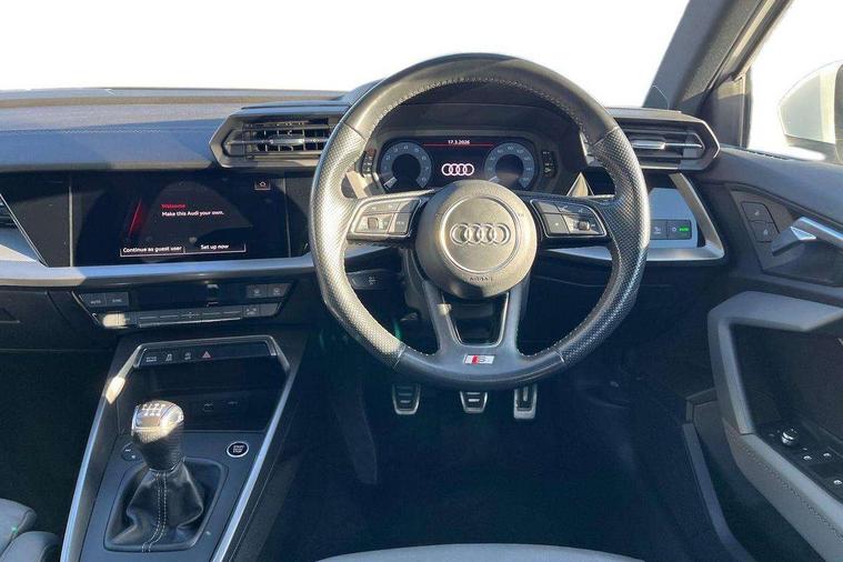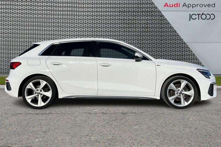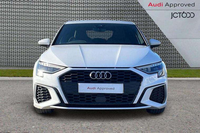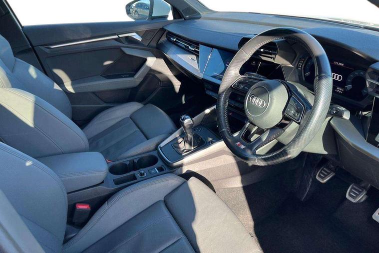 Audi connect emergency call and service, Audi drive select (Auto, Comfort, Dynamic, Efficiency and Individual), Audi smartphone interface, Audi Virtual Cockpit - 10.25" digital and colour instrument cluster, Automatic start/stop system with recuperation, Bluetooth interface, Collision avoidance assistant, Cruise control, Electromechanical power speed sensitive steering, Lane departure warning system, MMI Navigation Plus with high resolution 10.1" colour touch screen display, Rear parking sensors, Service indicator, Trip computer, Voice control system with natural language interaction, 1xUSB-A and 1xUSB-C connection, 6 passive loudspeakers, DAB Digital radio, Acoustic glass windscreen, Aluminium window trim, Auto dimming frameless rear view mirror, Body colour exterior mirrors, Electrically adjustable/heated/folding/auto dimming door mirrors with integrated LED indications + kerb view function for passenger side, Front electric windows, Illuminated aluminium inserts front door sills with S logo, LED daytime running lights, Light and rain sensors, Privacy glass - dark tinted rear window, rear door and side windows, Rear electric windows, Rear side air outlets in grained matt black, Rear wiper, S line bumpers, S roof spoiler, 12V socket and storage compartment in front centre console, 40/20/40 split folding rear seat bench with cupholder, Black cloth headlining, Dual zone electronic climate control, Front and rear centre armrest in leather, Front and rear headrests, Front/rear floor mats, Height and reach adjustable steering wheel, Interior lighting - glove compartment light and right hand side, Luggage compartment floor covering, Manual boot compartment lid, Manually adjustable front seats, Seat side bolsters, Stainless steel pedals and front footrest, Twin leather upholstery with front sports seats S embossed logo, Aluminium interior elements pack - A3 Sportback, S line styling pack - A3 Sportback, 3x3 point rear seat belts, Driver and front passenger airbag with passenger airbag deactivation, Electronic Stabilisation Control (ESC) including ABS, ASR and EDL, First aid kit with warning triangle and 2 safety vests, Hill hold assist, Pre-sense front with pedestrian and cyclist detection, Seatbelt monitoring, Tyre pressure loss indicator, Anti theft alarm, Anti-theft wheel bolts, Electronically operated child lock, Immobiliser, Remote control central locking, Accent surfaces in the dashboard and centre console in platinum grey silk effect paint finish, Dark spectrum aluminium inlays,