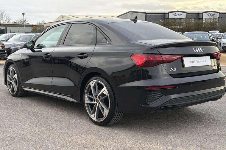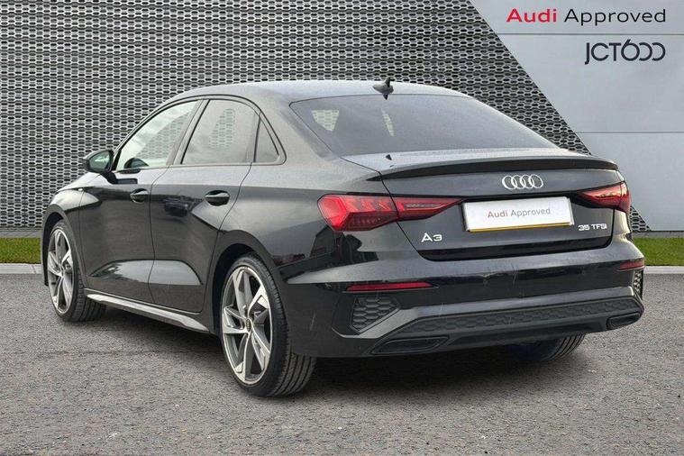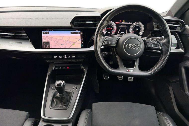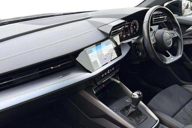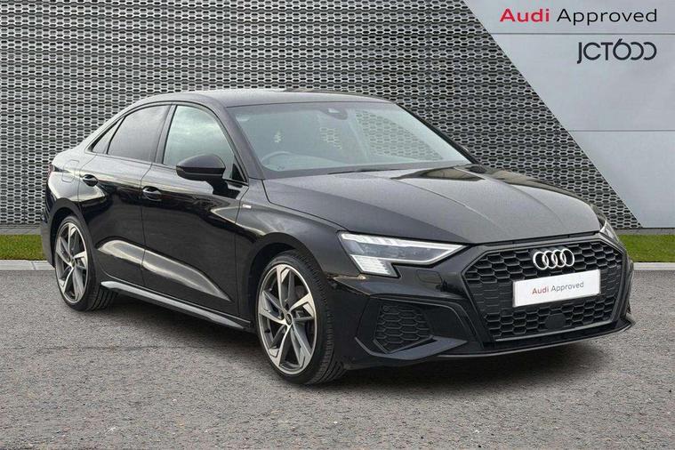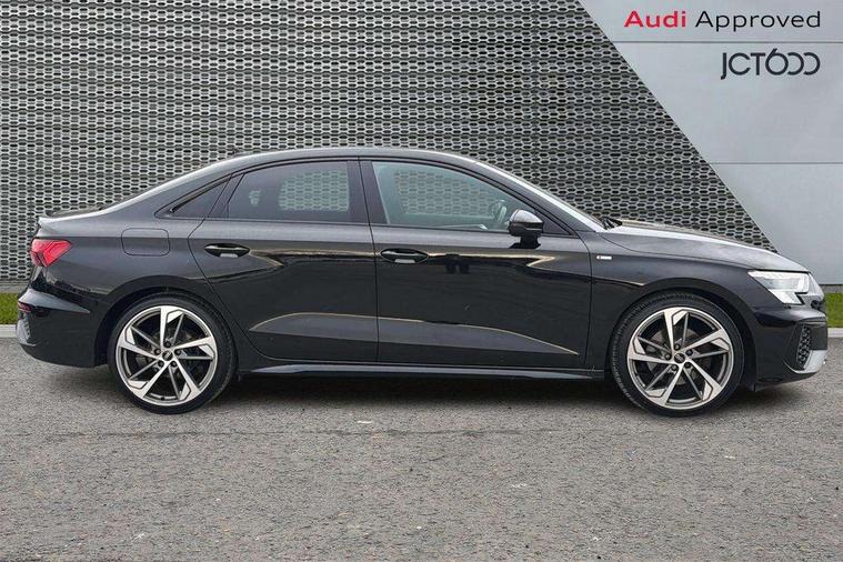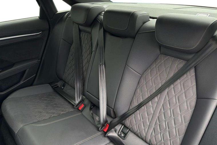 Audi connect emergency call and service, Audi drive select (Auto, Comfort, Dynamic, Efficiency and Individual), Audi smartphone interface, Audi virtual cockpit plus - 12.3" dynamic digital instrument cluster, Automatic start/stop system with recuperation, Bluetooth interface, Collision avoidance assistant, Cruise control + speed limiter, Electromechanical power speed sensitive steering, Lane departure warning system, MMI Navigation Plus with high resolution 10.1" colour touch screen display, Rear parking sensors, Service indicator, Voice control system with natural language interaction, Sports suspension, 2x USB Type C ports (for charging and data transfer), 6 passive loudspeakers, CD player, DAB Digital radio, 3rd brake light, Acoustic glass windscreen, Audi matrix LED headlights, LED rear lights, dynamic front and rear indicators and headlight cleaning system, Auto dimming frameless rear view mirror, Electrically adj heated/folding + automatically dimming exterior mirrors with memory + automatic kerb side function for passenger side exterior mirror, Front electric windows, Illuminated door sills with aluminium inserts at the front with S logo, Integrated LED indicators in door mirrors, LED daytime running lights, Light and rain sensors, Model and engine designation badges at rear, Privacy glass - dark tinted rear window, rear door and side windows, Rear boot, Rear electric windows, Rear side wing doors, S roof spoiler, 12V socket and storage compartment in front centre console, 3 seat bench in 2nd row, 3 spoke flat bottomed multifunction plus sports contour leather wrapped steering wheel, 4 way electrically adjustable lumbar support for driver and front passenger, 40/20/40 split folding rear seat bench with cupholder, Black cloth headlining, Dual zone electronic climate control, Electrically adjustable front seats with memory function for driver's side and exterior mirrors, Front and rear centre armrest in leather, Front and rear headrests, Front/rear floor mats, Heated front seats, Height and reach adjustable steering wheel, Illuminated vanity mirror, Interior lighting - glove compartment light and right hand side, Luggage compartment floor covering, Single front passenger seat, Stainless steel pedals and front footrest in black, Aluminium interior elements pack - A3 Saloon, Dinamica microfibre/mono.pur 550 artificial leather pack - A3 Saloon, Extended ambient lighting pack - A3/S3 Saloon, LED interior lighting pack - A3 Saloon, 3x3 point rear seat belts, Driver and front passenger airbag with passenger airbag deactivation, Electronic Stabilisation Control (ESC) including ABS, ASR and EDL, First aid kit with warning triangle and 2 safety vests, Front side airbags with head airbags and interaction airbag, Hill hold assist, Pre-sense front with pedestrian and cyclist detection, Seatbelt monitoring, Tyre pressure loss indicator, Anti theft alarm, Anti-theft wheel bolts, Electronically operated child locks, Immobiliser, Remote control central locking, Aluminium air vent surrounds, Aluminium trim elements, Dark spectrum aluminium inlays, accent surfaces in the dashboard and centre console in platinum grey silk effect paint finish, 19" 5 arm trapezoid design alloy wheels in titanium matt grey with diamond cut finish,