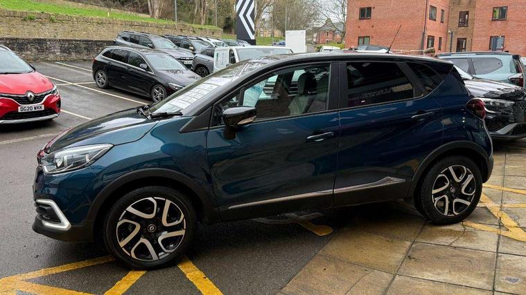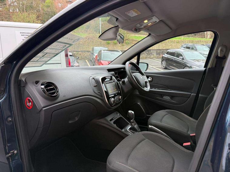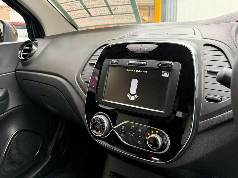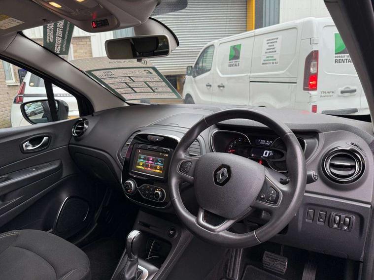 Cruise control + speed limiter, Eco mode, Rear parking sensor, Renault MediaNav with 7" touch screen and Navteq Nav 'n' Go Satellite Navigation, Smartphone cradle, Trip computer, Variable PAS, 4x20W radio with bluetooth hands free and USB, Auxiliary input socket, DAB Digital radio, Fingertip controls for audio system, Body colour door handles, Body coloured bumpers, Electric adjustable heated door mirrors, Electric front windows + one touch + anti-pinch, Electric rear windows, Extra tinted glass in rear windows and tailgate, Front skid plate, LED daytime running lights, LED front fog lights, Rain sensitive wipers + automatic lighting, Rear skid plate, Rear wiper, Variable intermittent front wash/wipe, 12V Accessory socket, 3 rear headrests, 60/40 split folding rear seat bench, Automatic climate control with one touch demist function, Centre console storage tray, Compartment in glovebox, Dark harmony dashboard and door panels, Fixed cloth upholstery, Front cupholder, Front seat backrest storage nets, Heating system with pollen filter, Height adjustable driver's seat, Height adjustable front headrests, Height/reach adjust steering wheel, ISOFIX on front passenger and rear outer seats, Leather steering wheel and gear knob, Removable storage between driver and passenger, Reversible boot floor, Storage area on top of dashboard, Storage compartments in doors, Storage space near handbrake, Variable boot floor, Exterior touch pack Chrome - Captur, Interior touch pack Chrome - Captur, 3 point seatbelts on all rear seats, ABS+EBA, Driver/Front Passenger airbags, ESC - Electronic Stability Control + traction control, Front passenger airbag deactivation, Front side airbags(head+thorax), Hill start assist, Rear door child safety locks, Seatbelt warning, Tyre pressure monitor, Automatic door locking, Deadlocking system, Hands free access with keycard and start button, RAID (Renault Anti-Intruder Device) with automatic door locking, Remote central locking, Thatcham Cat 2 engine immobiliser, 17" Explore alloy wheels with black inserts,