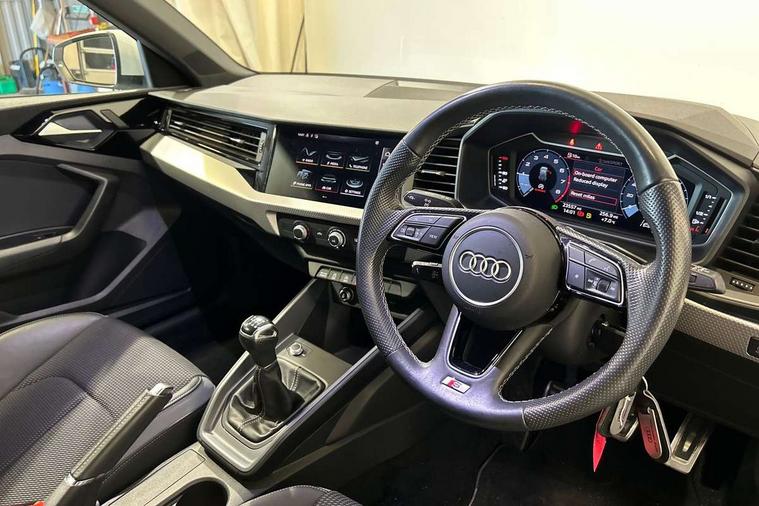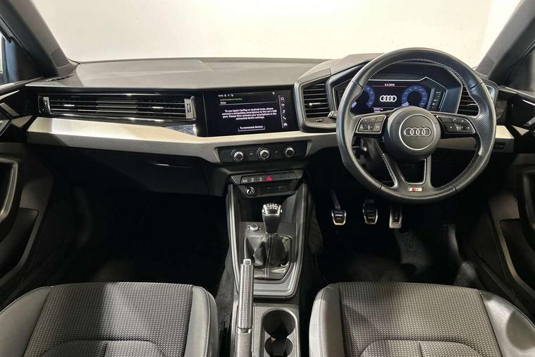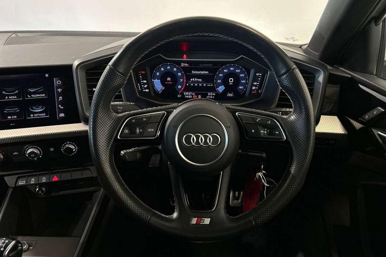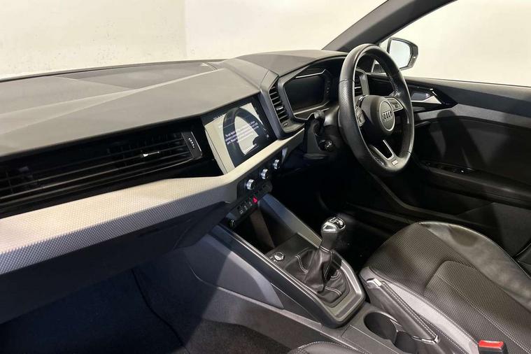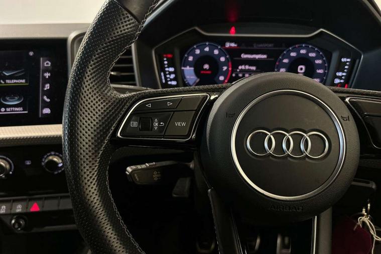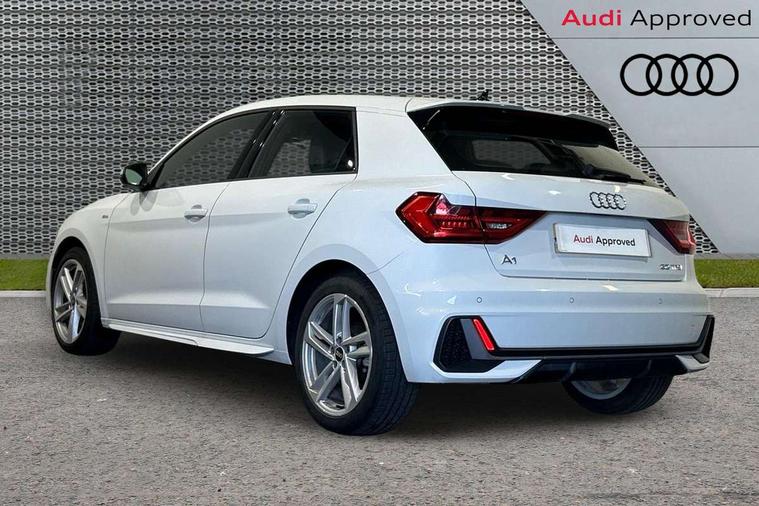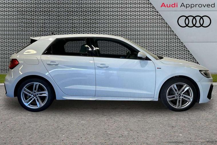 10.25" Digital instrument cluster display classis style instrument dials + speed, odometer, time, outside temperature, telephone menu + fuel level warning, Audi connect safety emergency and service including E-call, Audi drive select - power steering assistance + engine, Audi smartphone interface with connect compatible smartphone via USB directly MMI display + Nav, music, third party apps controlled via MMI controller, Automatic start/stop system, Bluetooth interface, Cruise control, Driver's information system, Electromechanical power steering, Lane departure warning system, Service interval indicator, Speed limiter, Voice control system, Washer fluid level indicator, Sports suspension, 1 x SDXC card reader, 2 x USB type C connection points, DAB Digital radio, MMI radio plus with 8.8" colour MMI display screen and MMI touch, Auto dimming rear view mirror, Body coloured door mirrors, Door sills with aluminium inlays and S Line logo, Electric front and rear windows, Electrically adjustable, heated, folding door mirrors with integrated LED side indicator, Front side air inlets in grained matt black and C frame in titanium black, Heat insulating glass windscreen and side windows, Heated rear windscreen, LED headlights with LED rear lights + dynamic rear indicators + headlight adjustment and high beam, turning light + LED daytime running lights, Radiator grille and rear diffuser in matt titanium black, Radiator protective grille frame in matt aluminium silver, Rain and light sensors, Rear fog lights, Rear wiper, S line badges on front wings, Side front spoiler lips in grained matt black, 12V socket in centre console with two cup holders, 3 rear seats with headrests, 40:60 Split folding rear seat or folded fully, Black cloth headlining, Driver and passenger seat with manual height adjust with forward and backwards adjustment, Front and rear black floor mats with contrast stitching in fine silver, Front head restraints, Height and reach adjustable steering wheel, ISOFIX child seat mounting for front passenger and outer rear seats including top tether attachment point of outer rear seats, Leather gear knob with aluminium trim, Luggage compartment light with front and rear reading lights, Manually adjustable lumbar support in front seats, Stainless steel pedals, LED interior lighting pack - A1, Luggage compartment pack - A1, S line exterior styling pack - A1 Sportback, 3x3 point rear seatbelts, Audi pre-sense front with pedestrain and cyclist recognition, Brake assist function, Driver and front passenger airbag with front side and head airbags, Electronic Stability Control including ABS, EBD, ASR and EDL, Front and rear seatbelt reminder, Front passenger airbag deactivation switch, Hill hold assist, Seatbelt height adjustment for front seats, Seatbelt monitoring, Tyre pressure warning light, Warning triangle and first aid kit, Anti theft alarm, Anti theft wheel bolts and loose wheel warning, Immobiliser, Remote central locking with 2 foldaway keys, Aluminium trim for control switches, air vents and digital instrument cluster, Silver grey inlays polygon structure in diamond paint finish, Structured grey accent areas including air vents, door handle recesses and centre console in quartz paint finish,