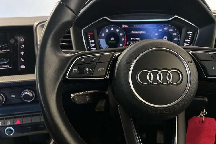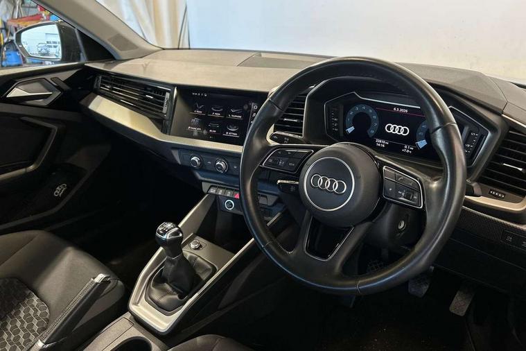 10.25" Digital instrument cluster display classis style instrument dials + speed, odometer, time, outside temperature, telephone menu + fuel level warning, Audi connect safety emergency and service including E-call, Audi drive select - power steering assistance + engine, Audi smartphone interface with connect compatible smartphone via USB directly MMI display + Nav, music, third party apps controlled via MMI controller, Automatic start/stop system, Bluetooth interface, Cruise control, Driver's information system, Electromechanical power steering, Emergency services call system, Lane departure warning system, Service interval indicator, Speed limiter, Voice control system, Washer fluid level indicator, Dynamic suspension, 1 x SDXC card reader, 2 x USB type C connection points, DAB Digital radio, MMI radio plus with 8.8" colour MMI display screen and MMI touch, Auto dimming rear view mirror, Body coloured bumpers, Body coloured door mirrors, Electric front and rear windows, Electrically adjustable, heated, folding door mirrors with integrated LED side indicator, Front side air inlets in grained matt black and C frame in titanium black, Heat insulating glass windscreen and side windows, Heated rear windscreen, High level LED brake light, LED headlights with LED rear lights + dynamic rear indicators + headlight adjustment and high beam, turning light + LED daytime running lights, Radiator grille and rear diffuser in matt titanium black, Radiator protective grille frame in matt aluminium silver, Rain and light sensors, Rear fog lights, Rear side wing doors, Rear wing door, Rear wiper, Side front spoiler lips in grained matt black, 12V socket in centre console with two cup holders, 3 rear seats with headrests, 3 seat bench in 2nd row, 40:60 Split folding rear seat or folded fully, Door sill trims with aluminium inlay, Driver and passenger seat with manual height adjust with forward and backwards adjustment, Front head restraints, Front passenger seat, Front/rear floor mats, Height and reach adjustable steering wheel, ISOFIX child seat mounting for front passenger and outer rear seats including top tether attachment point of outer rear seats, Leather gear knob with aluminium trim, Leatherette handbrake grip, Luggage compartment light with front and rear reading lights, Manually adjustable lumbar support in front seats, Novum cloth upholstery with front sport seats, Titanium grey cloth headlining, Luggage compartment pack - A1, 3x3 point rear seatbelts, Audi pre-sense front with pedestrain and cyclist recognition, Brake assist function, Driver and front passenger airbag with front side and head airbags, Electronic Stability Control including ABS, EBD, ASR and EDL, Front passenger airbag deactivation switch, Hill hold assist, Manual rear child locks, Seatbelt height adjustment for front seats, Seatbelt monitoring, Tyre pressure warning light, Warning triangle and first aid kit, Anti theft alarm, Anti theft wheel bolts and loose wheel warning, Immobiliser, Remote central locking with 2 foldaway keys, Aluminium trim for control switches, air vents and digital instrument cluster, Silver grey accent areas including air vents, door handle recesses and centre console in diamond paint finish, Slate grey inlays polygon structure in fine paint finish,