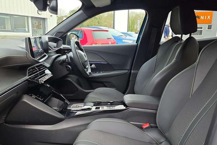 Bluetooth telephone facility, Driver attention warning, E-call, Exterior temperature indicator with ice warning, Front and rear parking sensors, Multi function trip computer, PEUGEOT i-Cockpit with 10" high definition capacitive touchscreen, PEUGEOT i-Cockpit with compact steering wheel, PEUGEOT i-Cockpit with configurable 3D headup instrument panel, PEUGEOT SOS and assistance, Speed limit recognition and recommendation, Wireless mirror screen with mirror link, apple carplay and android auto, Petrol Particulate Filter, 1x USB-C socket in rear and 1x USB-A socket in rear, 2 USB-C ports in the front, 6 speakers radio with mp3 compatible, DAB Radio (Digital Audio Broadcasting), Voice recognition for radio, navigation and telephony features, 2 X Rear number plate lights, Aluminium door sill scuff plates with peugeot lettering, Automatic hazard light activation upon heavy brake application, Black diamond roof, Black front wing trim with gloss black detail and GT badging, Body coloured exterior door handles, Dark tinted rear side and tailgate windows, Diamond black mirror shells, Diamond black rear roof spoiler, Electric, heated, and power folding door mirrors, Frameless electrochrome interior rear view mirror, Front bumper - Meteor grey lower trim, Full LED headlights with smartbeam assist with auto height adjustment, Gloss black finish on B pillar, Gloss black rear cluster connecting strip, Gloss black roof bars, Gloss black window surround, GT model designation badging on tailgate, Headlights left on audible warning, LED daytime running lights with distinctive 3 claw signature, LED side indicator lights integrated into door mirrors, LED third brake light, Model designation badges front and rear, One touch electric front/rear windows with pinch protection, Radiator grille - body coloured vertical chequered grille, Radiator grille - gloss black top edge trim, Rear full LED 3D peugeot signature claw effect lights with daylight function, Rear reversing lights, Rear side wing doors, Rear windscreen wiper triggered automatically in reverse gear, Reinforcement of the front bumper, Tailgate with heated rear windscreen and wiper blade, Twin chromed exhaust pipes, Wheel arch extensions, 1/3 to 2/3 split folding rear seats, 12V socket, 3 seat bench in 2nd row, 8 Colour personalisable ambient lighting, Automatic air conditioning with pollen and active carbon filter, Central front armrest with storage compartment, Driver and front passenger sport seats, Electric power steering with reach and rake adjustable steering column, Front and rear carpet mats in black, Front LED interior light with 2 reading spotlights and rear interior light with timer, Front passenger seat manual adjustment - height, longitudinal and back rest angle, High centre console, ISOFIX child seat mounting points on passenger seat, Mistral full-grain perforated leather steering wheel with Lime Green stitch detail and satin chrome 'GT' emblem, Multifunction steering wheel, Piano keys: Gloss black and chrome toggle switches to access main functions of the vehicle and touchscreen functions, Roof lining - Mistral black, Seatbelt unfastened on the move audible and visual alert for front and rear seats, Single front passenger seat, Two position modular boot floor, Visibility pack - 2008, 2x 2nd row ISOFIX child seat mountings, ABS (Anti-lock Braking System) with EBD (Electronic Brakeforce Distribution) and EBA (Emergency Braking Assistance), Active safety brake with night function/cyclists/pedestrians, Adaptive driver and front passenger airbags with passenger airbag deactivation function, Advanced emergency braking system (AEB) with enhanced camera with the high beam and radar, Child locking functionality on rear doors, Driver/front passenger side airbags, Electric parking brake, ESP (Electronic Stability Program) + Hill Start Assist, Front and rear curtain airbags, Front and rear disc brakes, Front and rear three-point retractable seatbelts, with force limiters, Front optimised safety headrests and rear retractable headrests (x3), height adjustable, Tyre pressure sensor, Automatic door locking when moving off, Deadlocks, Electronic code immobiliser, Thatcham category 1 alarm, Carbon effect Dashboard, front and rear door panel finish,
