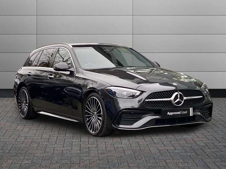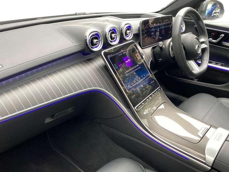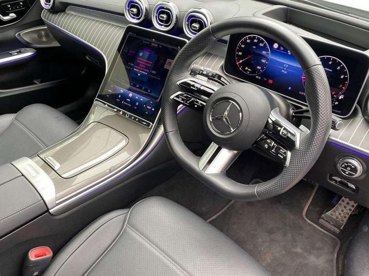 11.9" high resolution multimedia colour display, 12.3" digital instrument cluster display, Active parking assist with PARKTRONIC, Attention assist, DYNAMIC SELECT with a choice of driving modes (Comfort, ECO, Sport, Sport+, Individual), E-call, Extended MBUX functions, Finger print sensor, Fluorescent jacket for driver, Hard disc navigation, Head up Display, MBUX navigation premium, Mercedes me remote services, Outside temperature gauge, Service indicator (ASSYST), Smartphone integration, Sports direct steer speed sensitive steering, Status display for rear seat belts in instrument cluster, Tailgate, Traffic sign assist, Wireless charging system for mobile devices, 9G TRONIC 9 speed automatic transmission, Petrol Particulate Filter, Sport suspension, Burmester 3D surround sound system, DAB Digital radio, MBUX multimedia system, Adaptive brake lights, Adaptive high beam assist plus, Aluminium roof rails, AMG body styling front apron, rear apron and side skirts, AMG Line exterior, Body coloured bumpers, Body coloured door mirrors, Digital light LED headlamps, Electric panoramic glass sunroof, Electric windows with one touch opening/closing and obstruction sensors, Electrically adjustable and heated door mirrors, Heat insulating dark tinted glass, LED daytime running lights, LED Indicators, LED tail lights, LED third brake light, Noise acoustic glass, Radiator diamond grille with integrated Mercedes Benz star and louvre silver with chrome pins, Rain sensor with automatic windscreen wiper activation, Rear side wing doors, Rear wiper, Two visible exhaust pipes integrated into rear bumper, 3 seat bench in 2nd row, 40:20:40 split folding rear bench seat, Ambient lighting premium, Ambient lighting with projection of brand logo, AMG floor mats, AMG line interior, Artico man-made leather upholstery, Auto Mercedes-Benz child seat recognition sensor, Black roof liner, Comfort seats, Double cupholder in centre console, Electrically height/reach adjustable steering column, Folding rear seat backrest, Front and rear head restraints, Gearshift paddles on steering wheel, Illuminated door sills with Mercedes Benz lettering, Illuminated glove compartment stowage, Load compartment cover, Multifunction sports steering wheel in nappa leather, Rear top tether child seat ISOFIX attachment, Single front passenger seat, Sunvisors with illuminated vanity mirrors, THERMATIC 2 zone automatic climate control, AIR BALANCE Package - C Class, Boot comfort package - C Class, Easy pack tailgate - C Class, Energizing package plus - C Class, Interior light package - C Class, Keyless go comfort package - C Class, Memory package - C Class, Mirror package - C Class, Parking package with 360 degree camera - C Class, Stowage space pack - C Class, USB package plus - C Class, 3 rear 3 point seatbelts, Active bonnet pedestrian safety measure which detects an impact and raises bonnet, Adaptive brake system with HOLD function and brake drying in the wet, Anti-lock braking system (ABS), Black seat belts, Brake calipers with Mercedes-Benz lettering + perforated front brake discs, Child proof door locks, Drivers knee airbag, Drivers pelvis airbag, Dual stage driver/passenger airbags, Electric parking brake, Electronic Stability Programme (ESP), Front centre airbag between driver and front passenger seats, Front side airbags, Tyre pressure monitoring system, Warning triangle and first aid kit, Window airbags for driver, front passenger and rear passenger, Antitheft alarm system, Interior monitoring system and Increased antitheft protection, Central locking with interior switch, automatic locking and crash sensor with emergency opening function, Chrome surround in electric key, Urban guard vehicle protection plus, Black open pore aluminium lines wood trim with centre console in metal structure finish, Dashboard, instrument panel and beltlines in ARTICO man made leather in nappa look, 19" AMG multi spoke light alloy wheels painted black with high sheen finish, TIREFIT with tyre inflation compressor,