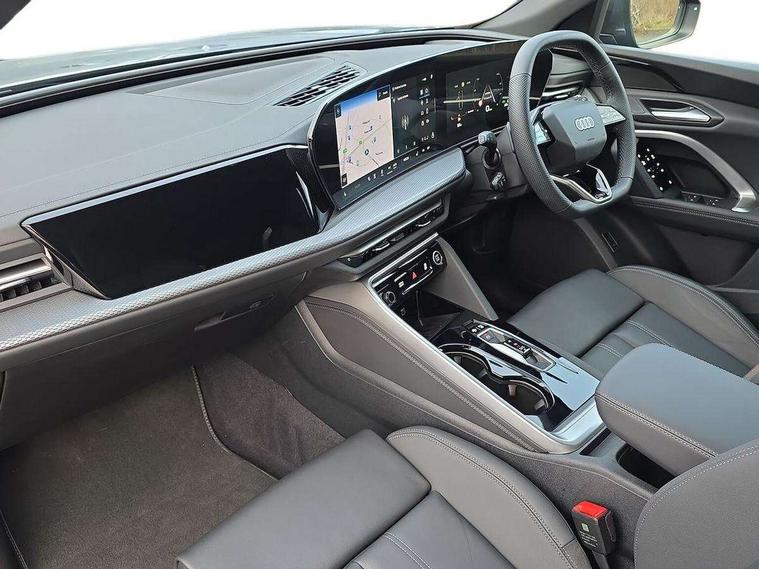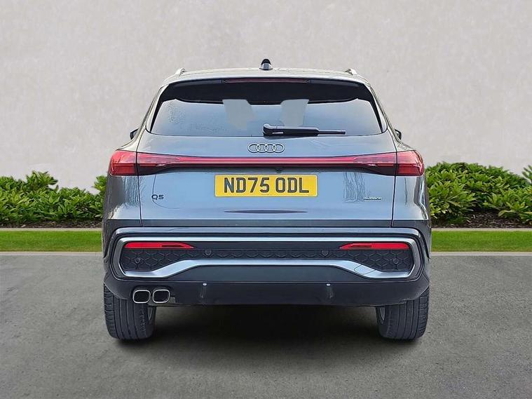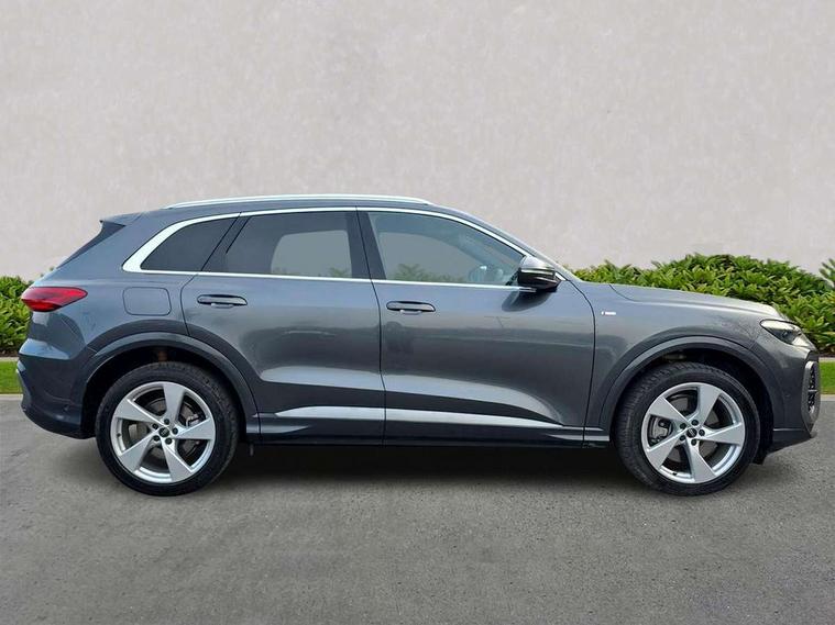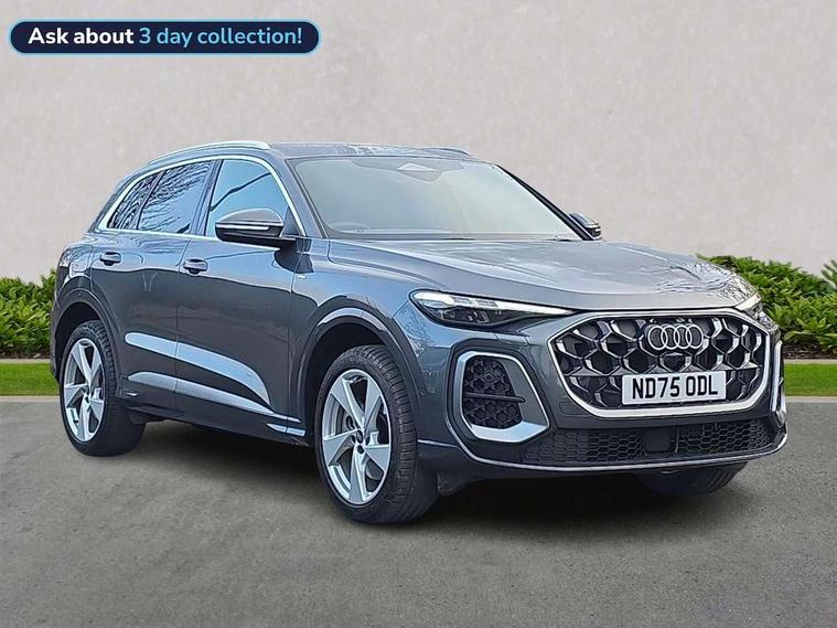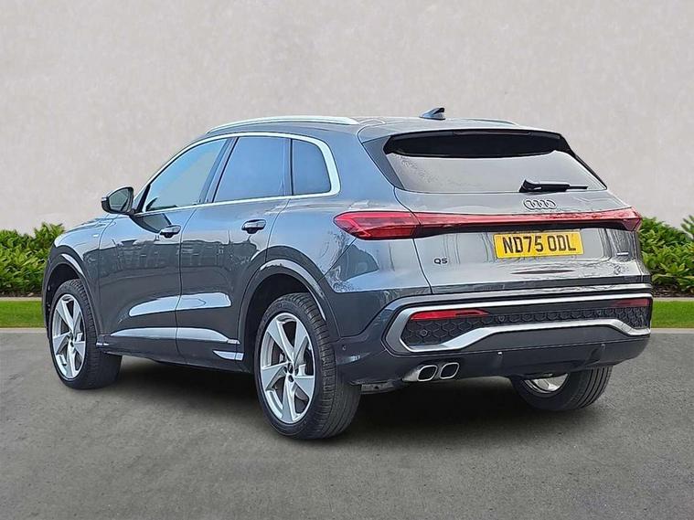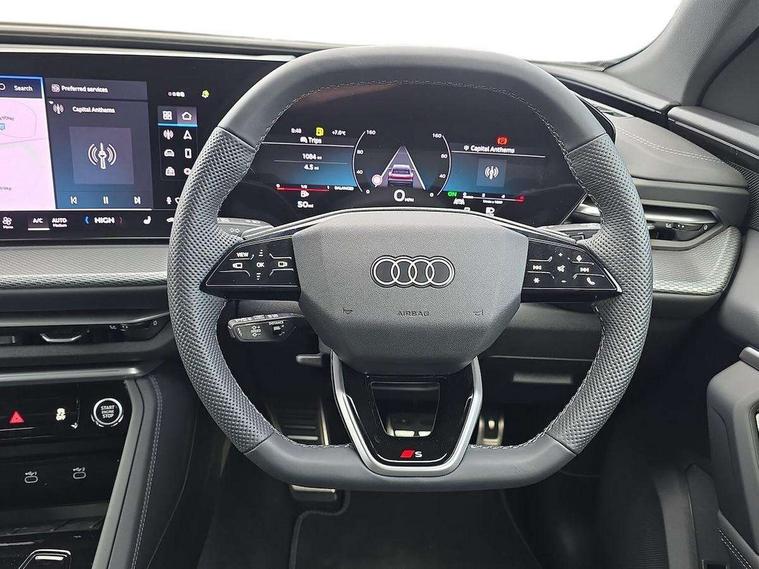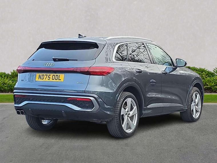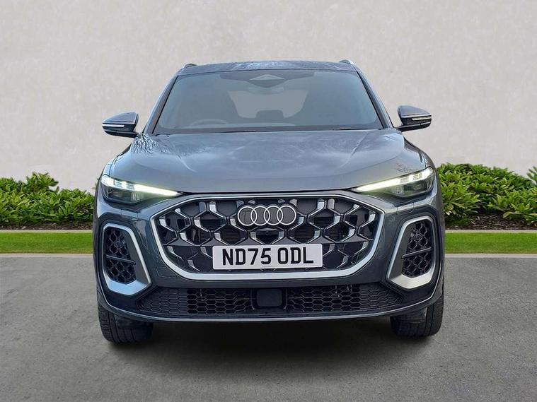 Adaptive cruise control, Attention and drowsiness detection with driver observation, Audi application store, Audi connect emergency call and service, Audi digital key, Audi drive select, Audi smartphone interface, Audi virtual cockpit plus with 11.9" OLED colour display, Camera based traffic sign recognition, Front cross traffic intersection assist, Lane change assistant with exit warning system, rear cross traffic alert and rear turn assist, Lane departure warning system, MMI navigation plus with high resolution 14.5" OLED touchscreen colour display, Park assist plus, PAS, Reversing camera, Swerve assist and front turn assist, Traffic sign based speed limiter, Audi sound system impressive sound with 8 loudspeakers including centre speaker and subwoofer, 6-channel amplifier with a total output of 180 watts, DAB Digital radio, Smartphone compartment with wireless charging, Aluminium roof rails, Auto dimming rear view mirror, Body coloured door mirrors, Electrically adjustable heated and folding + automatically dimming exterior mirrors, Front and rear electric windows, Front door sill trims with aluminium inlays, illuminated with 'S' logo, Grill frame, inlay and front air inlets in matt anthracite chrome, Headlight cleaning system, Heated rear window, High beam assist, High gloss window surrounds, LED headlights plus incl. digital DRL, dynamic coming and leaving home function with turning/all weather/motorway/manouevring and intersection lights, LED rear lights pro incl. dynamic rear indicators and illuminated light strip with animated coming and leaving home function, Logo projection light in exterior mirrors, Privacy glass, Projection third brake light for rear window in LED, Radiator grille in phantom black, Rear and side windows with heat insulating glass, Rear honeycombe grille in matt black with inlay in matt anthracite chrome, Rear side wing doors, Rear wash/wipe, S Line badge on the front wings, S line bumpers in contrasting Volcano grey metallic paint finish, Windscreen with acoustic glazing, 3 rear head restraints, 3 seat bench in 2nd row, 3 spoke leather steering wheel with multi-function buttons with touch control, flattened on top and bottom, with S badging and contrast stitching, 4 way electric lumbar support for driver and front passenger, Black carpets, Comfort centre armrest front, Deluxe 3 zone electronic climate control, Front and rear floor mats, Front sport seats with integrated head restraints, Headlining in black cloth, i-Size child seat mounting on the front passenger side and outer rear seats, i-Size and top tether on the outer rear seats, Increased charging capacity for USB ports 2X100 Watts in rear, 2X60 Watts in front, Interior trim in aluminium look, Luggage compartment lid, electrically opening and closing, Manual steering column adjustment, S embossed logo on front sport seats, Single front passenger seat, Softwrap in black, Stainless steel pedals and footrest, Steering wheel grips in perforated leather and shift paddles, Ambient lighting package plus - Q5, Rear seat bench plus pack - Q5, Storage and luggage compartment pack with luggage net - Q5, 3x3 point rear seatbelts, ABS, Acoustic vehicle alerting system, Convenience key with safelock, Driver and front passenger airbag with passenger airbag deactivation, Electric child safety locks, First aid kit with warning triangle and high visibility vests, Front emergency brake assist, Front side airbags with head airbag system and front interaction airbag, Hill hold assist, Rear seat occupant reminder, Tyre pressure loss indicator, Anti-theft wheel bolts, Thatcham approved category 1 anti theft alarm, Accent surfaces and control buttons in gloss black, Anthracite matt brushed aluminium inlays with linear embossing, Black dashboard with contrast stitching, Upper and lower interior elements in artificial leather, Tyre repair kit,