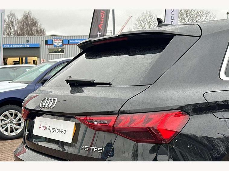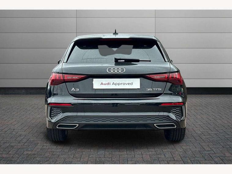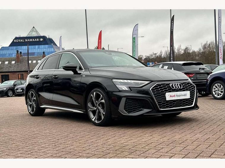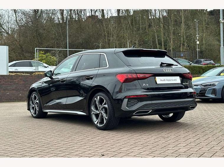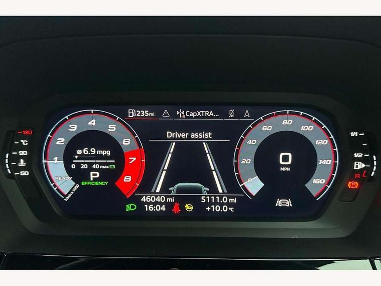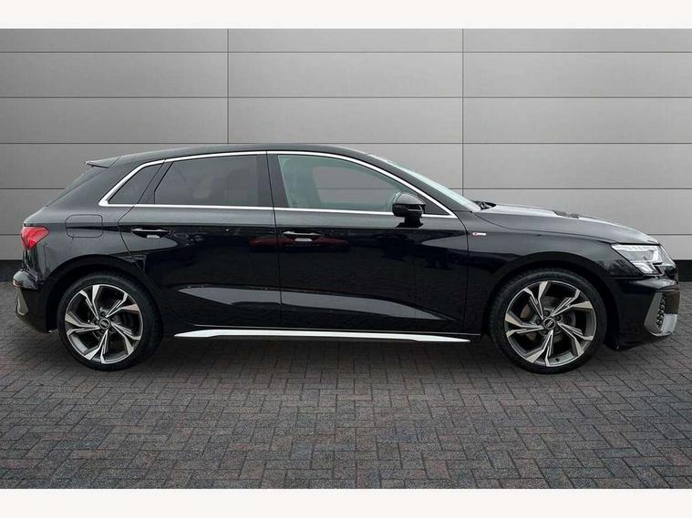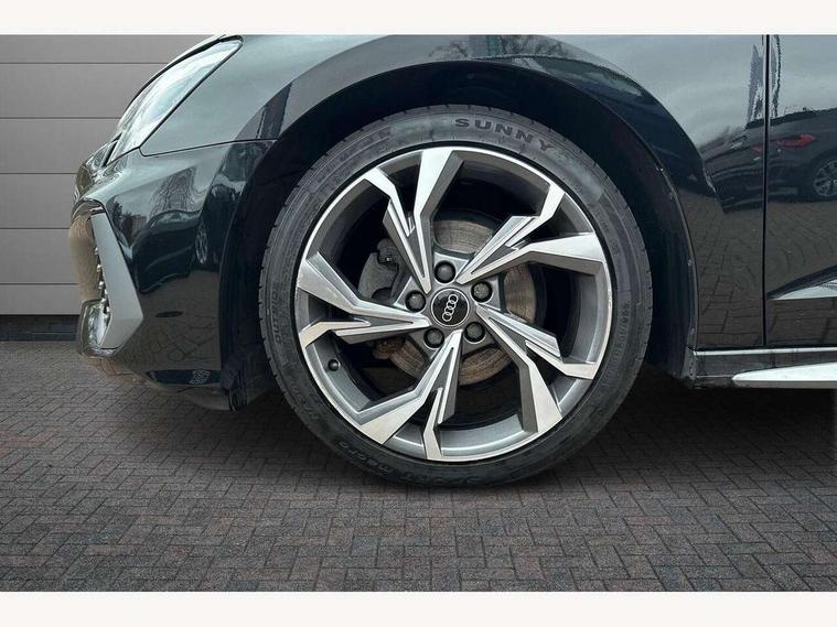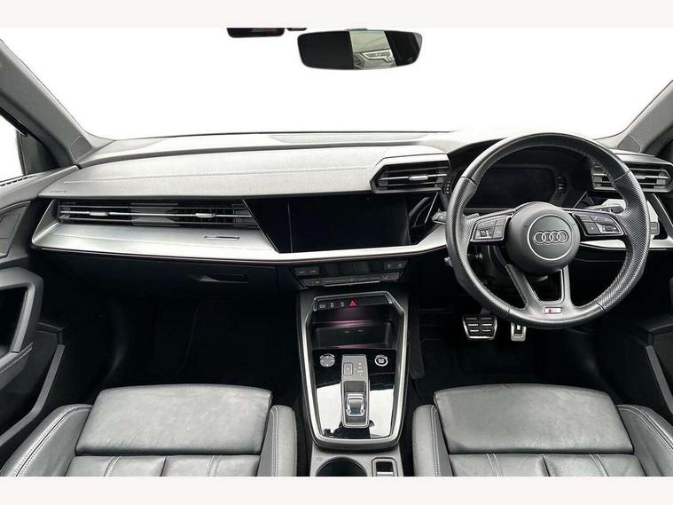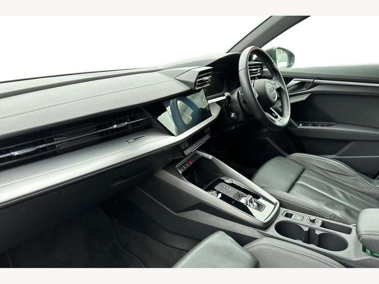 Audi connect emergency call and service, Audi drive select (Auto, Comfort, Dynamic, Efficiency and Individual), Audi smartphone interface, Audi Virtual Cockpit - 10.25" digital and colour instrument cluster, Automatic start/stop system with recuperation, Bluetooth interface, Collision avoidance assistant, Electromechanical power speed sensitive steering, Lane departure warning system, MMI Navigation Plus with high resolution 10.1" colour touch screen display, Service indicator, Trip computer, Voice control system with natural language interaction, 2xUSB-C connection with data and charging functions, 6 passive loudspeakers, DAB Digital radio, 3rd brake light, Acoustic glass windscreen, Aluminium window trim, Auto dimming frameless rear view mirror, Electrically adjustable/heated/folding/auto dimming door mirrors with integrated LED indications + kerb view function for passenger side, Front electric windows, Illuminated aluminium inserts front door sills with S logo, LED daytime running lights, LED headlights with LED rear lights and dynamic rear indicators, Light and rain sensors, Privacy glass - dark tinted rear window, rear door and side windows, Rear electric windows, Rear side air outlets in grained matt black, Rear wiper, S line bumpers, S roof spoiler, 12V socket and storage compartment in front centre console, 40/20/40 split folding rear seat bench with cupholder, Black cloth headlining, Dual zone electronic climate control, Front and rear centre armrest in leather, Front and rear headrests, Front/rear floor mats, Height and reach adjustable steering wheel, Interior lighting - glove compartment light and right hand side, Luggage compartment floor covering, Manual boot compartment lid, Manually adjustable front seats, Seat side bolsters, Stainless steel pedals and front footrest, Twin leather upholstery with front sports seats S embossed logo, Aluminium interior elements pack - A3 Sportback, S line styling pack - A3 Sportback, 3x3 point rear seat belts, Driver and front passenger airbag with passenger airbag deactivation, Electronic Stabilisation Control (ESC) including ABS, ASR and EDL, First aid kit with warning triangle and 2 safety vests, Front side airbags with head airbags and interaction airbag, Hill hold assist, Pre-sense front with pedestrian and cyclist detection, Seatbelt monitoring, Tyre pressure loss indicator, Anti theft alarm, Anti-theft wheel bolts, Electronically operated child lock, Immobiliser, Remote control central locking, Accent surfaces in the dashboard and centre console in platinum grey silk effect paint finish, Dark spectrum aluminium inlays,