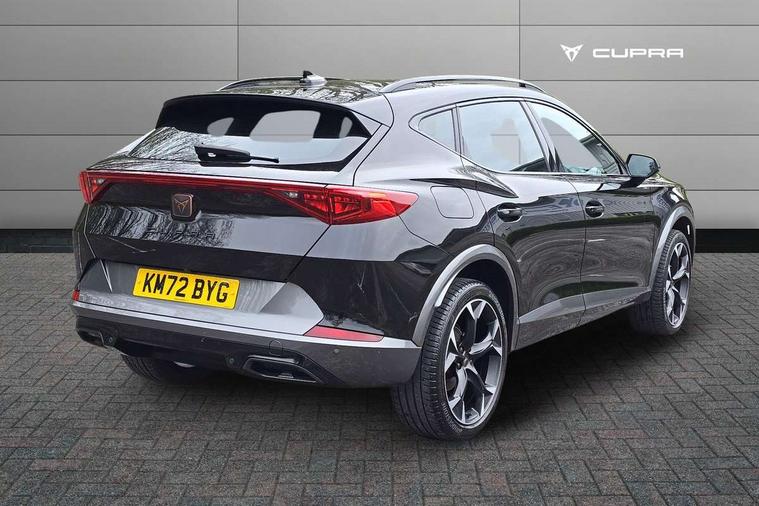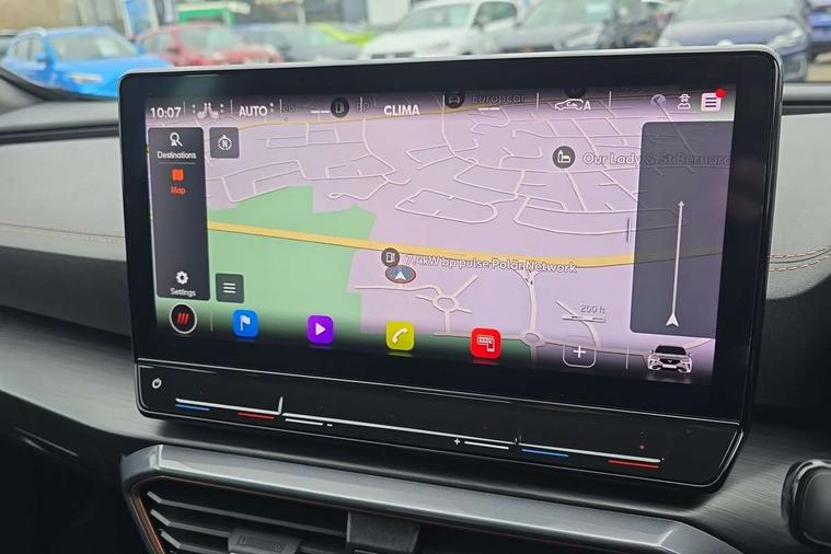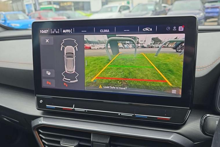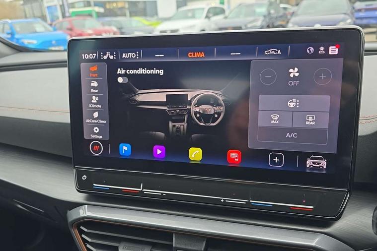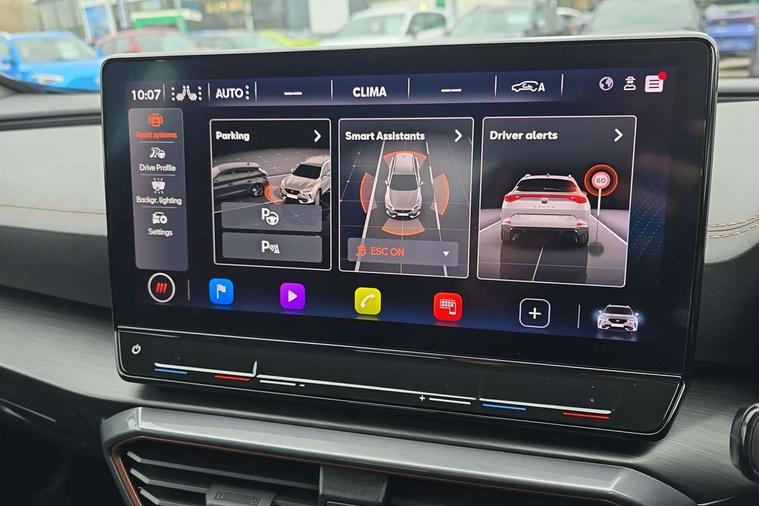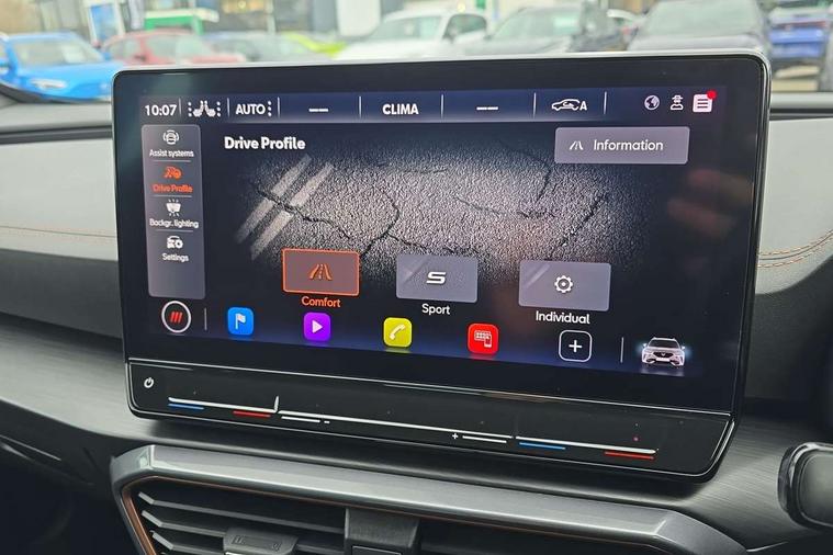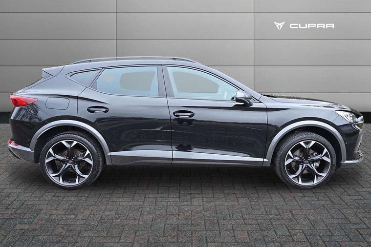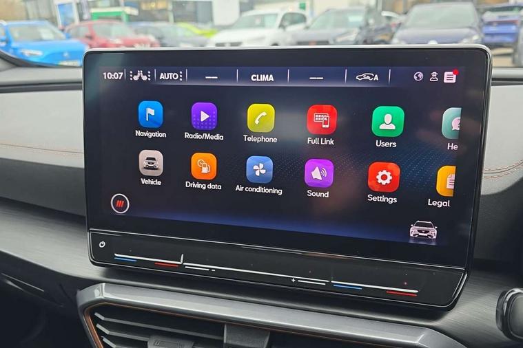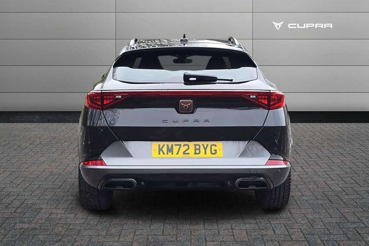 Digital cockpit and configurable dashboard, Driver alert system, Driving profile selection, Forward collision warning with automatic braking, Lane assist, Navigation system with 12'' Touchscreen Display, Park assist (inc front/rear parking sensors), PAS, Predictive adaptive cruise control with speed limiter, Rear view camera, RPM, trip computer, outside temp gauge, instrument light brightness, low fuel warning light, lights on reminder, gearshift indicator, Service interval indicator, Start/stop system with regenerative braking, Voice control system, Wireless apple carplay, Wireless phone charger, Electronic locking differential and dynamic traction support, Standard suspension, 2 front and 2 rear USB type C sockets, Auxiliary input socket, DAB radio, Auto dimming rear view mirror, Body colour door handles, Body coloured bumpers, Dark grey wing mirror, Daytime running light with automatic headlight control and coming home feature, Dynamic headlight range control, Electric front/rear windows, Electrically adjustable heated and folding door mirrors with memory function, Front fog lamps with cornering function, Gloss black roof rails and window surrounds, LED Headlights, LED Taillights with dynamic indicator, Rain sensing wipers, Rear diffuser with black simulated exhaust pipes, Rear side wing doors, Rear wash/wipe, Third brake light, Tinted rear windows, Welcome lights, 12v power supply in centre console, 12V socket, 12v socket in loadspace, 2 front and 2 rear reading lights, 230V socket, 3 seat bench in 2nd row, 60/40 split rear bench seat with armrest and mechanical seat release, Black headlining, Dust/pollen filter, Front and rear head restraints, Front centre armrest, Height/reach adjust steering wheel, Illuminated interior front door sills, Illuminated sunvisor with mirror, Isofix, Leather multi function heated steering wheel with gear shift paddles, Luggage tie-down hooks, Single front passenger seat, Three zone climate control with control panel in rear, Variable luggage/load compartment floor, Wraparound lighting, Genuine Nappa leather Pack - Cupra, 3 point seatbelts on all rear seats, ABS, Brake control system - ESC and brake booster, Child proof door locks, Driver and front passenger airbags with front passenger airbag de-activation, Electronic parking brake, Front and rear disc brakes, Front side curtain airbags, Hill hold control, Public e-call, Seat belt reminder for front and rear seats, Tyre pressure monitoring system, Anti theft alarm system, Keyless entry and start system (KESSY), Locking wheel bolts, Copper and aluminium interior detailing, 19" 'Exclusive' machined sport matte black and silver alloy wheels,