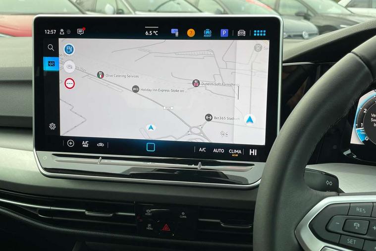 Activated carbon canister, Adaptive cruise control (ACC) with speed limiter and front assist (reacting to vehicles pedestrians and cyclists), Advanced driver attention and drowsiness monitor, Driver alert system, Dynamic road sign display, E-Sim card for online connectivity, eCall emergency call system, Multi-color Digital cockpit pro, selection of different info profile possible, Multifunction camera for distance control, Navigation system, Oncoming vehicle braking when turning including swerve support, Power assisted speed sensitive steering, Preparation for light assist system, Speedo, rev counter, electronic odometer, trip, service interval display, exterior temperature and fuel gauge, Voice assistant and voice enhancer with chat GPT, Warning signal and warning light for front and rear seatbelts not fastened, We connect plus preparation, We connect preparation, Wireless app connect, Petrol Particulate Filter, Start-stop system with battery regeneration (recuperation - energy recovery during braking), XDS electronic differential lock for improved traction and handling, 2 USB C ports in front, 2 USB charging sockets on the centre console in the rear charging capacity upto 45W, Comfort telephony + wireless charging, without wireless aerial connection, Digital radio reception (DAB), Diversity antenna for FM reception, Infotainment system with 12.9" display, 3rd brake light, Auto headlights, Automatic headlamp activation with Coming home and Leaving home feature, Body colour door handles, Body colour door mirrors, Chrome plated radiator grille inserts and light switch surrounds, Exterior mirrors convex on the left and aspherical on the right, Front and rear electric windows, Heat insulating windshield made of laminated glass, LED daytime running lights, Rear exhaust tailpipe, Rear fog light on one side and reversing lights on both sides, Rear side wing doors, Rear windscreen washer and wiper with interval delay, Remote electrically foldable door mirrors, puddle lights and reverse activated passenger's door mirror, Standard bumpers, Welcome light with surround lighting, 12V socket in front centre console, 12V socket in luggage compartment, 3 rear head restraints, 3 seat bench in 2nd row, Front centre armrest, Front head restraints, Front passenger seat, ISOFIX anchors for child seats on outer rear bench seats and on front passanger seat compatible for i-Size, Luggage compartment lighting, Rear cupholder and loadthough, Soul black instrument panel, Split folding backrest with centre armrest and unsplit rear seat bench, Standard pedal cluster, Storm grey roof lining, Sun visors with illuminated vanity mirrors, 3 point height adj front seatbelts + pretensioners, 3 rear three point seatbelts, ABS, Autonomous emergency braking front assist with pedestrian and cyclist monitoring, Child locks on rear doors, Driver and front passenger airbag with front passenger airbag deactivation, Electronic parking brake with auto hold, ESC (Electronic Stability Control), Extended pedestrian protection measures, Rear disc brakes, Two tone horn, Tyre pressure monitoring system, Volkswagen roadside assistance, Anti theft wheel bolts, Preparation for alcohol interlock, Nature cross brushed decorative inserts for dashboard and front door panels,