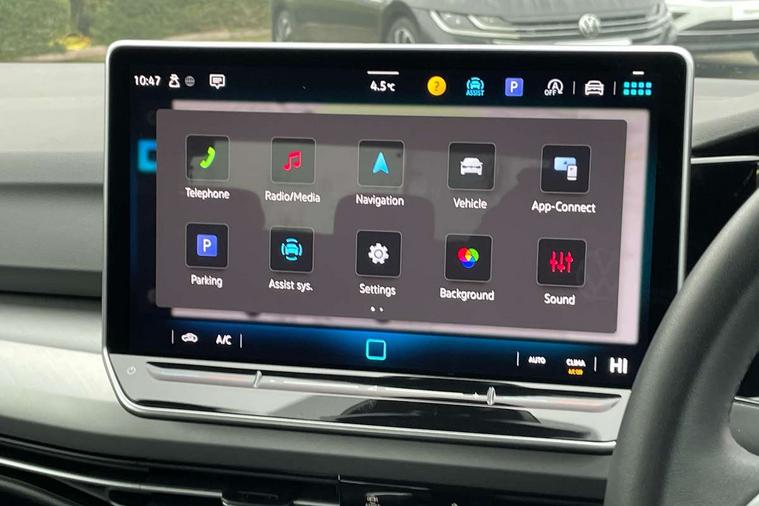 Activated carbon canister, Adaptive cruise control (ACC) with speed limiter and front assist (reacting to vehicles pedestrians and cyclists), Advanced driver attention and drowsiness monitor, Driver alert system, Dynamic road sign display, E-Sim card for online connectivity, eCall emergency call system, Multi-color Digital cockpit pro, selection of different info profile possible, Multifunction camera for distance control, Navigation system, Oncoming vehicle braking when turning including swerve support, Power assisted speed sensitive steering, Preparation for light assist system, Speedo, rev counter, electronic odometer, trip, service interval display, exterior temperature and fuel gauge, Voice assistant and voice enhancer with chat GPT, Warning signal and warning light for front and rear seatbelts not fastened, We connect plus preparation, We connect preparation, Wireless app connect, Petrol Particulate Filter, Start-stop system with battery regeneration (recuperation - energy recovery during braking), XDS electronic differential lock for improved traction and handling, 2 USB C ports in front, 2 USB charging sockets on the centre console in the rear charging capacity upto 45W, Comfort telephony + wireless charging, without wireless aerial connection, Digital radio reception (DAB), Diversity antenna for FM reception, Infotainment system with 12.9" display, 3rd brake light, Auto headlights, Automatic headlamp activation with Coming home and Leaving home feature, Body colour door handles, Body colour door mirrors, Chrome plated radiator grille inserts and light switch surrounds, Exterior mirrors convex on the left and aspherical on the right, Front and rear electric windows, Heat insulating windshield made of laminated glass, LED daytime running lights, Rear exhaust tailpipe, Rear fog light on one side and reversing lights on both sides, Rear side wing doors, Rear windscreen washer and wiper with interval delay, Remote electrically foldable door mirrors, puddle lights and reverse activated passenger's door mirror, Standard bumpers, Welcome light with surround lighting, 12V socket in front centre console, 12V socket in luggage compartment, 3 rear head restraints, 3 seat bench in 2nd row, Front centre armrest, Front head restraints, Front passenger seat, ISOFIX anchors for child seats on outer rear bench seats and on front passanger seat compatible for i-Size, Luggage compartment lighting, Rear cupholder and loadthough, Soul black instrument panel, Split folding backrest with centre armrest and unsplit rear seat bench, Standard pedal cluster, Storm grey roof lining, Sun visors with illuminated vanity mirrors, 3 point height adj front seatbelts + pretensioners, 3 rear three point seatbelts, ABS, Autonomous emergency braking front assist with pedestrian and cyclist monitoring, Child locks on rear doors, Driver and front passenger airbag with front passenger airbag deactivation, Electronic parking brake with auto hold, ESC (Electronic Stability Control), Extended pedestrian protection measures, Rear disc brakes, Two tone horn, Tyre pressure monitoring system, Volkswagen roadside assistance, Anti theft wheel bolts, Preparation for alcohol interlock, Nature cross brushed decorative inserts for dashboard and front door panels,