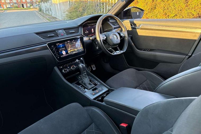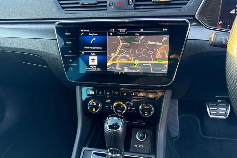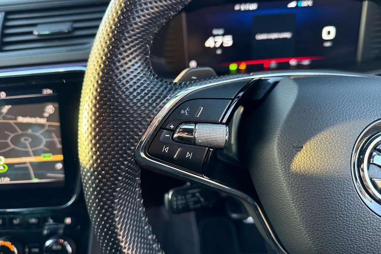 Bluetooth system, CareConnect and Emergency Call, Columbus HDD satellite 3D map navigation with 9.2" colour touch screen, web radio, integrated Wi-Fi, Driver fatigue sensor, Front assist with pedestrian protection, Progressive dynamic steering, Stop/start engine system and energy recovery, Virtual cockpit, Voice control system, Wireless smartlink apple carplay, SmartLink+ android auto, XDS+, 2 USB ports, Bolero radio with 8" touchscreen display, DAB Digital radio, 3rd brake light, Aero front windscreen wipers with intermittent function, Auto dimming rear view mirror, Black rear badge, Body colour door handles, Cornering front fog lights, Electrically adjustable heated and folding door mirrors with memory function, Front and rear electric windows, Full matrix LED headlights with AFS LED DRL integrated with headlight washer LED rear lights(High function), dynamic indicators and lighting animation, Gloss black exterior door mirrors with sports styling including front grill, side strip and window surrounds, Gloss black grille surround with gloss black rib elements, Gloss black rear spoiler (roof), Gloss black strip between rear lights, Light assistant (coming/leaving home/tunnel light), Privacy glass, Rain sensor, Rear exhaust diffuser styling elements, Rear side wing doors, Sportline badging, 12v power point in centre console, 3 seat bench in 2nd row, Black roof headlining, Black textile floor mats, Carbon optic interior elements, Electric auxiliary air heater, Front and rear footwell illumination, Front armrest with storage box, Height adjustable front and rear head restraints, Ice scraper, Illuminated and cooled glovebox, Interior lights with control switches, Isofix child seat fittings on outer rear seats, LED front and rear reading lights, Microsuede/leather upholstery with silver diamond stitching sports seats, One umbrella compartments in driver door with one umbrella in drivers door, Overhead glasses storage compartment, Rear centre armrest with cupholders, Removable parcel shelf, Single front passenger seat, Split folding rear seats, Storage compartment with cover in luggage compartment side panels, Ticket holder on A Pillar, LED package plus - Superb, 3 rear seatbelts, 7 airbags - Front, front side, curtain, driver's knee airbag with front passenger deactivation switch, Driver and passenger seatbelts with warning light, Electronic parking brake, ESC including ABS, EBV, MSR, ASR, EDS, HBA, DSR, RBS, CBC, multi-collision brake (MKB) and Auto hold, Hill start assist, Power operated child lock in rear doors, Tyre pressure monitor, Alarm with interior monitoring tilt sensor and back up horn, Electronic engine immobiliser, Keyless entry and start/stop, Remote central locking with SAFE system, Third remote key,