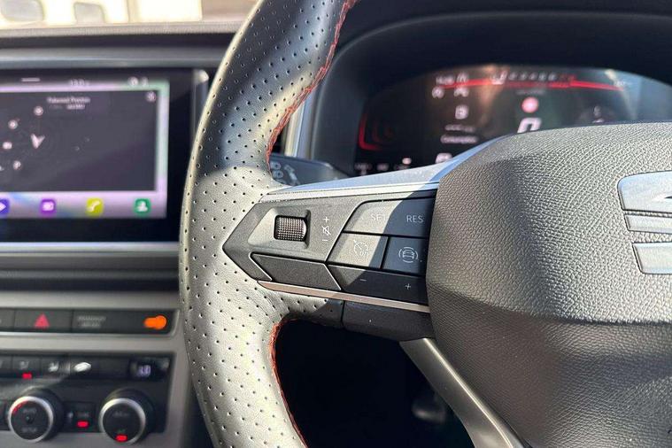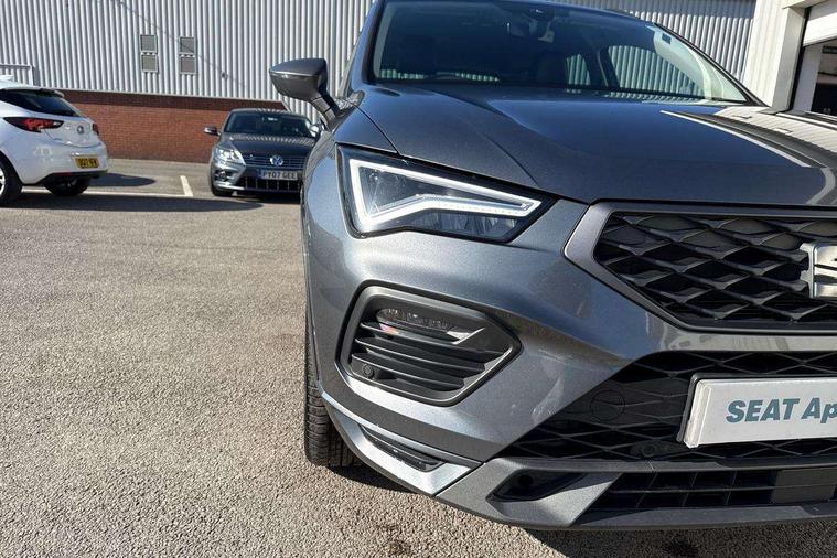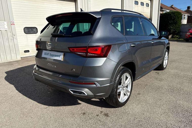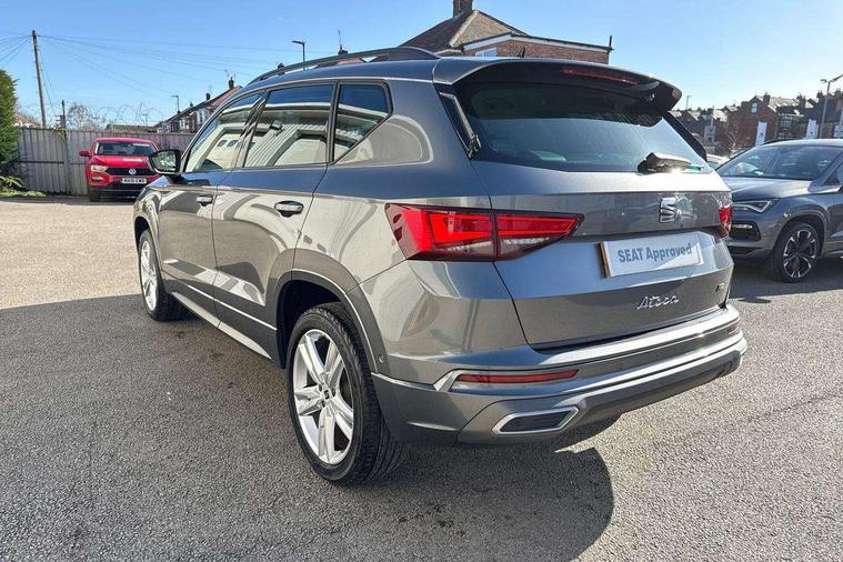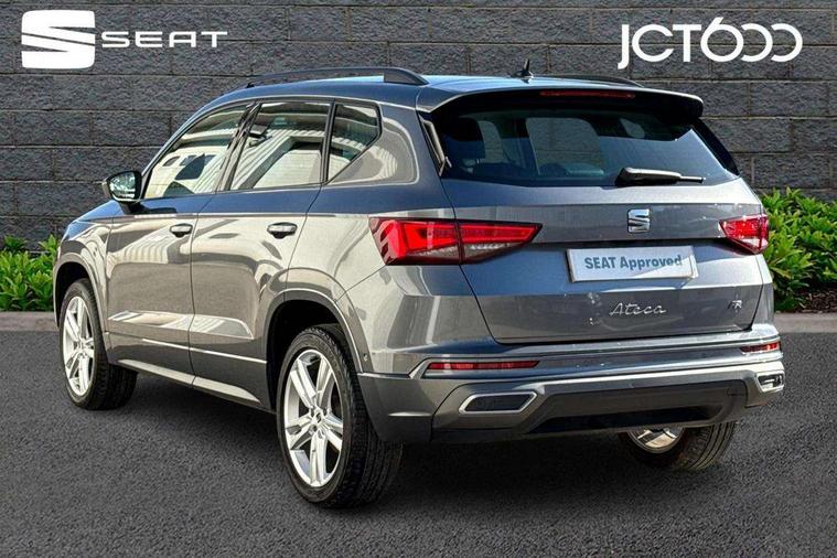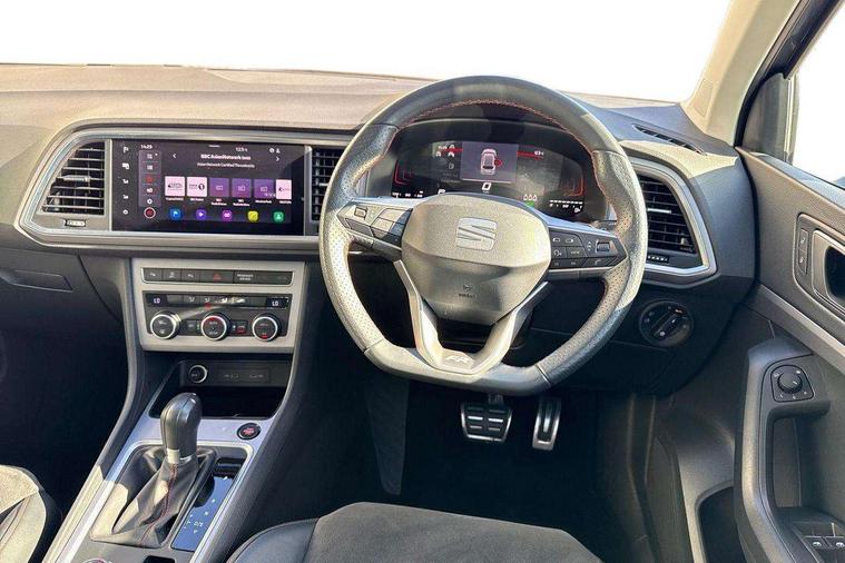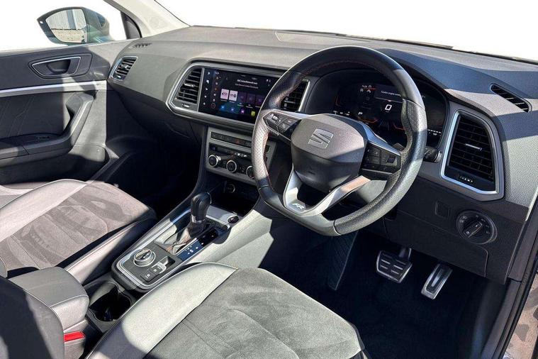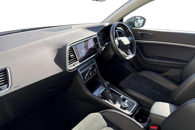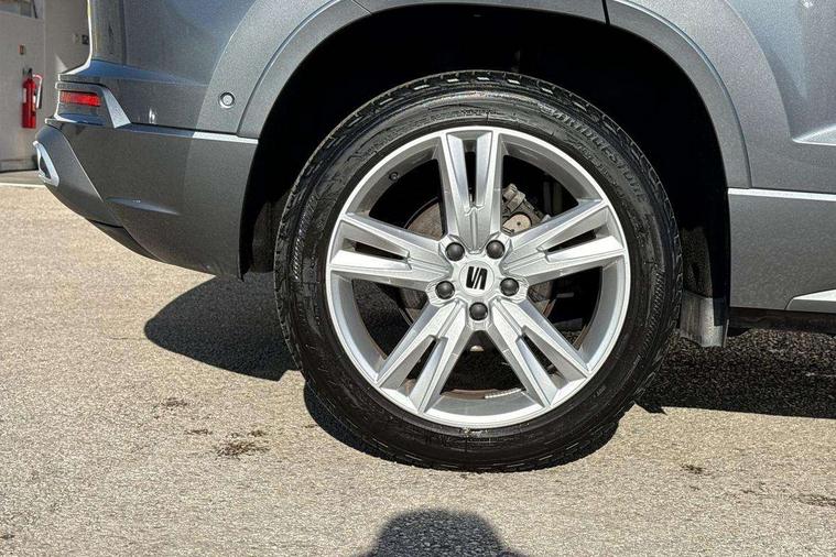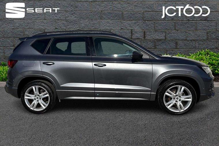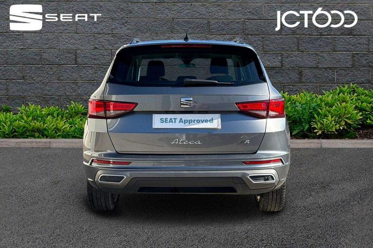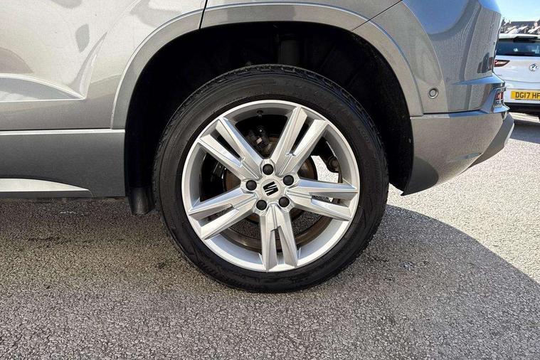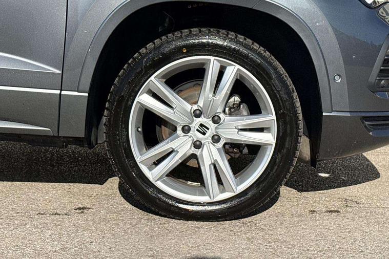 8" Digital cockpit, Colour multi-function on board computer display, Cruise control system with speed limiter, E-call, Outside temperature gauge, Progressive power assisted steering, SEAT drive profile with driving experience button - Normal, Sport, Eco and Individual mode, gearshift, steering and throttle response, Self parking functionality (includes front and rear parking sensors), Start/stop system, Tailgate, Trip computer, wired and wireless full link smartphone integration, Wireless phone charger, Steering wheel mounted audio/phone controls, Black roof rails, Black side window trim, Body colour bumpers, Body coloured wheel arch surrounds, Chrome front grille frame, Dark tinted rear windows, Daytime running lights, Door mirrors with welcome light silhouette, Dynamic headlight range control with self adjusting whilst driving, Electric adjustable/heated/folding door mirrors, Front and rear electric windows, Full LED headlamps with lens and LED front fog lamps with cornering function, Illuminated aluminium front door sill, LED 3rd brake light, LED rear tail lights with dynamic indicators, Rear exhaust tailpipe, Rear fog lights, Rear side wing doors, Rear wash/wipe, Roof spoiler, Variable front intermittent wipers, 12V socket in front, 3 seat bench in 2nd row, 60/40 split folding rear seat, Aluminium pedals, Dinamica upholstery with front comfort seats, Drawer under right front seat, Dual zone climate control, Front and rear head restraints, Front centre armrest, Front seat back storage pockets, Height adjustable driver and passenger seat with lumbar adjustment, ISOFIX points in outer rear seats with top tether anchorage points, Leather sports steering wheel and gear knob, Rear armrest and easy back seat release mechanism from boot, Single front passenger seat, Steering wheel mounted gearshift paddles, Convenience pack - Ateca, Interior lighting pack - Ateca, Navigation system pack with DAB - Ateca, Safety and driving pack with attention and drowsiness assist - Ateca, 3x3 point rear seatbelts, ABS, Traction control system (TCS), Electronic stability control (ESC) and Electronic differential lock system (XDS), Airbags - Driver and front passenger airbag with deactivation, front side, two curtain and driver's knee airbags, Electric parking brake with auto hold function, Front and rear seatbelt reminder, Front assist with autonomous emergency braking, Hill hold control, Manual rear child locks, Single tone horn, Tiredness recognition system, Tyre pressure monitoring system, Alarm, Keyless entry, Locking wheel bolts, Remote central locking, Chrome interior detailing, 18" Brillaint silver alloy wheels,