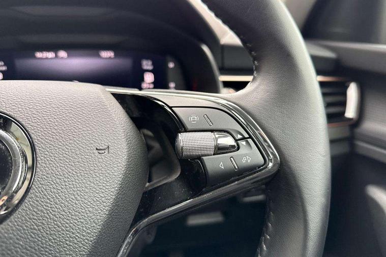 Amundsen satellite navigation with 9.2" touchscreen display, voice control, virtual cockpit and web radio, Bluetooth system, E-call, Front assist system, Gesture control, PAS, Rear view camera, Service indicator, Speed limiter, Virtual cockpit with 10.25" display, Wireless SmartLink for apple car play, android auto and mirrorlink, 8 Speakers, Auxiliary input socket, DAB Digital radio, Auto dimming rear view mirror, Body colour bumpers, Body colour door mirrors and handles, Chrome grille surround, Electric folding door mirrors, Electrically adjustable and heated door mirrors, Front and rear electric windows, Headlight range control, Heated rear window, LED rear lights - low functionality, Light sensors, Privacy glass, Rear fog lights, Rear side wing doors, Rear wiper, 12V Accessory socket in centre console, 3 seat bench in 2nd row, Chrome inner door handles, Dual zone climate control, Front head restraints, Glove compartment with illumination, Ice scraper, Isofix child seat fittings on outer rear seats, ISOFIX on front passenger seat, Manual lumbar support for front seats, Rake/reach adjustable steering wheel, Reading lights, Single front passenger seat, Sun visors with illumination on front passenger, Textile floor mats, Third rear headrest, Top tether for front passenger seat, Umbrella in driver's door, 3x3 point rear seatbelts, Airbags - driver and front passenger, ESP, Front passenger airbag deactivation switch, Front side airbags with curtain airbags, Hill hold control, Manual parking brake, Manual rear child locks, One tone horn, Rear disc brakes, Seatbelt reminder for driver an co-driver, Traction control, Tyre pressure monitor, Anti-theft alarm system with interior monitoring, backup horn, towing protection and remote central locking with SAFE system, Anti-theft wheel bolts, Electronic engine immobilizer, Latice curved decorative insert on the dashboard with hot stamping in copper and white ambient lighting white,