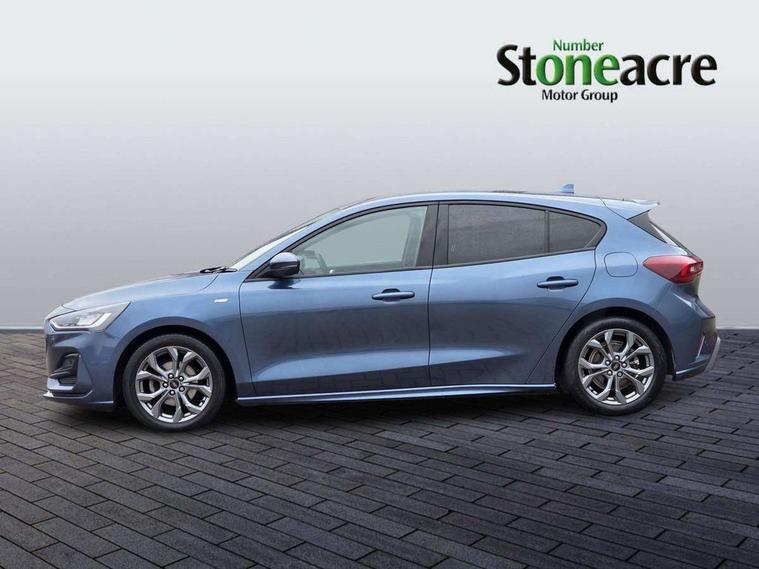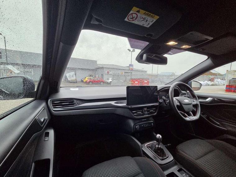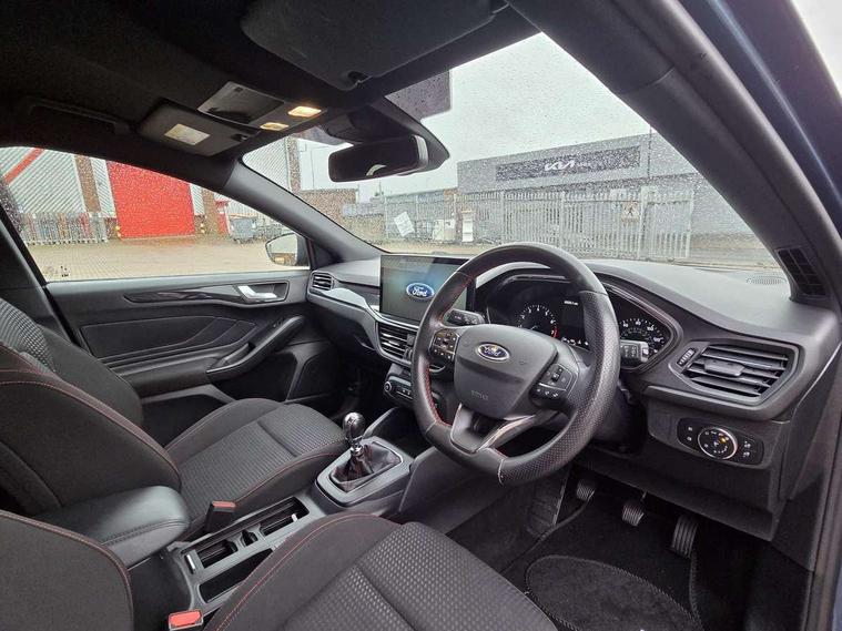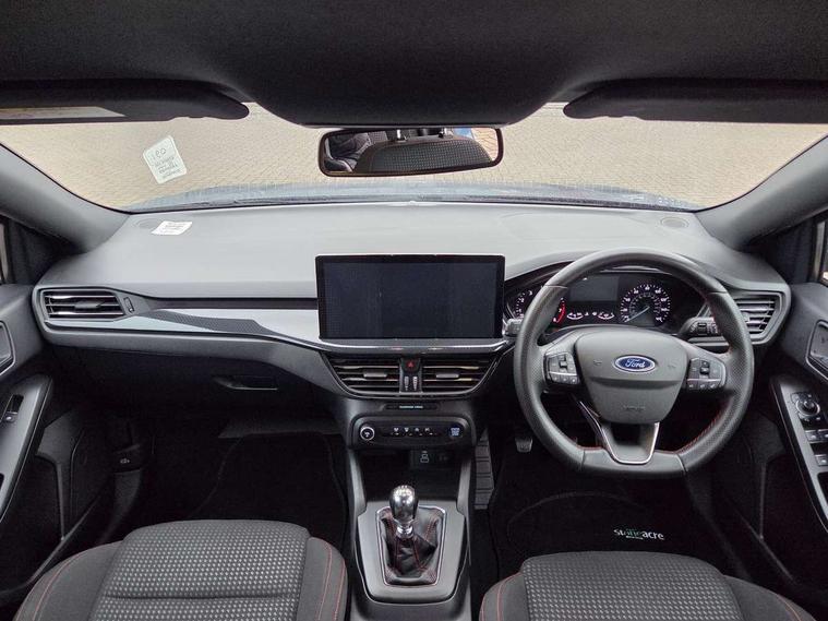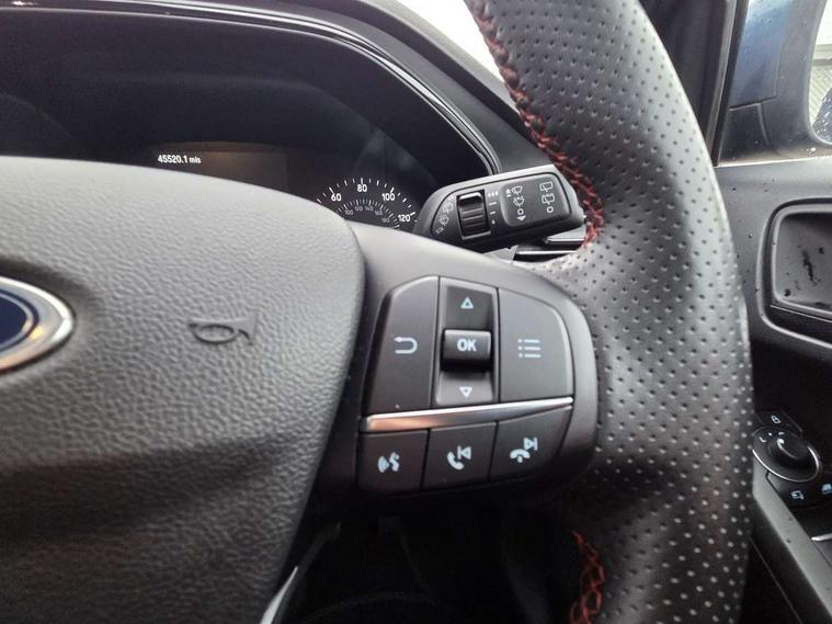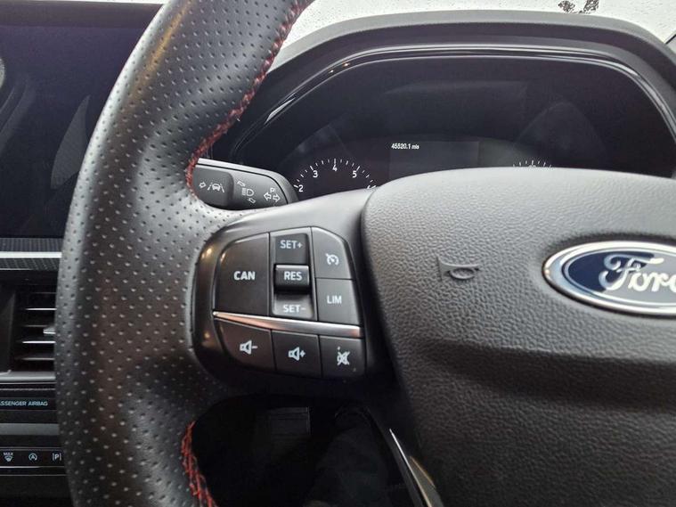 4.2" Colour TFT Ice blue illumination analogue cluster with trip computer, Bluetooth system, Digital clock, Easy fuel capless refuelling system, Eco mode, Ford SYNC 4 Navigation with 13.2'' touchscreen, DAB radio, Emergency Assistance, Apple Carplay & Android Auto, 6 speakers & FordPass Connect, Lane keeping system - lane keeping alert and lane keeping aid, PAS, Rev counter, Selectable drive mode, Service interval indicator, Sports tuned suspension, 2 USB ports, Auto headlamps (on/off), Body coloured door handles, Electrically operated front and rear windows with one touch opening and closing, Electrically operated heated power fold door mirrors with puddle lamp with side indicators, Front variable intermittent wipers with electric wash, Full fixed LED headlamps, Heated rear window, LED daytime running lamp, LED rear lamps, LED third brake light, Polished twin tailpipe, Privacy glass, Quickclear heated windscreen, Rain sensor, Rear side wing doors, Tailgate wash/wipe, Unique ST-Line grille, full bodystyling kit, and large body coloured rear spoiler, 3 rear headrests, 3 seat bench in 2nd row, Cloth upholstery, Dual zone electronic air temperature control, Height adjustable front headrests, Isofix child seat preparation, Reach + rake adjustable steering column, Single front passenger seat, 3x3 point rear seatbelts, ABS+Electronic Brake force Distribution, Auto hold function, Driver airbag, EDL traction control, Electronic parking brake, Electronic stability control, Front and rear seatbelt reminder, Front inertia reel height adjustable seatbelts with pre-tensioners, Front passenger airbag, Front side airbags, Passenger airbag deactivate switch, Post collision braking, Pre collision assist with autonomous emergency braking and pedestrian/cyclist detection, Remote/power child rear door locks, Side curtain airbags, Three rear inertia reel lap/diagonal seatbelts, Tyre pressure monitoring system, Keyless entry and keyless start, MyKey system, Remote central locking & engine immobiliser, Thatcham alarm with power door dead locks, 17" 5 spoke Rock mettalic finish alloy wheels with mini spare wheel,