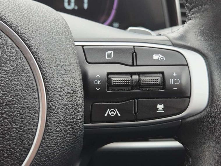 12.3" Display with navigation, 4.2" supervision colour cluster display, Apple car play/Android Auto with voice control, Drive mode selector, E-call, Forward collision avoidance assist (FCA) - city/pedestrian/cyclist/junction covering, Front and rear parking sensors, Highway Driving Assist (HDA), Intelligent speed limit assist, Kia Connect (UVO), Lane Following Assist (LFA), Lane keep assist, Low washer fluid warning, Rear view monitor, Reversing camera system integrated into centre fascia screen, Smart cruise control with stop and go functionality, Speed sensitive power steering, Trip computer, Windscreen washer level indicator, Intelligent Stop and Go, 6 speaker audio system, Bluetooth audio streaming, DAB Radio with MP3, Rear USB port, Steering wheel mounted audio controls, USB C type charging ports on centre console, USB C type charging ports on side of front seats, USB port for connection of a media device, All round electric windows with drivers and front passenger auto up/down function, Automatic headlight control system, Automatic window defogger, Backlite glass heated with timer, Black bumpers, Body colour exterior door handles, Body colour radiator upper garnish and door garnish, Electrically adjustable/heated/folding door mirrors with LED indicators, Front and rear chrome skid plates, Gloss black door mirrors, Gloss black radiator grille, Gloss black side sill and wheel arch body mouldings, Glossy black roof rack, High beam assist, Interior electrochromic mirror, LED daytime running lights, LED front fog lamps, LED headlamps (low and high beam - MFR type), LED High mounted stop light, LED rear combination lamp, Rain sensing wipers with aero blades, Rear fog lamp, Rear privacy glass, Rear side wing doors, Rear spoiler, Rear wiper, Satin finished beltline, Silver coloured inserts to bumpers, Tinted rear glass, Trailer stability assist, 12V power socket in front centre fascia and luggage compartment, 2nd row personal lamps, 3 seat bench in 2nd row, 3 x passenger assist grips, 40/20/40 split folding rear seat, All-round height adjustable headrests, Black headlining, Centre console storage box, Cupholders in rear armrest, D-Shaped sports leather steering wheel and perforated inserts with GT-Line logo, Door courtesy lamps, Drink holder at centre armrest, Driver and front passenger side sunvisors with illuminated vanity mirrors, Driver's seat manual height adjust, Drivers seat power lumbar support, Front and rear door storage, Front seat and rear pockets, Front/rear centre armrests, Gear shift indicator, Glovebox illumination, Heated front seats, Heated steering wheel, Interior door lock/unlock function, ISOFIX Child seat top tethers and anchor fixings outer rear seats, Luggage area light, Luggage area load cover, Luggage net with hooks, Metal paint interior door handles, Overhead console lamp, Paddle shift controls, Rear cabin light, Rear coat hooks, Single front passenger seat, Sports pedals, Suede leather upholstery, Three zone climate control, Tilt/telescopic adjustable steering wheel, Ventilation ducts to rear compartment, Active front headrests, All round 3-point seatbelts, Anti-lock braking system (ABS), Dual front side airbags, Dual horn, Electronic parking brake, Electronic stability control with downhill brake control, Front passenger airbag cut-off switch, Front seatbelt pretensioners + load limiters, Height adjustable front seatbelts, Hill start assist control (HAC), Impact sensing auto door unlocking, Multi collision brake assist, Rear door child safety locks, Rear seat alert system, Traction control, Twin curtain airbags, Twin front airbags, Tyre pressure monitoring system, Advanced anti-theft system including immobiliser and alarm, Door deadlocks, Engine Start/Stop Button with Smart Entry System, Locking wheel nuts, Speed sensitive auto door locking, Visible vehicle identification number, Aluminium pattern finish centre fascia and door garnish, 19" GT-Line alloy wheels, Tyre mobility kit,