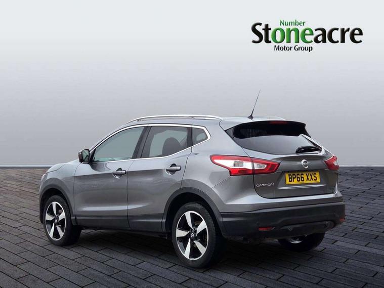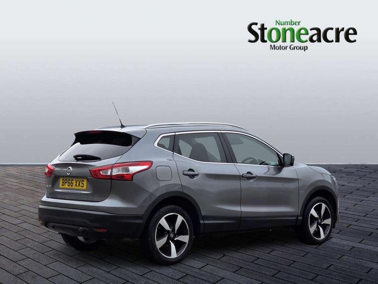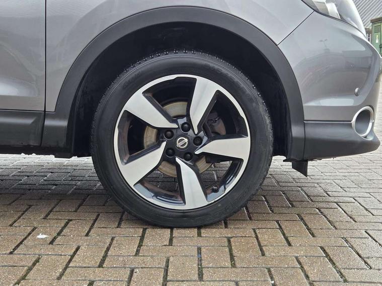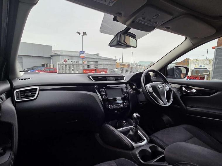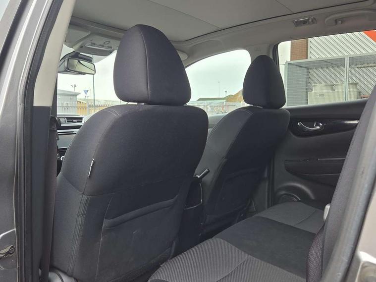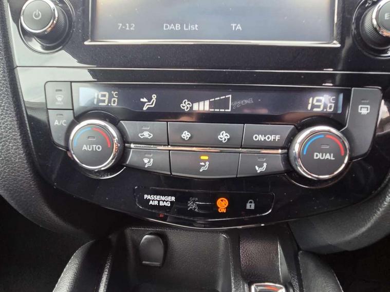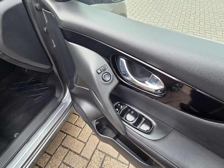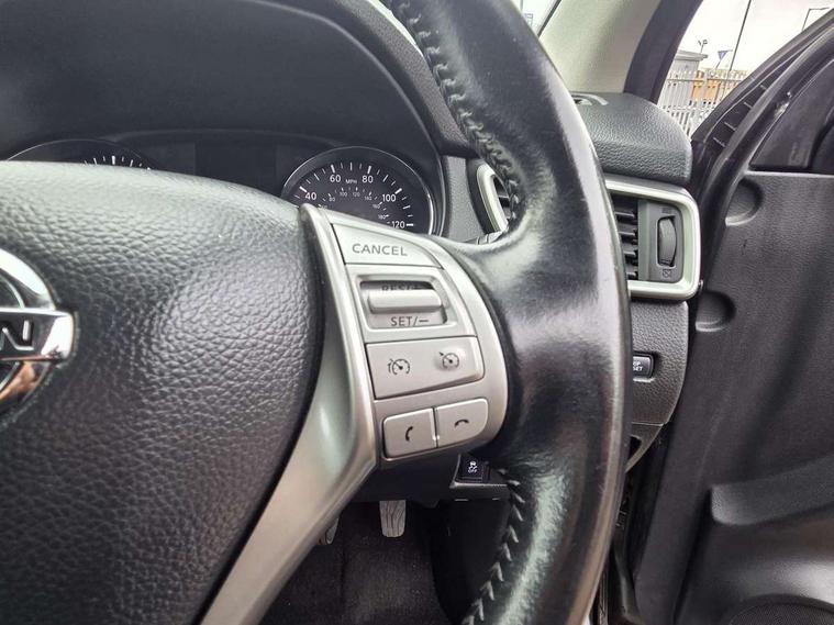 5" TFT driver information centre, 7" touch screen, Around View Monitor, Bluetooth phone integration system, Cruise control, Front and rear parking sensors, Lane departure warning system, Nissan connect sat nav system, Push button starter, Service interval indicator, Speed limiter, Speed sensitive power steering, Traffic sign recognition, Trip computer, 6 speakers, DAB radio/CD player, Steering wheel mounted audio controls, USB/aux input socket, 2 speed wipers+variable intermittent wipe, Automatic headlamp activation, Black honeycomb front grille, Body colour bumpers, Body colour door mirrors and handles, Chrome window surround, Electric folding and heated door mirrors, Electric front/rear windows, Front fog lights with chrome surrounds, High beam assist, Interior mirror with auto anti dazzle, LED daytime running lights, Rain sensor windscreen wipers, Rear privacy glass, Rear wiper, 12V socket, 60/40 split folding rear seat, Ambient interior lighting, Cloth upholstery, Driver's lumbar support, Driver/passenger front seatback pockets, Dual zone climate control, Footwell ambient lighting, Front armrest, Front cupholders x 2, Front headrests, Front seat belt pre-tensioners with load limiters, Height adjustable driver's seat, Height adjustable passenger seat with lumbar support, Illuminated glovebox, Isofix child seat preparation, Leather gearknob, Leather steering wheel, Luggage area divider, Map reading lamp, Pollen filter, Rake/reach adjustable steering wheel, Rear armrest with 2 cupholders, Rear headrests, ABS, brake assist and EBD, Active Trace Control, Child locks on rear doors, Curtain airbags, Driver/front passenger airbag, Electronic parking brake, ESP + traction control, Forward emergency braking, Height adjustable front seatbelts, Hill start assist, Side airbags, Three 3 point rear seatbelts, Tyre pressure monitoring system, Warning triangle and first aid kit, Alarm, Immobiliser, Intelligent Key, Remote central locking, 18" Diamond cut alloy wheels, Tyre puncture repair kit,