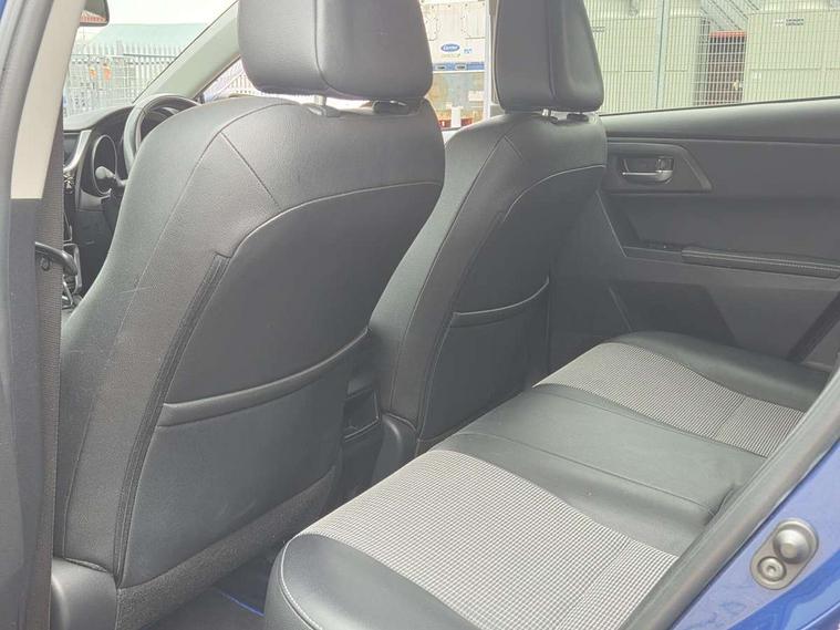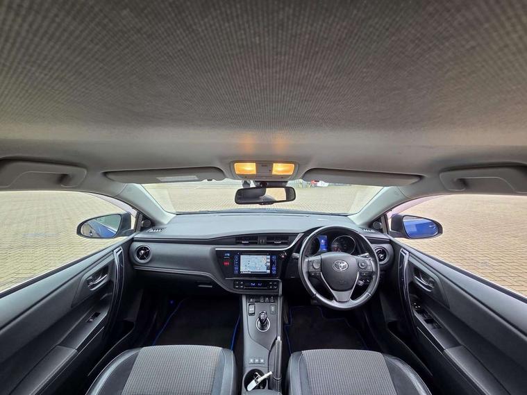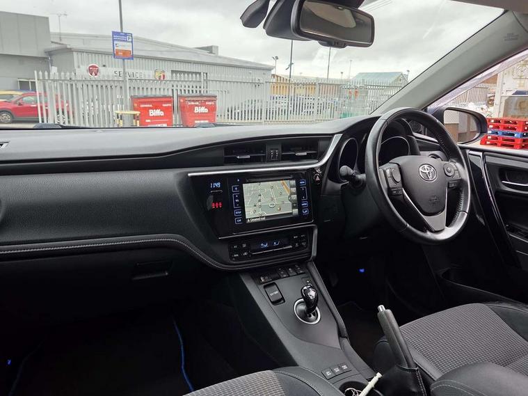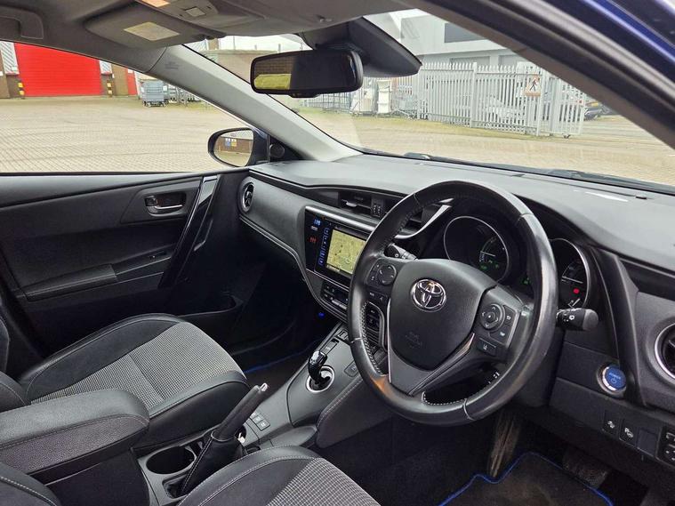 Cruise control, Forward collision warning, Intelligent parking assist, Lane departure warning system, PAS, Rear view camera, Touch 2 Go navigation system, 6 speakers, Bluetooth connectivity including audio streaming, DAB Digital radio, Radio/CD + MP3, USB/aux input socket, Auto dimming rear view mirror, Auto high beam, Body colour bumpers, Body colour door mirrors, Chrome bars on lower front grille, Chrome fog lamp bezel, Dusk sensor, Electric front windows, Electric rear windows, Electrically retractable door mirrors, Front fog lights, LED daytime running lights, LED Headlights, LED rear lights, Lower grille finisher - Piano black, Privacy glass, Rain sensor, Rear wiper, Drivers/passenger heated seats, Dual zone automatic air conditioning, Electric lumbar support, Front and rear headrests, Isofix child seat preparation, Leather gear knob, Leather steering wheel, Newport cloth/leather upholstery, Parking pack - Auris, 3x3 point rear seatbelts, ABS/EBD, Collision mitigation braking system, Driver/Front Passenger airbags, Drivers knee airbag, Emergency brake assist, Front and rear curtain airbags, Front lateral airbags, Hill start assist, Passenger airbag deactivate switch, Road sign information display, Seatbelt pretensioners and force limiters, Seatbelt warning, Vehicle stability control + traction control + brake assist, Smart entry + Smart start, Black instrument panel, Space saver spare wheel,