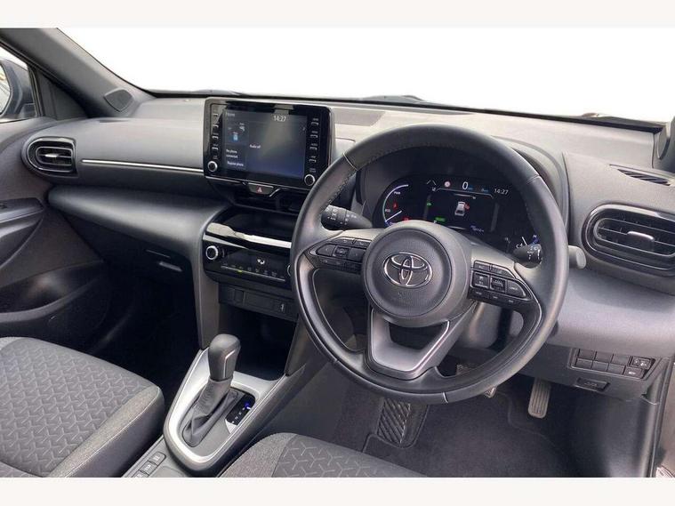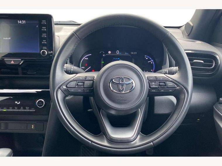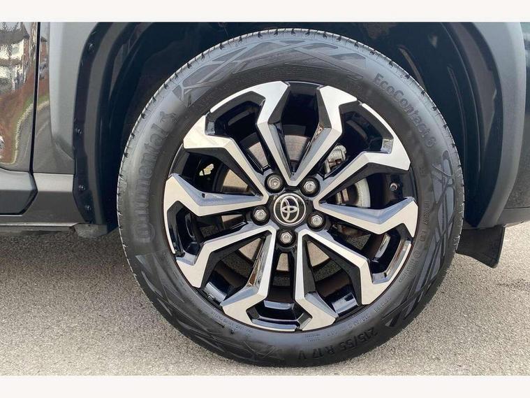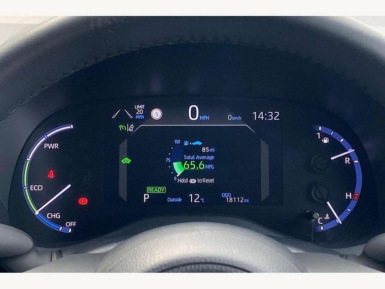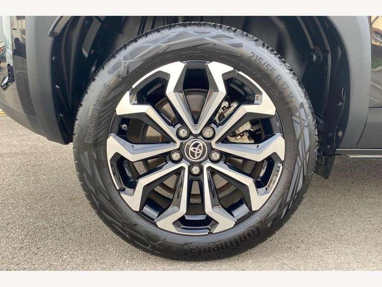 7" Multi information display screen, 8" Toyota touch 2 multimedia system with Smartphone integration with Apple CarPlay and Android auto, Adjustable speed limiter, Bluetooth connectivity, Driver attention alert system, eCall emergency system, Electric power steering, Full range intelligent adaptive cruise control, Hybrid system indicator, Key reminder warning, Lane trace assist, Multimedia, audio, telephone and voice recognition switches on steering wheel, My T Connected services, Pre-collision system enhanced with emergency steering assist, Reversing camera, Road sign assist - RSA, Steering assisted vehicle stability control, 6 speakers, DAB Digital radio, USB connection, 3rd brake light, Acoustic windscreen glass, Aluminium roof rails, Anti-jam protection on power windows, Auto high beam [AHB] with on/off switch, Automatic headlights, Black lower front grille, Black Shark-fin antenna, Black upper front grille, Black wheel arch mouldings, Body colour door handles, Body colour front bumper, Body colour rear bumper, Electric adjustable heated door mirrors, Follow me home headlights, Front and rear electric windows with auto up/down function, Front intermittent wipers, Headlight cut off reminder, Indicators integrated on door mirrors, Intermittent rear wiper, LED daytime running lights guide, LED front fog lights, LED front light guide, LED Indicators, LED projector headlights, LED rear light guide, Manual headlight levelling, Manually retractable door mirrors, Noise reduction layer on windscreen, Privacy glass, Rain sensor, Rear LED lights with sequential indicators, Rear side wing doors, Rear spoiler, Rear window defogger, 12v power outlet - front, 2x Rear coat hooks, 3 seat bench in 2nd row, 3 spoke leather steering wheel, 40:20:40 split folding rear bench seat, Adjustable speed limiter switch on steering wheel, Auto air conditioning, Black roof lining, Boot light, Central armrest, Centre console in light blue ambent lighting, Driver and front passenger personal lights, Fabric door trim, Fabric upholstery, Footwell in light blue ambient lighting, Front console box, Front cup holders, Front head restraints, Glovebox, Height adjustable driver's seat, Height adjustable front passenger seat, Hooks for luggage holding belts, ISOFIX child restraint system, Lane departure alert switch on steering control, Leather gearshift, Light blue ambient lighting on front doors, Manual telescopic and tilting steering wheel, Mirror on driver and passenger sun visor, Pollen air filter, Rear cup holders, Rear head restraints, Single front passenger seat, Soft tonneau cover, 3x3 point rear seat belts, ABS+EBD+Brake assist, Driver and passenger central airbags, Driver and passenger front airbags, Driver and passenger side airbags, Electronic parking brake, Emergency brake light system (EBS), Front seat belt reminder, Hill start assist control (HAC), Passenger airbag on/off switch, Pre-collision system with pedestrian and cyclist detection, Rear door child safety locks, Rear passenger side airbags, Rear seat belt reminder, Traction control, Tyre pressure warning system, Immobiliser, Intrusion alarm, Keyless smart entry with push button start, Power door locks, Power passenger window lock, Remote door lock, Tyre repair kit,