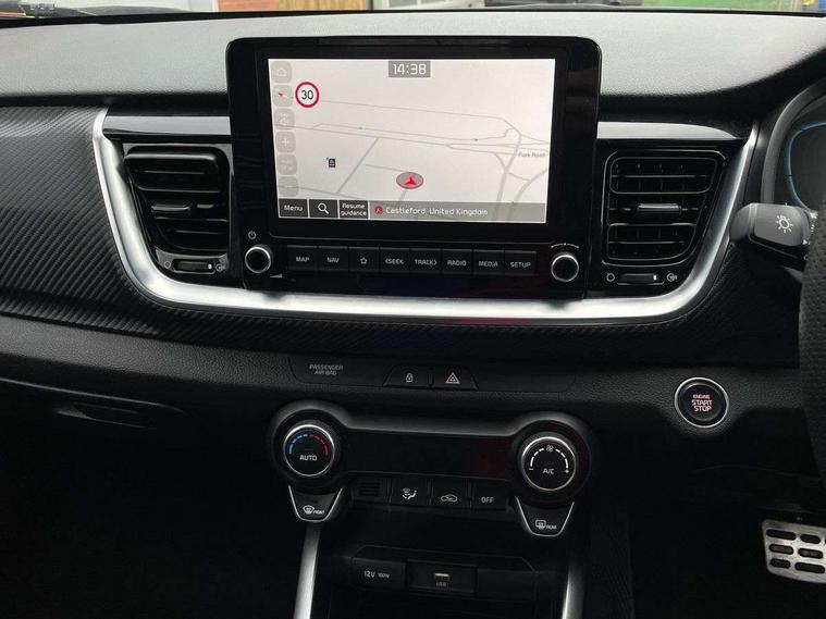 4.2" supervision colour cluster display, 8" touchscreen navigation, Apple car play/Android Auto with voice control, Blind spot collision avoidance assist, Blind spot collision warning, Drive mode selector, Electric power steering, Emergency call service, Emergency stop signalling system, External temperature display, Forward Collision-Avoidance Assist (FCA) - City/Pedestrian/Cyclist/Junction, Front parking sensors, Intelligent speed limit assist, Intelligent speed limit warning, Lane follow assist, Lane keeping assist system (LKAS), Driver attention warning (DAW) and High beam assist (HBA), Rear parking sensor, Reversing camera system, Smart cruise control with stop and go functionality, Speed limiter, Trip computer, Intelligent Stop and Go, Audio system with 6 speakers, Bluetooth with music streaming, Front USB port, Steering wheel mounted controls, All round electric windows with drivers auto up/down function, Auto dimming rear view mirror, Automatic defog system, Automatic headlights control, Black rear roof spoiler with high mounted LED braking light, Black side sill, door garnish and wheel arch trims, Black/body colour bumpers, Body coloured exterior door handles, Chrome side window trim, Electrically adjustable/heated/folding door mirrors with LED indicators, Front and rear silver skid plates, Gloss black door mirrors with matt black lower housing, GT-Line body kit, Headlight levelling device, Heated rear window, High gloss black radiator grille, LED Bi-function projection headlights with static bending, LED daytime running lights, LED front fog lights, LED position light, LED rear combination lights, Privacy glass - Rear windows and tailgate, Rain sensing front wipers, Rear fog lights, Rear side wing doors, Rear wash/wipe, Roof rails, Shark fin antenna, Solar windshield glass, Speed variable front wipers, Tinted glass, Welcome and follow-me home light functionality, Windscreen Washer Level Warning, 12V power point front, 3 seat bench in 2nd row, 60/40 split folding rear seat, Air filter, All-round height adjustable headrests, Alloy pedals, Aluminium pedals, Automatic air conditioning, Centre armrest storage box, Centre console with cupholders, Cloth and artificial leather upholstery, D-Cut perforated leather trimmed steering wheel, Dash illumination dimmer switch, Driver's seat height adjuster, Front and centre cabin lights, Front and rear door map pockets with bottle holder, Front and rear door storage, Gear shift indicator, Glovebox illumination, GT-Line Interior Styling, Heated front seats, Heated steering wheel, ISOFIX Child seat top tethers and anchor fixings outer rear seats, Leather trimmed gearshift, Luggage area light, Luggage area parcel shelf, Luggage net with hooks, Overhead console lamp, Overhead console with sunglasses cases, Passenger front seatback pockets, Passenger seat height adjuster, Rear USB charging port, Satin chrome interior door handles, Single front passenger seat, Sunvisors with vanity mirror illumination (Driver and front passenger), Tilt/telescopic adjustable steering wheel, ABS with Electronic Brakeforce Distribution (EBD) and Brake Assist System (BAS), All round 3-point seatbelts, Electronic stability control (ESC) and vehicle stability management (VSM), Front passenger airbag cut-off switch, Front seatbelt pretensioners + load limiters, Height adjustable front seatbelts, Hill start assist control (HAC), Impact sensing auto door unlocking, Manual child lock in rear doors, Rear airbags, Rear seat Occupancy alert, Seatbelt reminder warning, Twin curtain airbags, Twin front airbags, Twin front side airbags, Tyre pressure monitoring system, Alarm system, Customisable automatic door unlocking, Door deadlocks, Engine immobiliser, Locking wheel nuts, Smart key with engine start/stop button, Speed sensitive auto door locking, Visible vehicle identification number, High gloss black centre fascia, 17" GT-Line alloy wheels, Tyre mobility kit,