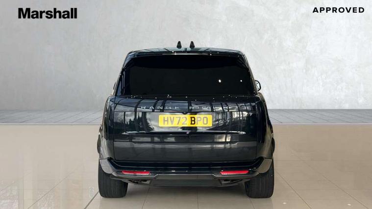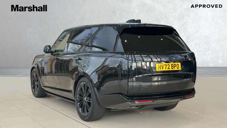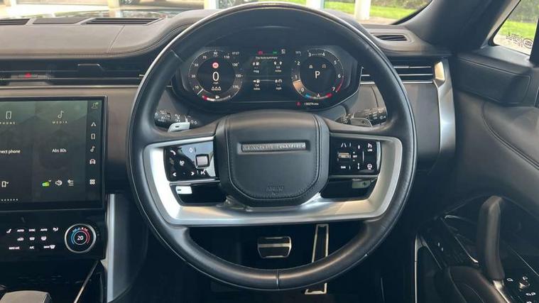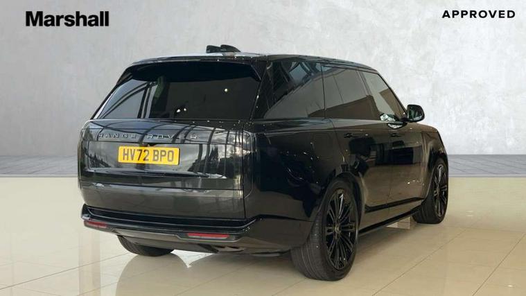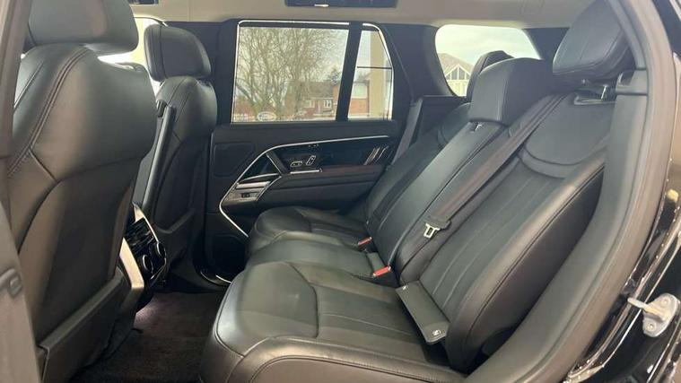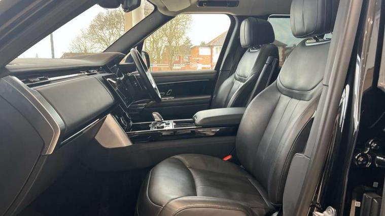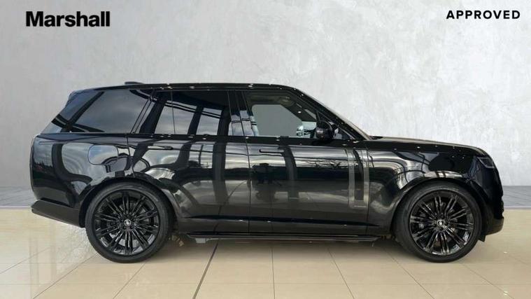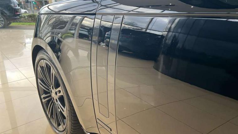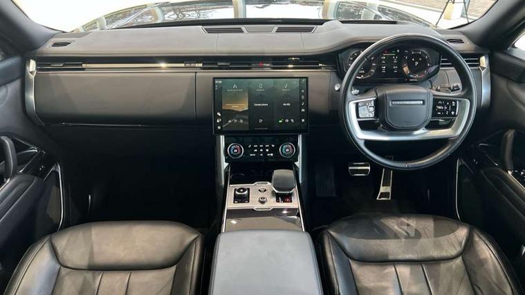 13.1" Touchscreen, 3D surround camera inc frwd traffic detection, vehicle clearance guidance, 3D view, clearsight ground view, manoevure light, 360 parking aid, wade sensing, Adaptive cruise control with steering assist, All Terrain Info Centre, All wheel steering, Android Auto, Apple car play, Blind spot assist, Bluetooth connectivity streaming, Configurable programs, Driver condition response, Eco mode, Electric power assisted steering (EPAS), Emergency call service, Front and rear parking aid, Head up Display, Interactive driver display, Lane keep assist, Powered gesture tailgate/boot lid, Rear collision monitor, Rear traffic monitor, Remote, Traffic sign recognition with adaptive speed limiter, Wi-Fi Enabled with data plan, Wireless device charging with phone signal booster, 8 speed automatic transmission, Active damper technology system, Adaptive dynamics, All terrain progress control, All Wheel Drive (AWD), Automatic access height, Electronic active differential with torque vectoring by braking, Electronic air suspension with dynamic response, Terrain Response 2 Auto, Twin speed transfer box, Digital Audio Broadcast radio-DAB, Meridian 1600W signature sound system, Pivi pro including smart settings, Connected navigation pro, nuance speech, USB socket, Acoustic laminated windscreen, Animated directional indicators, Automatic headlights, Automatic levelling headlights, Centre high mounted stop light, ClearSight interior rear view mirror, Electric windows with one touch open/close and anti trap, Flush deployable exterior door handles, Front and rear recovery eyes, Front fog lights, Headlamp power wash, Heated rear window, Heated washer jets, Illuminated metal treadplates with Autobiography script, Laminated front and rear side glass, LED tail lights, Power fold, auto-dimming, heated door mirrors with approach lights, Rain sensing windscreen wipers, Rear boot, Rear fog lights, Rear side wing doors, Rear wash/wipe, Side repeater indicators in mirror, Solar attenuating windscreen, Trailer stability assist, Winter wiper park position, 12V power sockets, 3 seat bench in 2nd row, Air quality sensor, Auto folding loadspace cover, Bright metal pedals, Cabin air purification pro, Cabin lighting, Customer configurable single point entry, Driver and passenger front seat armrests, Easy boot loading, Ebony Carpet, Electric rear side window sunblinds, Four zone climate control, Front and rear cupholders, Front and rear grab handles, Front head restraints, Gearshift paddles, Heated steering wheel, Hook in load space, Loadspace light, Luggage tie down in loadspace, Multifunction steering wheel, Rear centre armrest, Rear head restraints, Rear ISOFIX, Single front passenger seat, Soft close doors, SV bespoke carpet mats, Twin blade sunvisors with Illuminated vanity mirrors, Upper and lower glovebox, Versatile loadspace floor in tailgate, Online pack with data plan - Range Rover, 3x3 point rear seat belts, Anti-lock braking system (ABS), Black brake calipers, Brake hold function, Cornering brake control (CBC), Customer configurable autolock, DSC - Dynamic Stability Control, Electronic brake force distribution, Electronic parking brake, Electronic traction control, Emergency brake assist, Emergency braking, Front airbags with passenger seat occupant detector, Front side airbags, Hill descent control, Hill launch assist, Illuminated seat belt buckles, Low traction launch, Occupant protection assist, Power operated child locks, Roll stability control, Tyre pressure monitoring system (TPMS), Immobiliser, Intrusion sensor and alarm, Keyless entry, Locking wheel nuts, Remote central locking, Noble chrome controls,