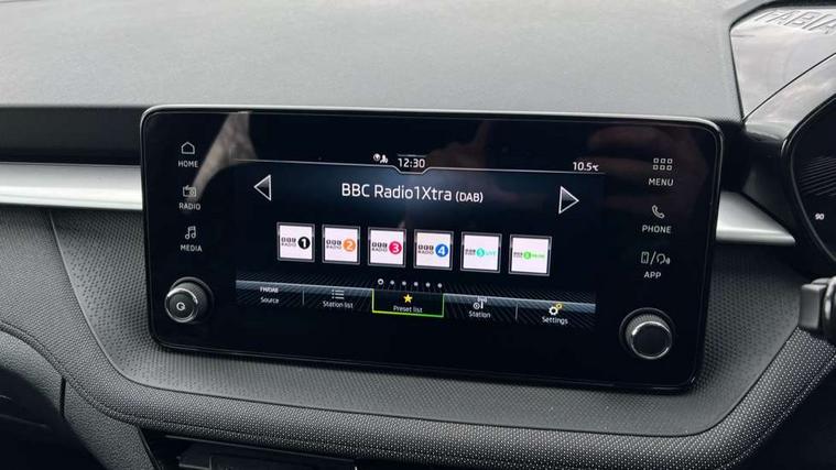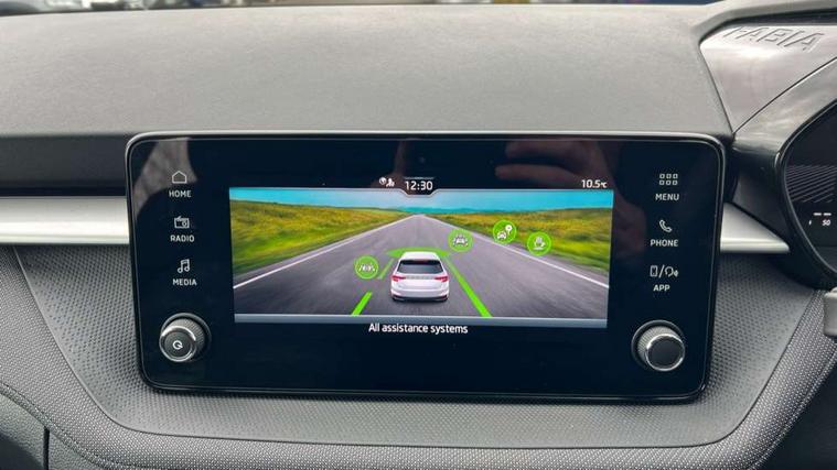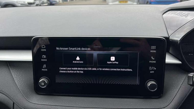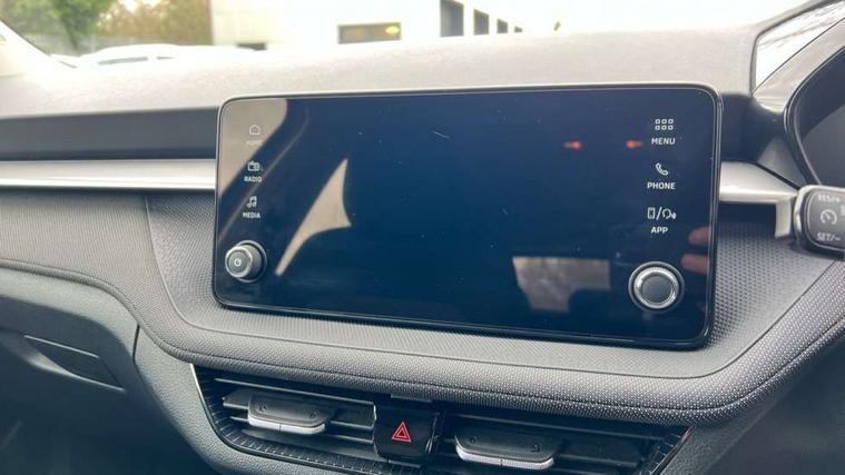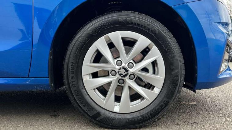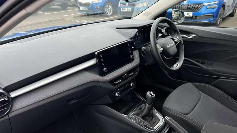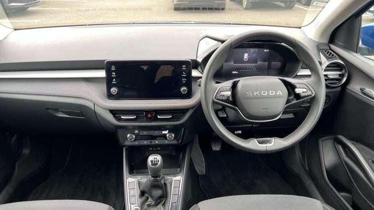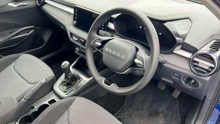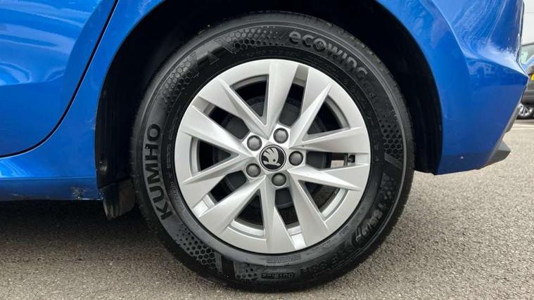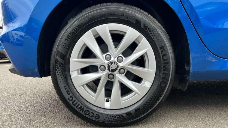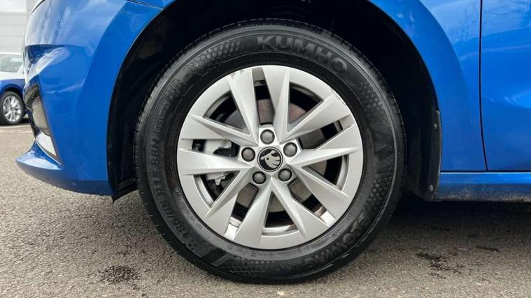 8" Digital instrument display, Advanced driver attention and drowsiness monitor, Bluetooth connection, Electromechanical power steering, Exterior temperature gauge, Service interval indicator, Traffic sign recognition, Wireless SmartLink for Apple CarPlay and Android Auto, 6 Speakers (4 in front and 2 in rear), 8.25" Skoda infotainment touchscreen display, Auxiliary socket for external MP3 player, DAB digital radio reception, Auto dimming rear view mirror, Body colour door mirrors, Body coloured bumpers, Door mirror integrated indicators, Front and rear electric windows, Front window wiper intermittent control, Headlight range control - Automatic, Ice scraper in fuel cap, LED 3rd brake light, LED daytime running lights with coming and leaving home feature, LED rear lights, Rear LED fog light, Rear side wing doors, Rear window wiper with washing nozzles, Roof mounted spoiler, SKODA tailgate lettering in chrome, Unique dark chrome design logo on alloy wheels, 2 reading lights in front and 2 reading lights in rear, 3 rear headrests, Backrest split and folding, Central console with removable cup holder and storage box, Chrome handbrake release button, Dual zone air conditioning with climatronic electronic control, Fabric upholstery, Front centre armrest, Gearshift knob/handle in leather, Grain satin black interior door handles, Hand brake lever handle in leather, Height adjustable front headrests, Height adjustable front seats, Height adjustable steering wheel, ISOFIX and TopTether anchorage points to the outer rear seats, ISOFIX and TopTether on the front passenger seat, Luggage compartment lighting, Manually adjustable lumbar support in front seats, Pollen filter, Rear seat bench unsplit, Single front passenger seat, Skoda lettering on steering wheel, Storm grey headlining, Sun visors with mirror and airbag label on passenger side, Textile floor mats, Ticket holder, Umbrella in drivers door, 3-point height adjustable front seats belts with pretensioner and force limiter, Automatic warning lights in case of crash, Driver and passengers airbag with switch off function, e-Call+, ESC including ABS, MSR, ASR, EDS, HBA and XDS, Front and rear seat belt warning, FRONT ASSIST (AEB City and AEB Inter Urban), Front side airbags, Head airbags, One tone horn, Pedestrian protection, Three rear 3-points safety seat belts with pretensioner and force limiter including stop function for outer rear seat belts, Tyre pressure monitoring system, Anti-theft alarm system including immobiliser, interior monitoring, backup horn, and towing protection, Central locking with radio remote control, interior controls, SAFE function and 2 foldable keys, Black painted air vents, Grain satin black central console cover, Metallic grey upper decorative trim, Satin black door and side trim panel in front, Textile Kota grey lower decorative inserts, Anti-theft wheel bolts protection, Super-low rolling resistance tyres,