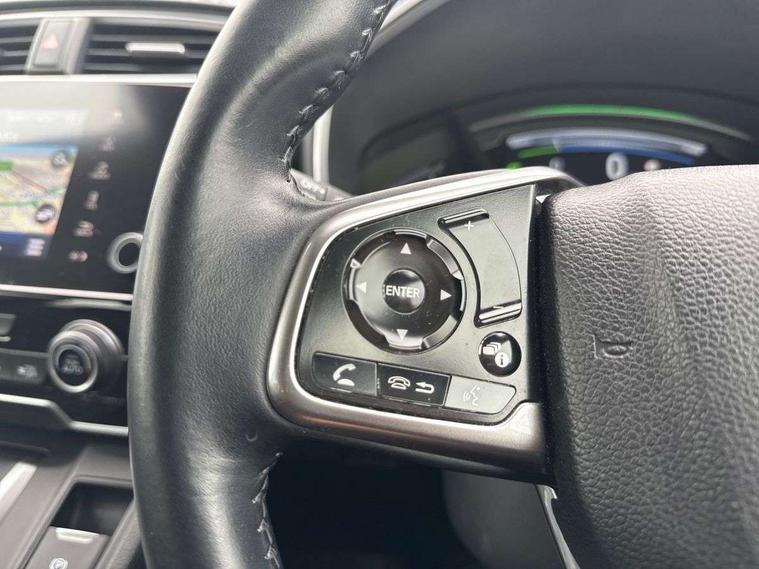 Adaptive cruise control, Agile handling assist, Bluetooth hands free telephone connection, Economy mode, Electric power steering, Emergency stop signalling system, Forward collision warning, Front and rear parking sensors, Honda CONNECT with GARMIN Navigation + 7" touchscreen, DAB radio, Apple CarPlay, Android Auto, Aha app integration and internet browsing, Intelligent multi info display, Lane departure warning system, Lane keep assist system, Low speed following, Rear view camera, Road departure mitigation, Speed limiter, Traffic sign recognition, Vehicle stability assist, 2 USB sockets in rear, 2x USB sockets in front, 8 speakers, DAB Digital radio, Steering wheel mounted controls, Subwoofer, Aspheric door mirrors, Auto dimming rear view mirror, Automatic headlights with dusk sensor, Body colour bumpers, Body colour door handles, Door mirrors tilt when reversing, Electric front windows/one touch facility, Electric rear windows + one touch facility, Electrically adjustable and heated door mirrors, Electrically retractable door mirrors, High beam assist, LED daytime running lights, LED front fog lights, LED Headlights, LED rear lights, Rain sensor, Rear wiper, Shark fin roof aerial, Welcome home function, 60/40 split folding rear seat, Accessory sockets, Cargo hooks, Cloth upholstery, Courtesy lights, Driver's electric adjustable lumbar support, Driver/passenger front seatback pockets, Driver/passenger sunvisors with illuminated vanity mirrors, Dual zone automatic climate control, Front centre armrest, Front map lights, Height adjustable driver's seat, Hybrid emblem, Illuminated glovebox, Instrument panel with garnish wood film, Isofix child seat preparation, Leather steering wheel, Paddle shift controls, Rear air vents, Rear centre armrest, Rear headrests, Rear reading lights, Rear seat conversation mirror, Silver interior door handles, Sunglasses holder with mirror, Tilt/telescopic adjustable steering wheel, Tonneau cover, Trunk light, 5 x 3 point seatbelts, ABS/EBD, Anti-whiplash front headrests, Brake assist function, Collision mitigation braking system, Deflation detection system, Driver airbag, Electronic parking brake with auto hold, Front and rear curtain airbags, Front side airbags, Hill start assist, Passenger airbag deactivate switch, Honda super locks, Immobiliser, Remote keyless entry, Security alarm, Ultrasonic sensor and tilt sensor, Tyre repair kit,