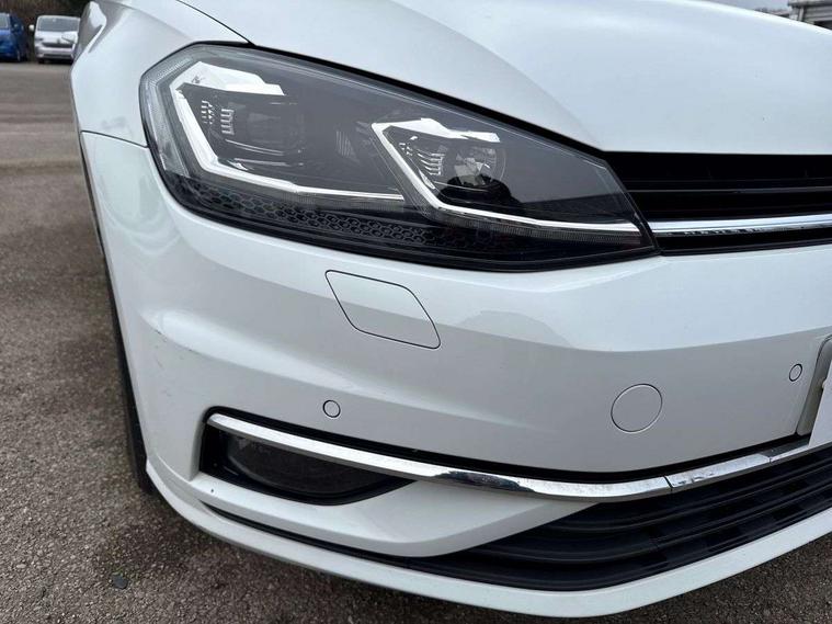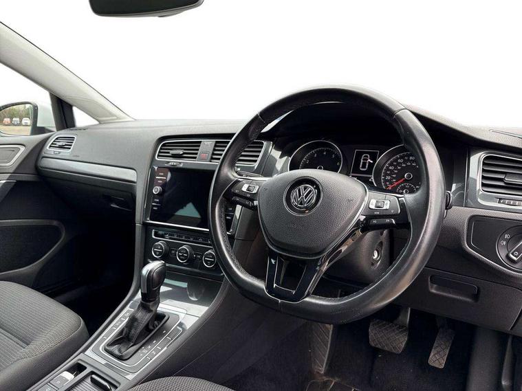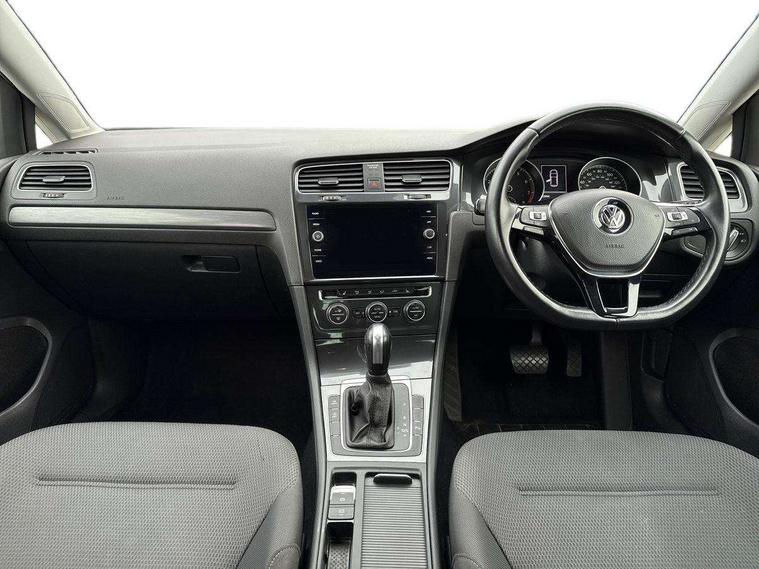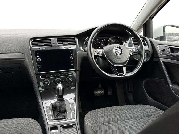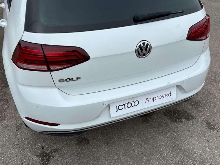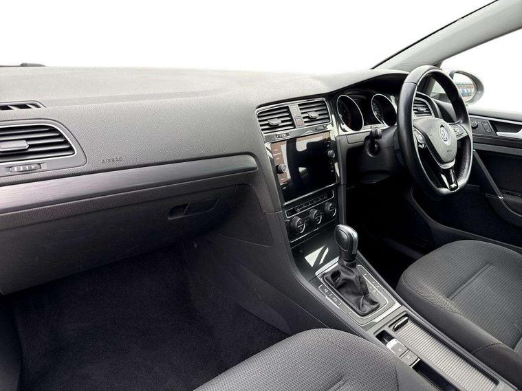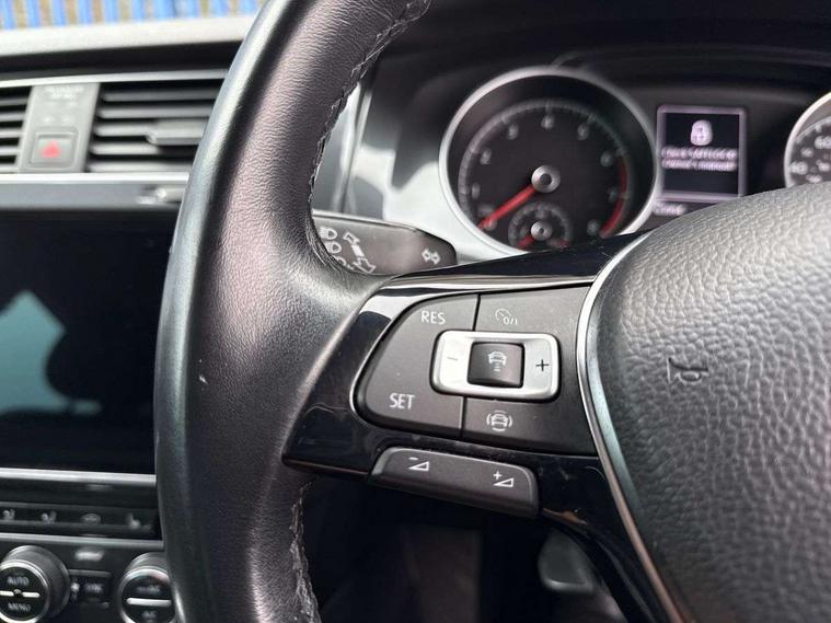 'Lights On' Reminder warning buzzer, ACC - Adaptive cruise control with front assist, forward collision warning, distance monitoring, city emergency brake and speed limiter, Bluetooth telephone and audio connection for compatible devices, Brake pad wear indicator warning light, Driver alert system, Driving Mode Selection with four preset modes - Eco, normal, sport or individual modes, Multifunction computer with visual gear change recommendation for fuel consumption, Power assisted speed sensitive electro-mechanical steering, Push tank flap, Speed limit display, Speedo, rev counter, electronic odometer, trip, service interval display, exterior temperature and fuel gauge, Stop/start system, Think blue trainer driver tips and journey analysis, Warning buzzer and light for front seatbelts unfastened, Battery regeneration during braking, XDS electronic differential lock, Composition media system, DAB Digital radio receiver, Driver Personalisation profile selection, MP3/WMA compatability, Multi device interface (MDI) via USB connection, Premium USB cable in choice of either Apple or Android smartphone compatibility, SMS Functionality, Title and cover art display, USB and SD card connectivity, Volkswagen media control, Black front air intake and radiator grille with chrome insert, Black rear diffuser, Body colour bumpers, Body colour door handles, Body colour door mirrors with integrated indicators, Dusk sensor + automatic driving lights, Electric front windows, Electric rear windows, Electrically adjustable and heated door mirrors, Fully galvanised body, Heated rear windscreen, High level 3rd brake light incorporating LED Technology, LED front fog lights with static cornering light function, Range adjustable headlights via infotainment system with LED daytime running lights, Rear fog lamp, Rear number plate lights incorporating LED technology, Rear tinted glass 65% light absorbing from B pillar backwards, Rear window aerial, Rear window wash/wipe with intermittent wipe, Reflectors in all doors, Tailgate with integrated rear roof spoiler, Windscreen wipers/ intermittent wipe + 4 position delay, 12V socket in luggage compartment, 3 rear headrests, 4 load lashing points in luggage compartment, 60/40 split folding rear seat backrest, Bag hook in luggage compartment x 2, Climate control - 2 zone electronic air conditioning with automatic air recirculation and allergy filter, Cooled glovebox, Cover for storage compartment in centre, Dust/pollen filter, Front and rear reading lights X 2, Front centre armrest with storage compartment and two rear air vents, Front seat back storage pockets, Grab handles front x 2, rear x 2 with integrated coat hooks, Height and reach adjustable steering wheel, Illuminated vanity mirrors, Instrument lighting white adjustable panel illumination, Interior light delay, Isofix preparation for 2 rear child seats, Load through provision with rear centre armrest and cupholders x2, Luggage compartment lighting, Overhead storage box, Pearl grey headlining, Storage box in luggage compartment, Storage compartment in roof console with cover, Storage compartments in centre console, Storage compartments in front doors, Storage compartments in rear doors, Stowable luggage compartment cover, Sun visors, Variable boot floor, height adjustable and removable, Convenience Pack - Golf, Mirror pack - Golf, Winter pack - Golf, 3 rear three point seatbelts, Airbags - Driver's and front passenger's, curtain airbag, Driver's knee, front side impact and passenger's airbag deactivation switch, Anti-lock Braking System (ABS) with Hydraulic Brake Assist (HBA), Automatic post collision braking system, Child locks on rear doors, Driver/Passenger optimised head restraints, Electronic parking brake with auto hold, Electronic stability control (ESC) including Electronic differential lock (EDL) and ASR (Traction control) with deactivation via infotainment system, Front ventilated disc brakes and rear disc brakes, Pre crash preventive occupant protection, Three point height adjustable front seatbelts with tensioners, Tyre pressure loss indicator, Alarm with interior protection and deactivation via infotainment system, Electronic engine immobiliser, Brushed dark silver decorative inserts in dash and door panels, Chrome plated air vent surround, Chrome-plated light switch surround, Polar night black decorative inserts in centre console, Steel space saver spare wheel,