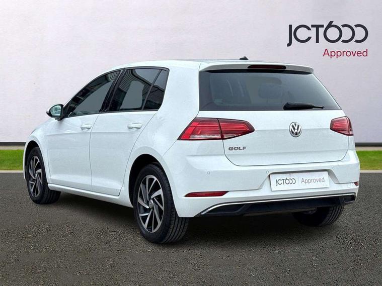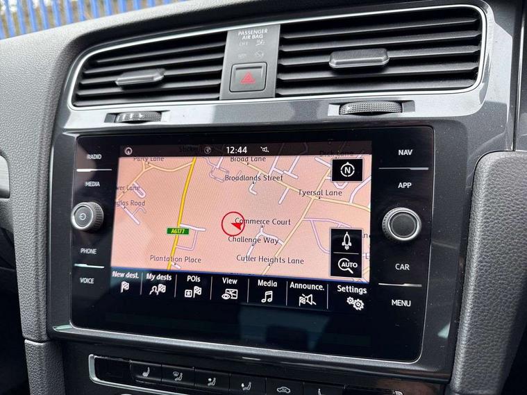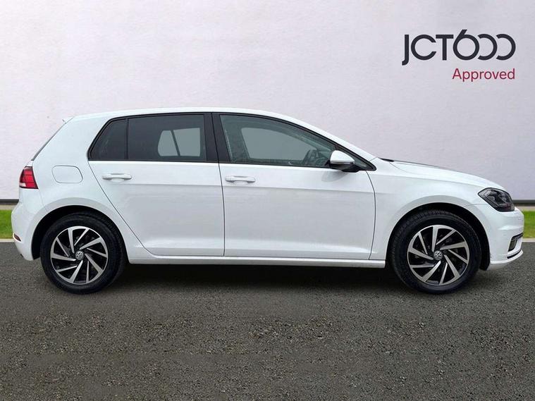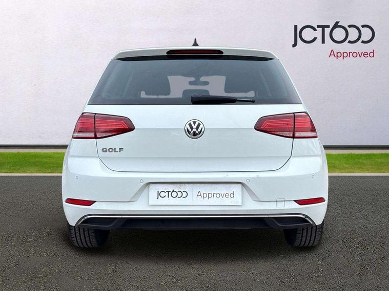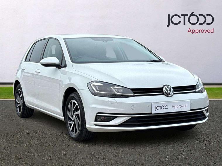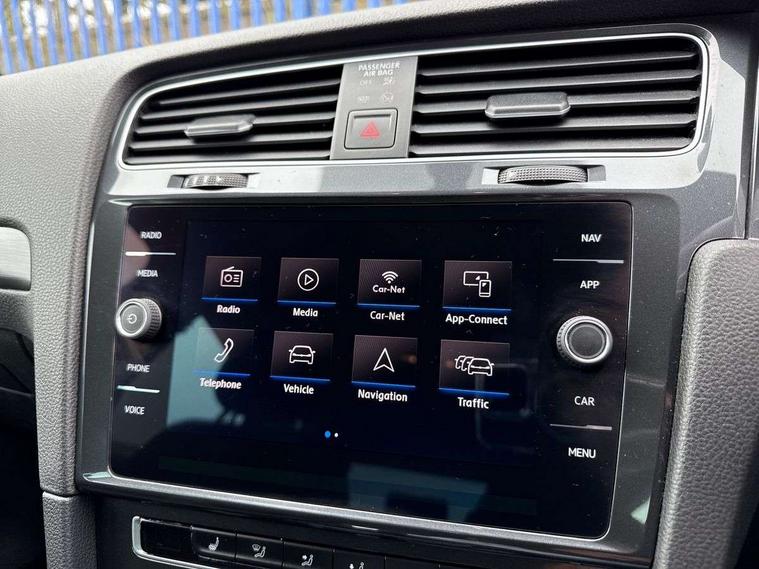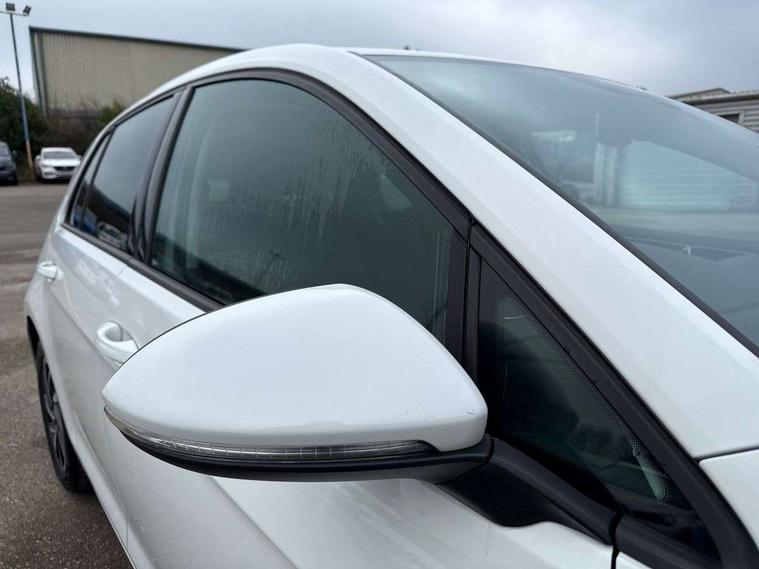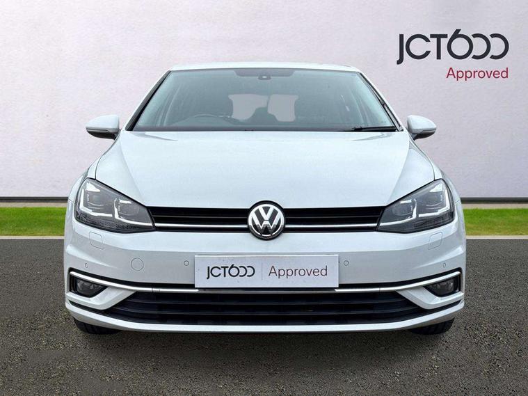'Lights On' Reminder warning buzzer, ACC - Adaptive cruise control with front assist, forward collision warning, distance monitoring, city emergency brake and speed limiter, Bluetooth telephone and audio connection for compatible devices, Brake pad wear indicator warning light, Driver alert system, Driving Mode Selection with four preset modes - Eco, normal, sport or individual modes, Multifunction computer with visual gear change recommendation for fuel consumption, Power assisted speed sensitive electro-mechanical steering, Push tank flap, Speed limit display, Speedo, rev counter, electronic odometer, trip, service interval display, exterior temperature and fuel gauge, Stop/start system, Think blue trainer driver tips and journey analysis, Warning buzzer and light for front seatbelts unfastened, Battery regeneration during braking, XDS electronic differential lock, Composition media system, DAB Digital radio receiver, Driver Personalisation profile selection, MP3/WMA compatability, Multi device interface (MDI) via USB connection, Premium USB cable in choice of either Apple or Android smartphone compatibility, SMS Functionality, Title and cover art display, USB and SD card connectivity, Volkswagen media control, Black front air intake and radiator grille with chrome insert, Black rear diffuser, Body colour bumpers, Body colour door handles, Body colour door mirrors with integrated indicators, Dusk sensor + automatic driving lights, Electric front windows, Electric rear windows, Electrically adjustable and heated door mirrors, Fully galvanised body, Heated rear windscreen, High level 3rd brake light incorporating LED Technology, LED front fog lights with static cornering light function, Range adjustable headlights via infotainment system with LED daytime running lights, Rear fog lamp, Rear number plate lights incorporating LED technology, Rear tinted glass 65% light absorbing from B pillar backwards, Rear window aerial, Rear window wash/wipe with intermittent wipe, Reflectors in all doors, Tailgate with integrated rear roof spoiler, Windscreen wipers/ intermittent wipe + 4 position delay, 12V socket in luggage compartment, 3 rear headrests, 4 load lashing points in luggage compartment, 60/40 split folding rear seat backrest, Bag hook in luggage compartment x 2, Climate control - 2 zone electronic air conditioning with automatic air recirculation and allergy filter, Cooled glovebox, Cover for storage compartment in centre, Dust/pollen filter, Front and rear reading lights X 2, Front centre armrest with storage compartment and two rear air vents, Front seat back storage pockets, Grab handles front x 2, rear x 2 with integrated coat hooks, Height and reach adjustable steering wheel, Illuminated vanity mirrors, Instrument lighting white adjustable panel illumination, Interior light delay, Isofix preparation for 2 rear child seats, Load through provision with rear centre armrest and cupholders x2, Luggage compartment lighting, Overhead storage box, Pearl grey headlining, Storage box in luggage compartment, Storage compartment in roof console with cover, Storage compartments in centre console, Storage compartments in front doors, Storage compartments in rear doors, Stowable luggage compartment cover, Sun visors, Variable boot floor, height adjustable and removable, Convenience Pack - Golf, Mirror pack - Golf, Winter pack - Golf, 3 rear three point seatbelts, Airbags - Driver's and front passenger's, curtain airbag, Driver's knee, front side impact and passenger's airbag deactivation switch, Anti-lock Braking System (ABS) with Hydraulic Brake Assist (HBA), Automatic post collision braking system, Child locks on rear doors, Driver/Passenger optimised head restraints, Electronic parking brake with auto hold, Electronic stability control (ESC) including Electronic differential lock (EDL) and ASR (Traction control) with deactivation via infotainment system, Front ventilated disc brakes and rear disc brakes, Pre crash preventive occupant protection, Three point height adjustable front seatbelts with tensioners, Tyre pressure loss indicator, Alarm with interior protection and deactivation via infotainment system, Electronic engine immobiliser, Brushed dark silver decorative inserts in dash and door panels, Chrome plated air vent surround, Chrome-plated light switch surround, Polar night black decorative inserts in centre console, Steel space saver spare wheel,