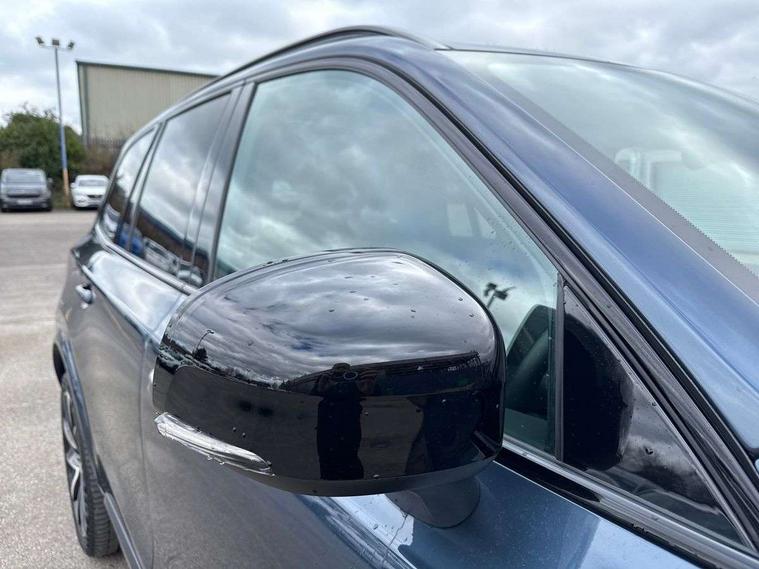 12.3" Progressive Driver Display, 360 degree surround view parking camera with side proximity sensors, 9" centre console portrait touch screen, Adjustable steering wheel force, Bluetooth hands free telephone connection, Driver alert control with lane keeping aid, Driver assistance (pilot assist and adaptive cruise control), Driver awareness - Blind spot information system with steer assist, cross traffic alert with autobrake and rear collision warning and mitigation, Emergency call service, Front and rear park assist, Google Automotive Services - Navigation with Voice recoginition and google assistant, Handsfree power tailgate opening and closing, Oncoming Lane Mitigation, Power operated tailgate, Service interval indicator, Speed limiter, Speed sensitive steering, Trip computer, Volvo on call, Wireless Mobile Phone Charger, 8 speed automatic transmission with start/stop + manual change functions, Touring chassis, DAB Radio (Digital Audio Broadcasting), Premium Sound by Harman Kardon, dirac unison, dolby pro logic II surround sound, 13 speakers/600W output and fresh air subwoofer, Steering wheel remote infotainment controls, Active bending headlights with adaptive shadow technology, Adaptive brake lights with high level LED brake lights, Auto dimming interior + exterior mirrors, Auto folding and heated power door mirrors, Automatic headlight levelling system, Automatic LED Headlights + Active high beam incorporating daytime running lights, Body colour bumpers, Front and rear power windows, Headlight cleaning system, Heated front windscreen, High gloss black door mirrors and window surround, High gloss black front and rear bumper deco, High gloss black mesh front grille with surround, Home safe and approach lighting, Integrated roof rails in high gloss black, LED front fog lights with cornering light function, Power glass tilt and slide panoramic sunroof with sun curtain, Puddle lights, Rain sensor with automatic windscreen wiper activation, Rear side wing doors, Rear wash/wipe with intermittent wipe setting, Roof antenna, Roof spoiler, Visible VIN plate, 12V socket front tunnel console, rear passenger compartment and cargo area, 2 seat bench in 3rd row, 2nd Row centre armrest with and cupholders, 3 seat bench in 2nd row, 4 zone electronic climate control with Clean zone air quality system + pollen filter, A-pillar parking ticket holder, Advanced interior air cleaner PM2.5, Air conditioning for 3rd row of seats, Ambient door and instrument panel lighting, B Pillar ventilation, Bright metal luggage threshold, Centre console cupholders and storage, Floor mats, Front and rear door pocket and front cupholder illumination, Front and rear reading lights, Theatre lighting and centre armrest storage illumination, Front footwell and side step illumination, Front headrests, Front seat cushion extensions, Heated front seats, Heated rear seats, Heated steering wheel, Height/reach adjustable steering column, Illuminated front and rear tread plates, Illuminated luggage compartment, Illuminated tailgate, Illuminated vanity mirrors + ticket holder, Illumination lockable glovebox compartment, Integrated sun curtains in rear doors, Isofix outer rear child seat preparation in 2nd row, Load protection net, Luggage compartment divider with grocery bag holder, Outboard armrest with cupholder and storage for third row passengers, Power driver seat with multi directional lumbar support and memory for seat and exterior mirrors, Power folding 2nd row headrests, Power passenger seat with multi directional lumbar support and memory, Rear footwell and side step illumination, Rear headrests, Semi automatic load cover, Single front passenger seat, Underfloor luggage compartment storage, 7 three point seatbelts, City safety with steering support includes pedestrian, cyclist and large animal detection and front collision warning with full auto brake, Drivers knee airbag, Dual stage driver/passenger airbags, First aid kit, Front seats SIPS airbags, Hill descent control - off drive mode, Hill start assist, IC (Inflatable Curtains) - Full Length, Passenger airbag cut-off switch, Power child locks on rear doors, Power parking brake with auto hold function, Road sign information display, Run off Road Mitigation, Run off Road Protection, Seatbelt reminder and pretensioners for all seats, SIPS (Side Impact Protection System), Slippery road and hazard light alert, Stability and Traction Control with Spin control, Engine Drag Control and Corner Traction Control, Tyre pressure monitoring system, Vehicle deceleration control with Anti-lock Brake System, Electronic Brake Distribution and Emergency Brake Assist, Warning triangle, WHIPS whiplash protection system - front, Anti-theft alarm including immobiliser/volume sensor + level sensor, Care key with user defined top speed, Key integrated remote control central locking + fuel flap with deadlocking system and auto open/close power windows, Keyless drive includes keyless entry and keyless start, Locking wheel nuts, Private locking for glovebox and tailgate, Tailored Instrument Panel and Door Tops with Contrast Stitching, Tempa spare wheel and jack,
