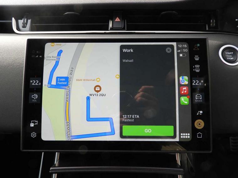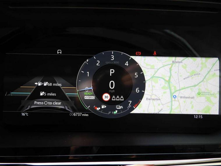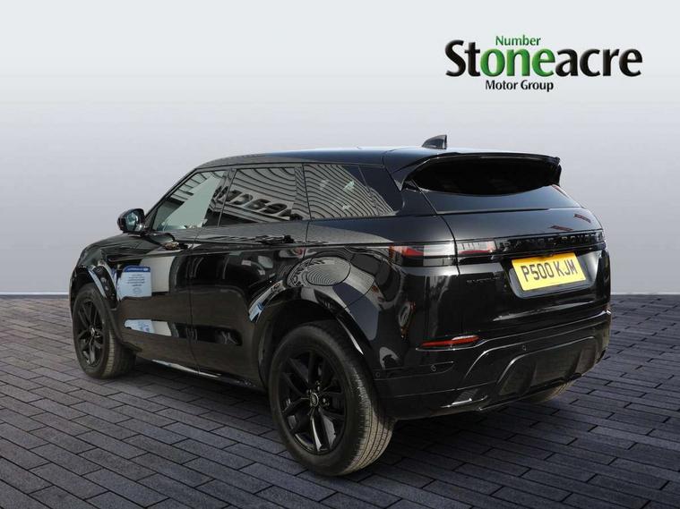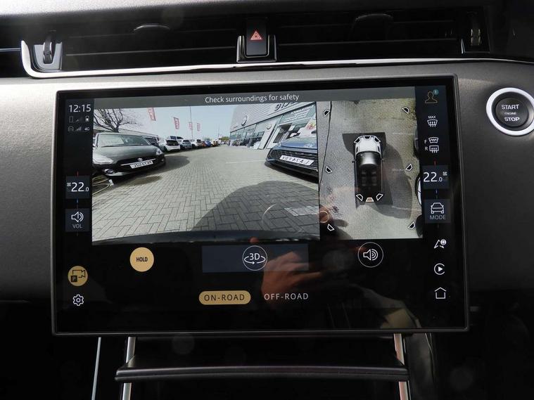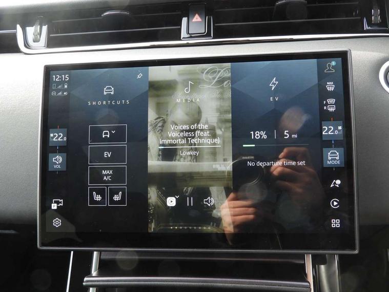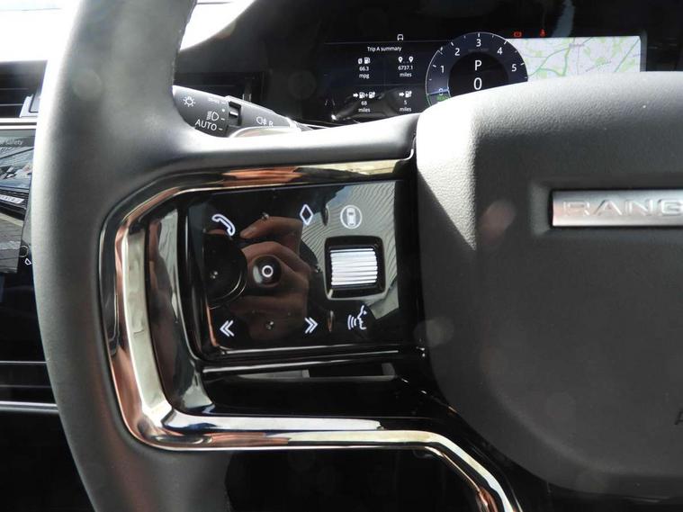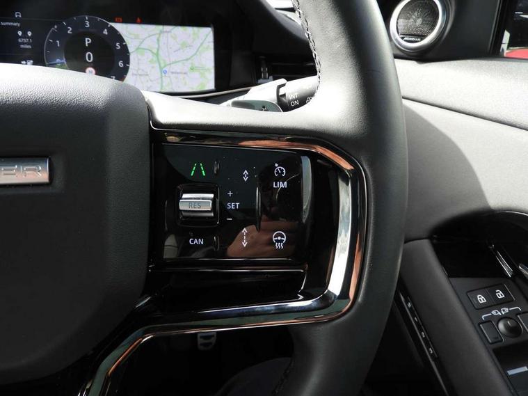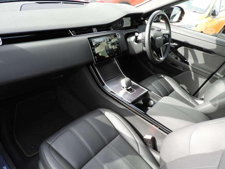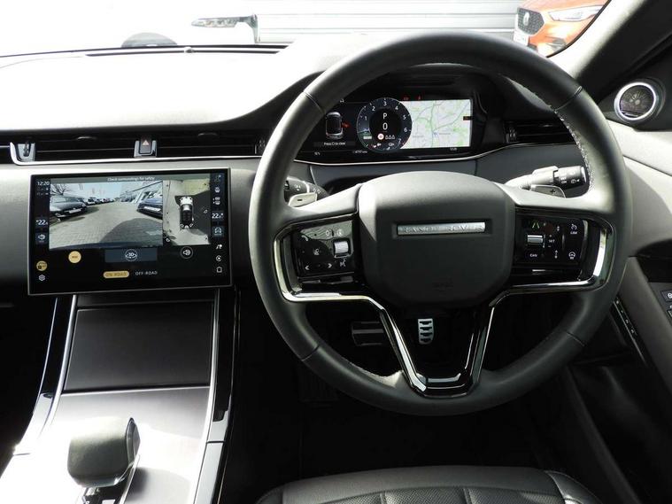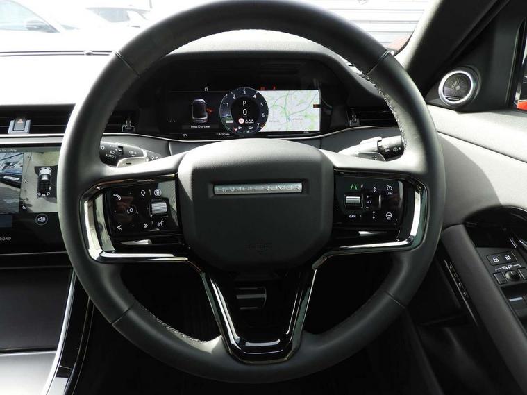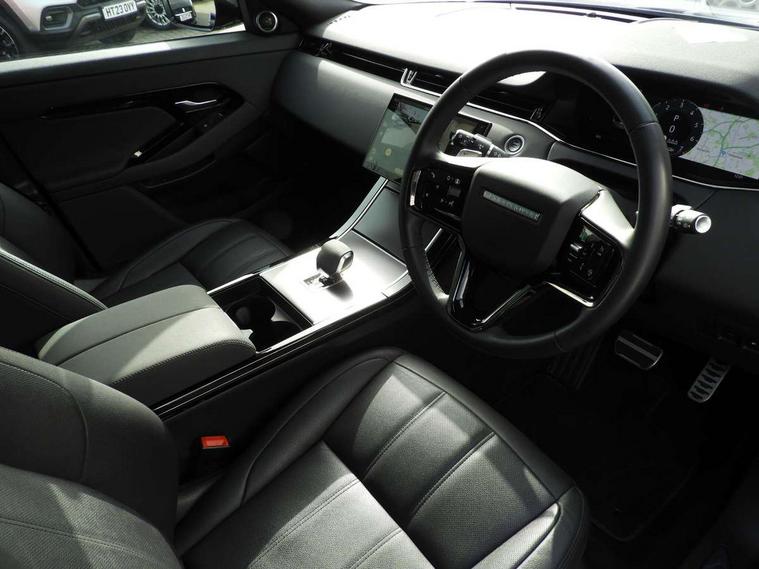 11.4" touch screen, 3D 360 degree surround camera with wade sensing, Adaptive cruise control, Android Auto, Apple car play, Blind spot assist, Bluetooth connectivity, Brake pad wear indicator warning light, Driver condition monitor, eCall emergency system, Eco mode, Electronic power assisted steering (EPAS), Front and rear parking aid, InControl remote, Interactive driver display, Land Rover InControl apps, Lane keep assist, Pivi pro connected includes diamond pivi variant, smart settings, connected navigation pro, nuance speech licence, Powered tailgate/boot lid, Rear collision monitor, Rear traffic monitor, Tailgate, Traffic sign recognition with adaptive speed limiter, Voice control system, Wireless device charging, All terrain progress control, Electric rear axle drive, Home charging cable, Large fuel tank, Passive suspension, Public charging cable, Terrain Response 2, Digital Audio Broadcast radio-DAB, Meridian sound system with 400W subwoofer and 11 speakers, Steering wheel mounted controls, Acoustic laminated windscreen, Auto dimming interior rear view mirror, Auto headlights, Auto high beam assist, Automatic headlight levelling, Black contrast roof, Electric windows with one touch open/close and anti trap, Fixed panoramic sunroof with powered sunblind, Flush deployable exterior door handles, Front and rear recovery eyes, Heated rear window with timer, Heated washer jets, Heated windscreen, LED headlights with signature DRL and LED tail Lights, Metallic paint, Power fold, auto-dimming, heated door mirrors with approach lights and auto dimming driver side, Privacy glass, Rain sensing windscreen wipers, Rear animated directional indicators, Rear fog lights, Rear side wing doors, Rear wiper, Tailgate spoiler, Third brake light, Winter wiper park position, 12 way driver memory and 10 way passenger electric front seats with 2 way manual headrest + 4 way lumbar support, 40:20:40 split folding rear seats with centre headrest and armrest, Bright metal pedals, Cabin lighting, Carpet mats, Chrome tread plates with range rover branding Includes stainless steel loadspace scuff plate with etched graphic, Customer configurable single point entry, Front and rear cupholders, Grained Leather upholstery, Heated front seats, Heated steering wheel, Isofix system on outer rear seats, Manually adjustable steering column, Overhead lighting console, Overhead stowage for sunglasses, Passive front head restraints, Rear air vents, Rear head restraints, Satin chrome gearshift paddles, Single passenger seat, Standard steering wheel with Moonlight Bezel, Sunvisors with illuminated vanity mirrors, Twin sliding front centre armrest, Two zone climate control, Black exterior styling pack - Evoque, Power socket pack 2 - Evoque, 3 rear 3 point seatbelts, Anti-lock braking system (ABS), Black brake calipers, Brake hold function, Customer configurable autolock, DSC - Dynamic Stability Control, Electronic brake force distribution, Electronic parking brake, Electronic traction control, Emergency braking, Front and rear seatbelt reminder, Hill descent control, Hill launch assist, Low traction launch, Occupant protection assist, Passenger seat occupant detector, Power operated child locks, Roll stability control, Six airbags - Driver and passenger airbags/driver knee airbag/front side airbag and curtain airbags, Torque vectoring brake, Tyre pressure monitoring system, Alarm, Immobiliser, Intrusion sensor, Keyless entry, Locking wheel nuts, Secure tracker pro, Black brushed aluminium finisher, 19" gloss black alloy wheels - Style 5136, All season tyres, Tyre repair system,