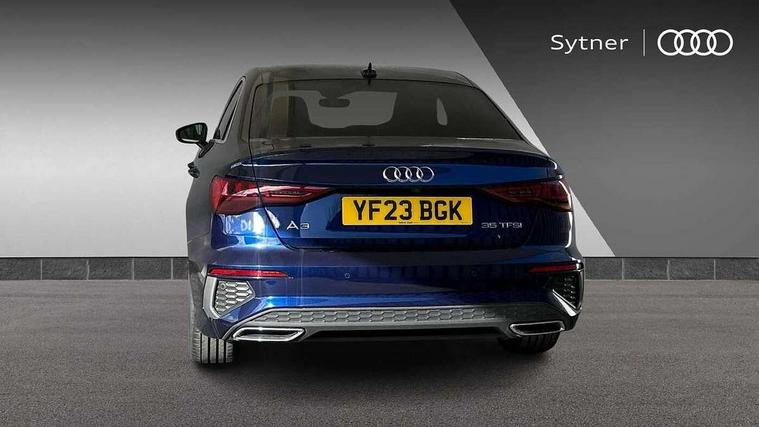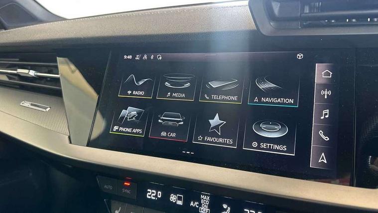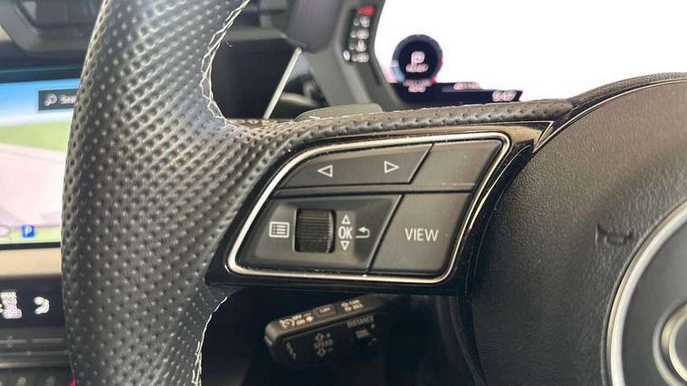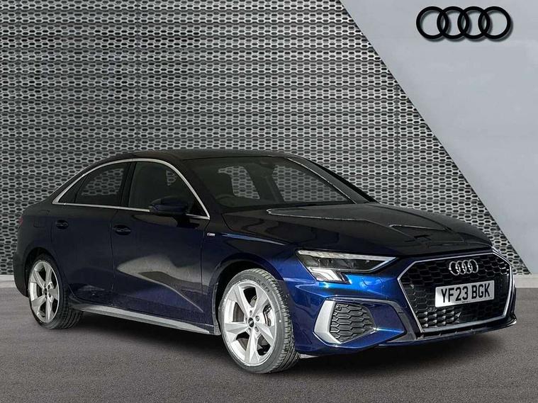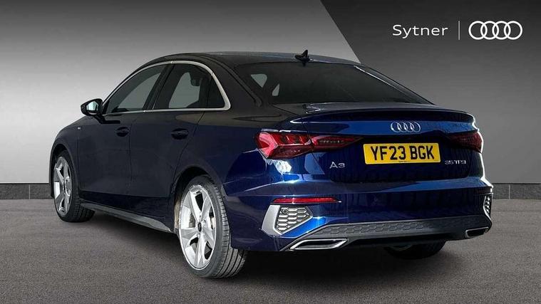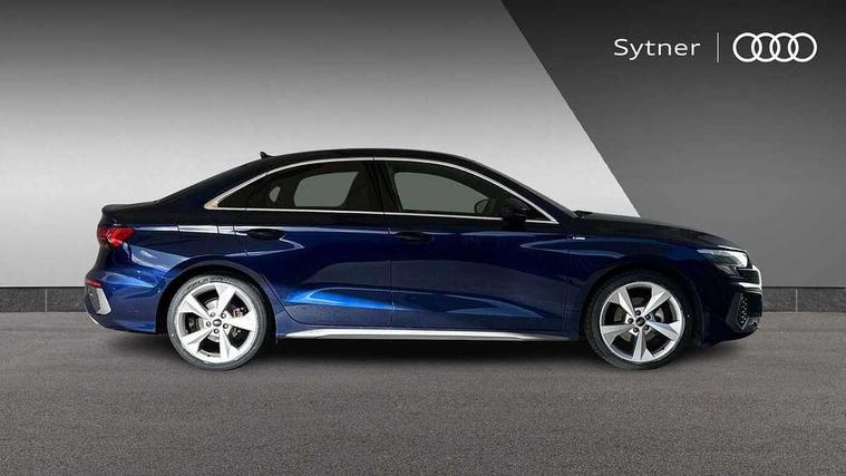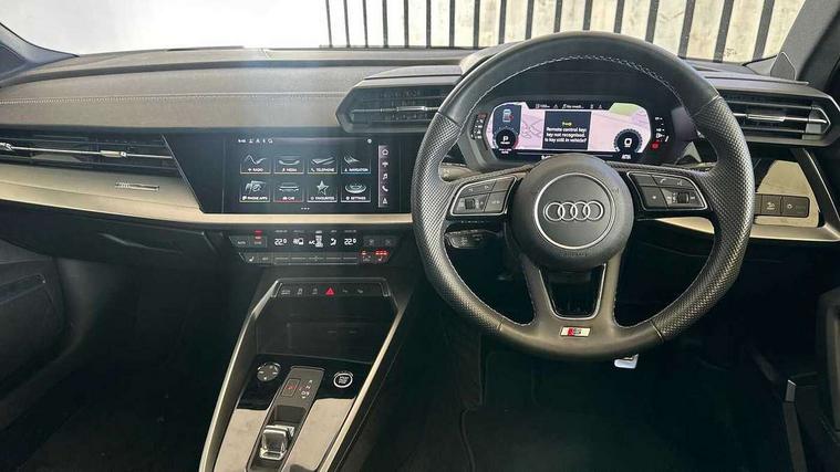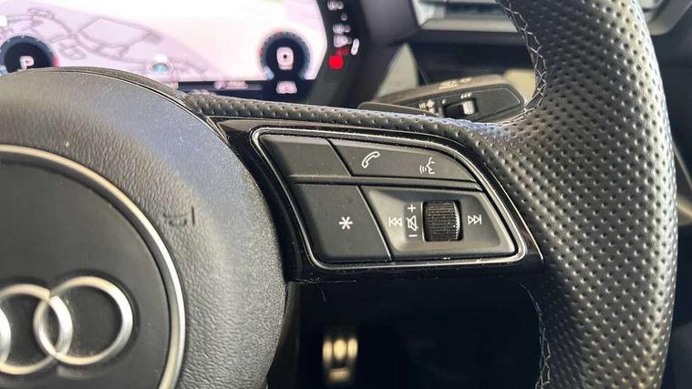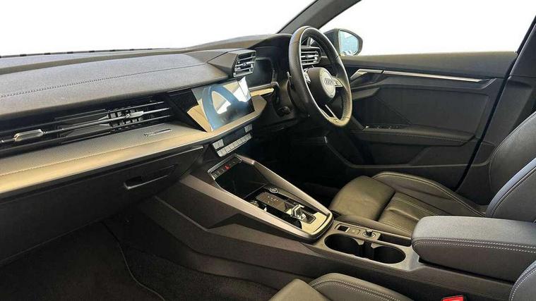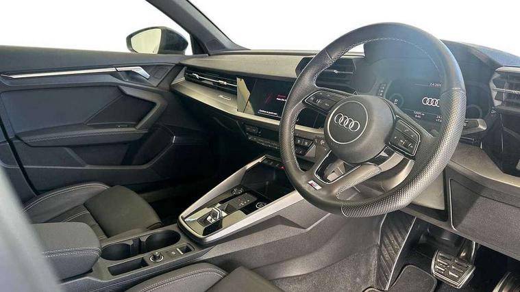Audi connect emergency call and service, Audi drive select (Auto, Comfort, Dynamic, Efficiency and Individual), Audi smartphone interface, Audi Virtual Cockpit - 10.25" digital and colour instrument cluster, Automatic start/stop system with recuperation, Bluetooth interface, Collision avoidance assistant, Electromechanical power speed sensitive steering, Lane departure warning system, MMI Navigation Plus with high resolution 10.1" colour touch screen display, Service indicator, Voice control system with natural language interaction, Sports suspension, 2x USB Type C ports (for charging and data transfer), 6 passive loudspeakers, CD player, DAB Digital radio, 3rd brake light, Acoustic glass windscreen, Aluminium window trim, Auto dimming frameless rear view mirror, Body colour exterior mirrors, Electrically adjustable/heated/folding/auto dimming door mirrors with integrated LED indications + kerb view function for passenger side, Front electric windows, Illuminated door sills with aluminium inserts at the front with S logo, LED daytime running lights, LED headlights with LED rear lights and dynamic rear indicators, Light and rain sensors, Model and engine designation badges at rear, Privacy glass - dark tinted rear window, rear door and side windows, Rear boot, Rear electric windows, Rear side wing doors, S line bumpers, S roof spoiler, 12V socket and storage compartment in front centre console, 3 seat bench in 2nd row, 3 spoke leather multifunction steering wheel with gear shift paddles, 4 way electrically adjustable lumbar support for driver and front passenger, 60/40 split folding rear seat bench, Black cloth headlining, Dual zone electronic climate control, Front and rear centre armrest in leather, Front and rear headrests, Front/rear floor mats, Height and reach adjustable steering wheel, Interior lighting - glove compartment light and right hand side, Luggage compartment floor covering, Manual boot compartment lid, Manually adjustable front seats, Seat side bolsters, Single front passenger seat, Stainless steel pedals and front footrest in black, Twin leather upholstery with front sports seats S embossed logo, Aluminium interior elements pack - A3, LED interior lighting pack - A3 Saloon, S line styling pack - A3 Saloon, 3x3 point rear seat belts, Driver and front passenger airbag with passenger airbag deactivation, Electronic Stabilisation Control (ESC) including ABS, ASR and EDL, First aid kit with warning triangle and 2 safety vests, Front side airbags with head airbags and interaction airbag, Pre-sense front with pedestrian and cyclist detection, Seatbelt monitoring, Tyre pressure loss indicator, Anti theft alarm, Anti-theft wheel bolts, Electronically operated child locks, Immobiliser, Remote control central locking, Aluminium air vent surrounds, Dark spectrum aluminium inlays, accent surfaces in the dashboard and centre console in platinum grey silk effect paint finish,
